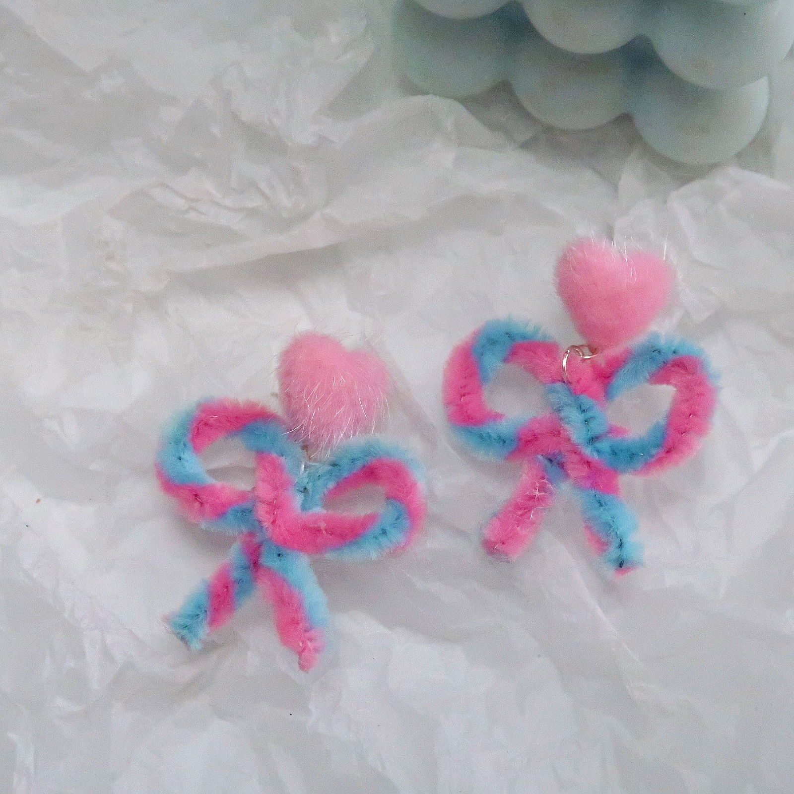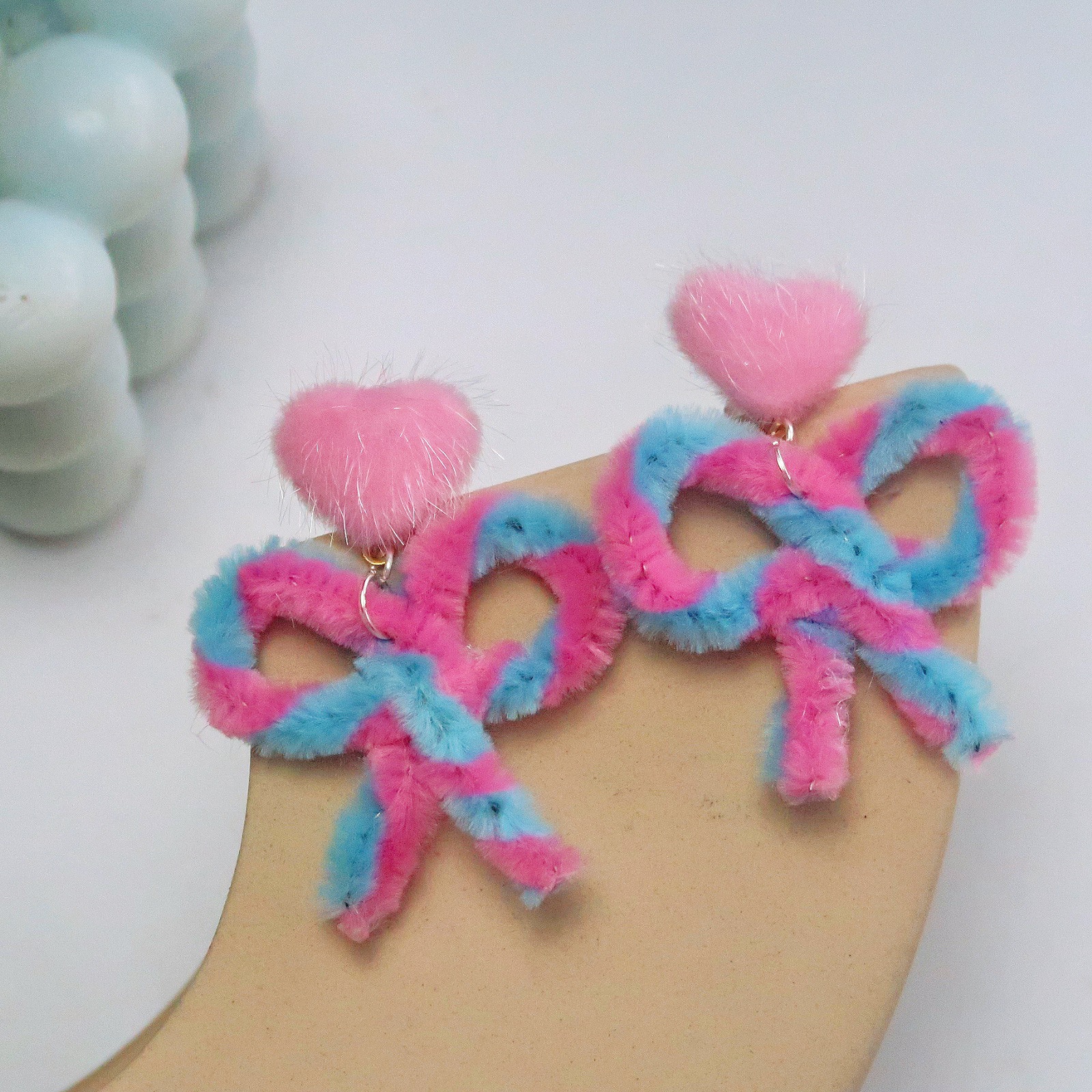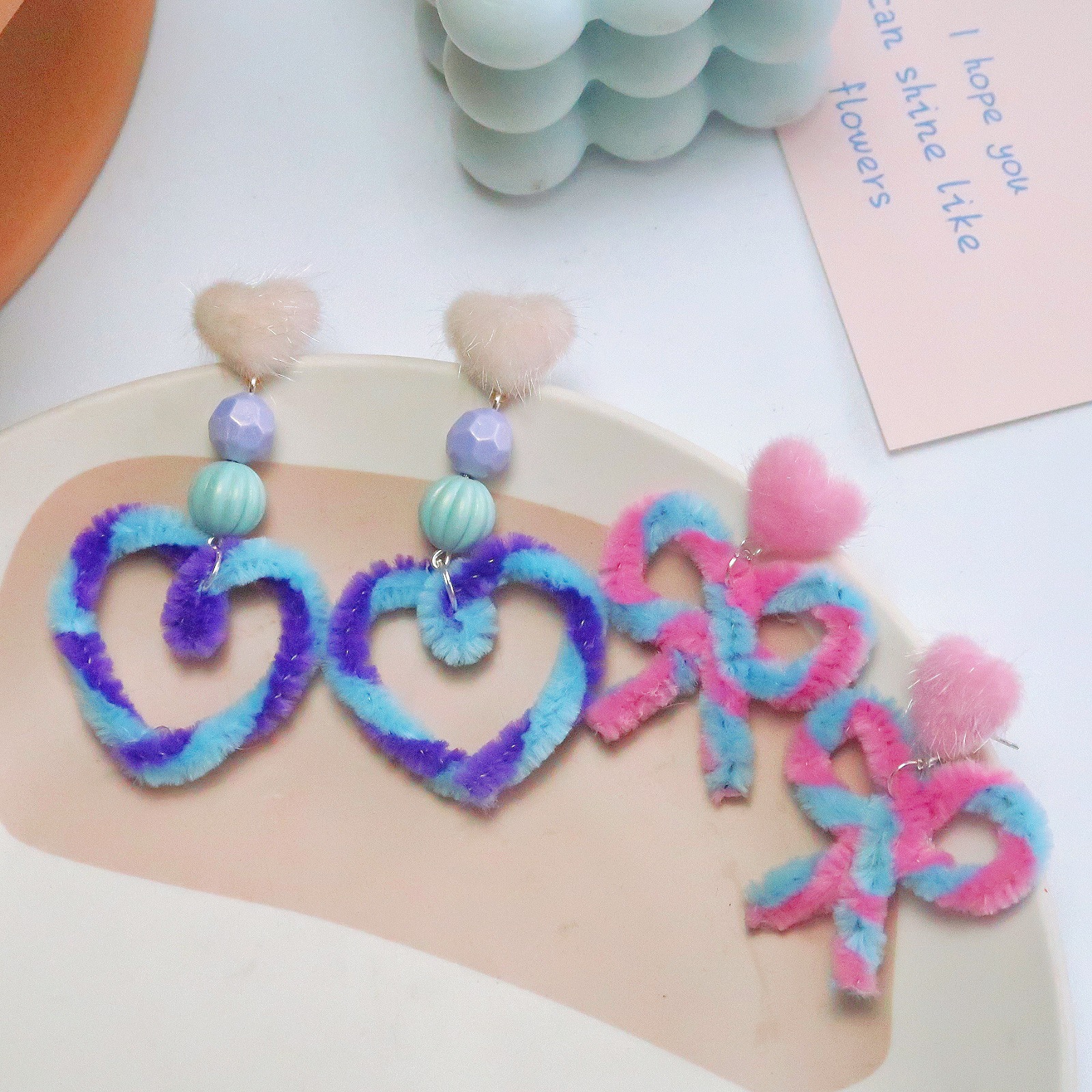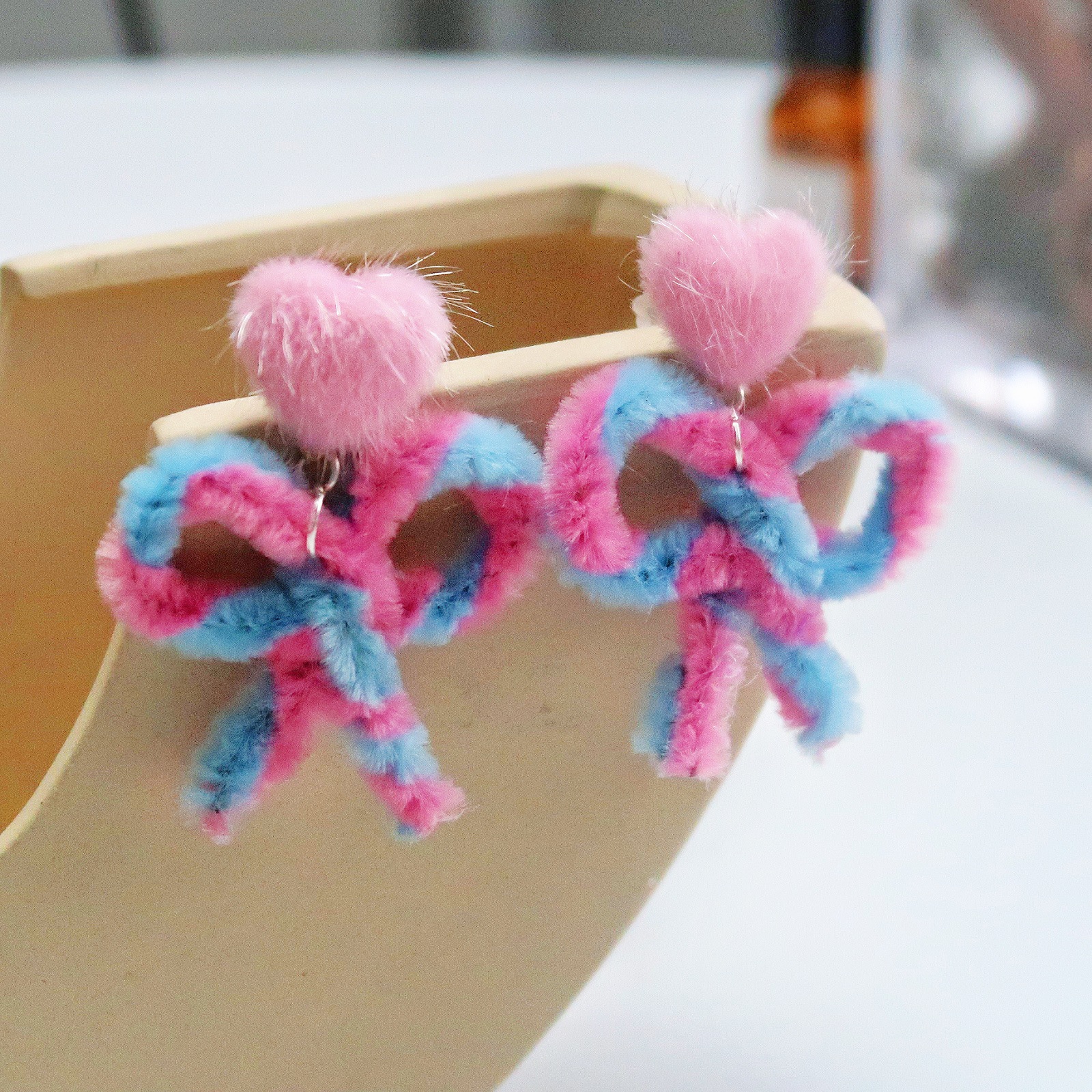 标题:冬季毛绒耳环 彩色蝴蝶结爱心耳饰 925银针个性耳饰 民族风趣味气质耳夹 节日礼物