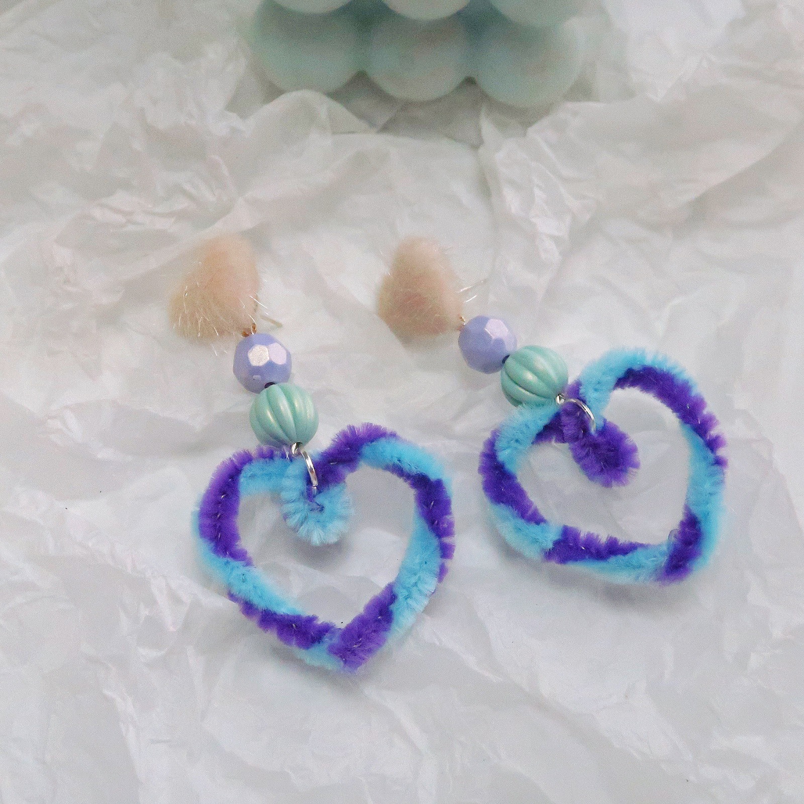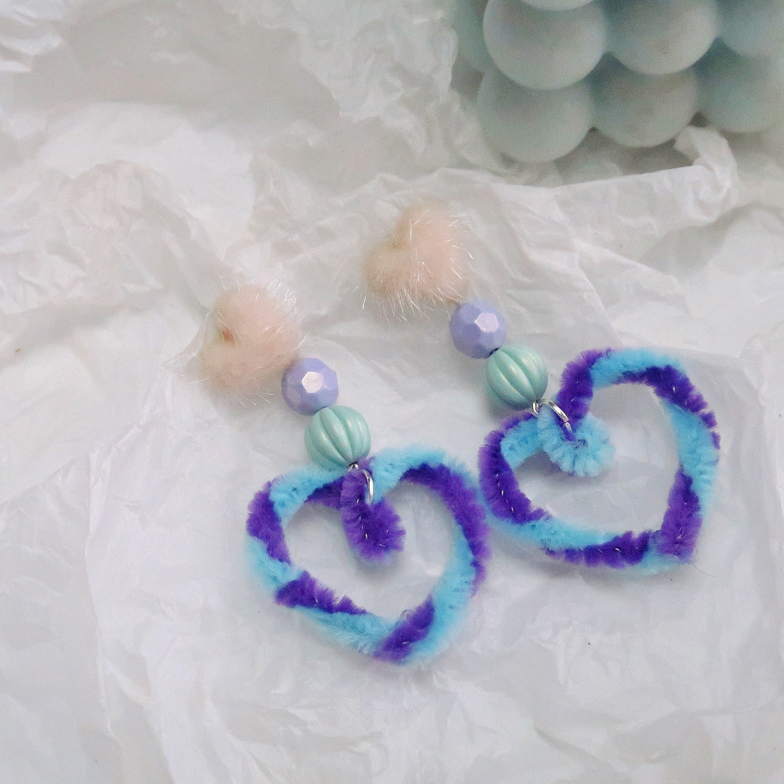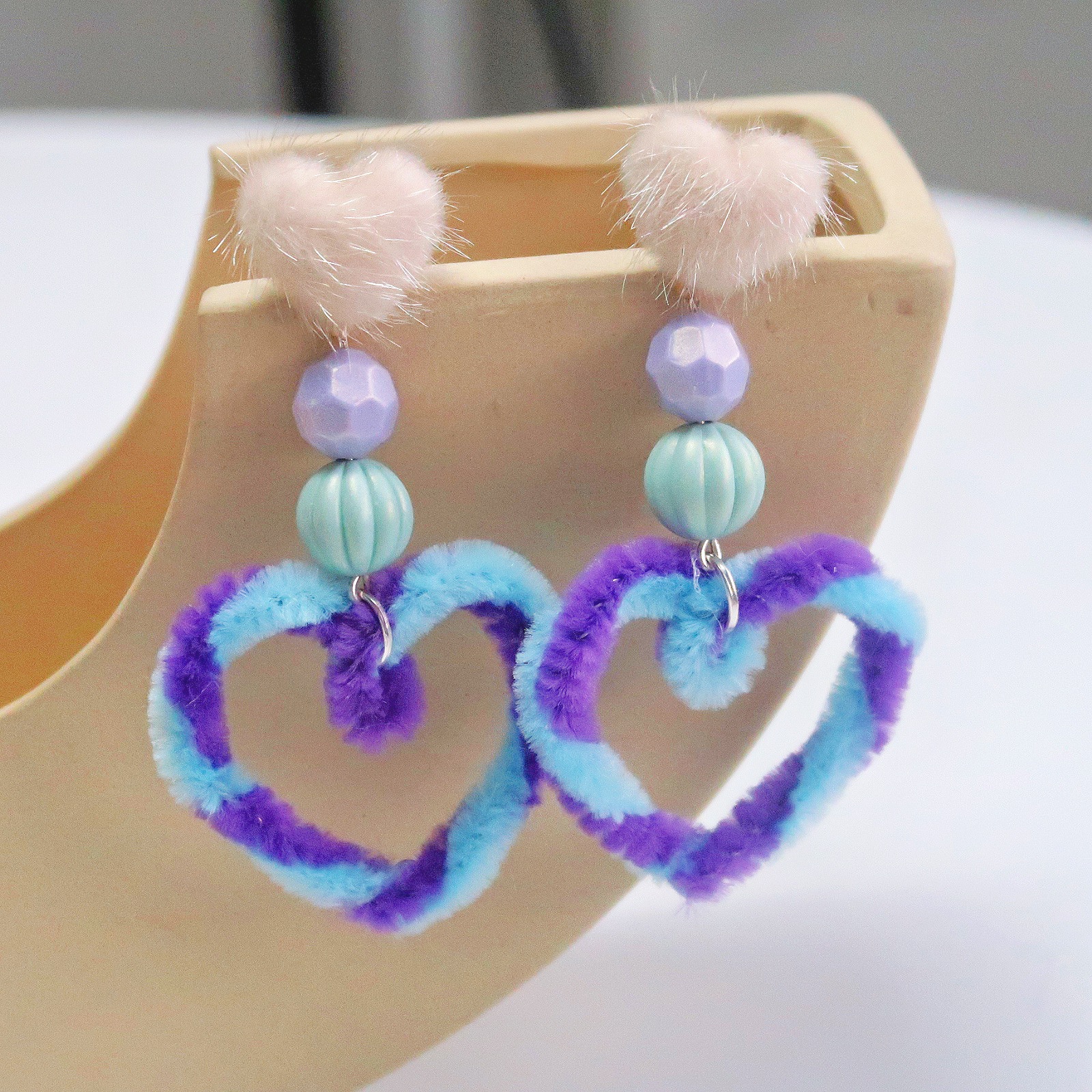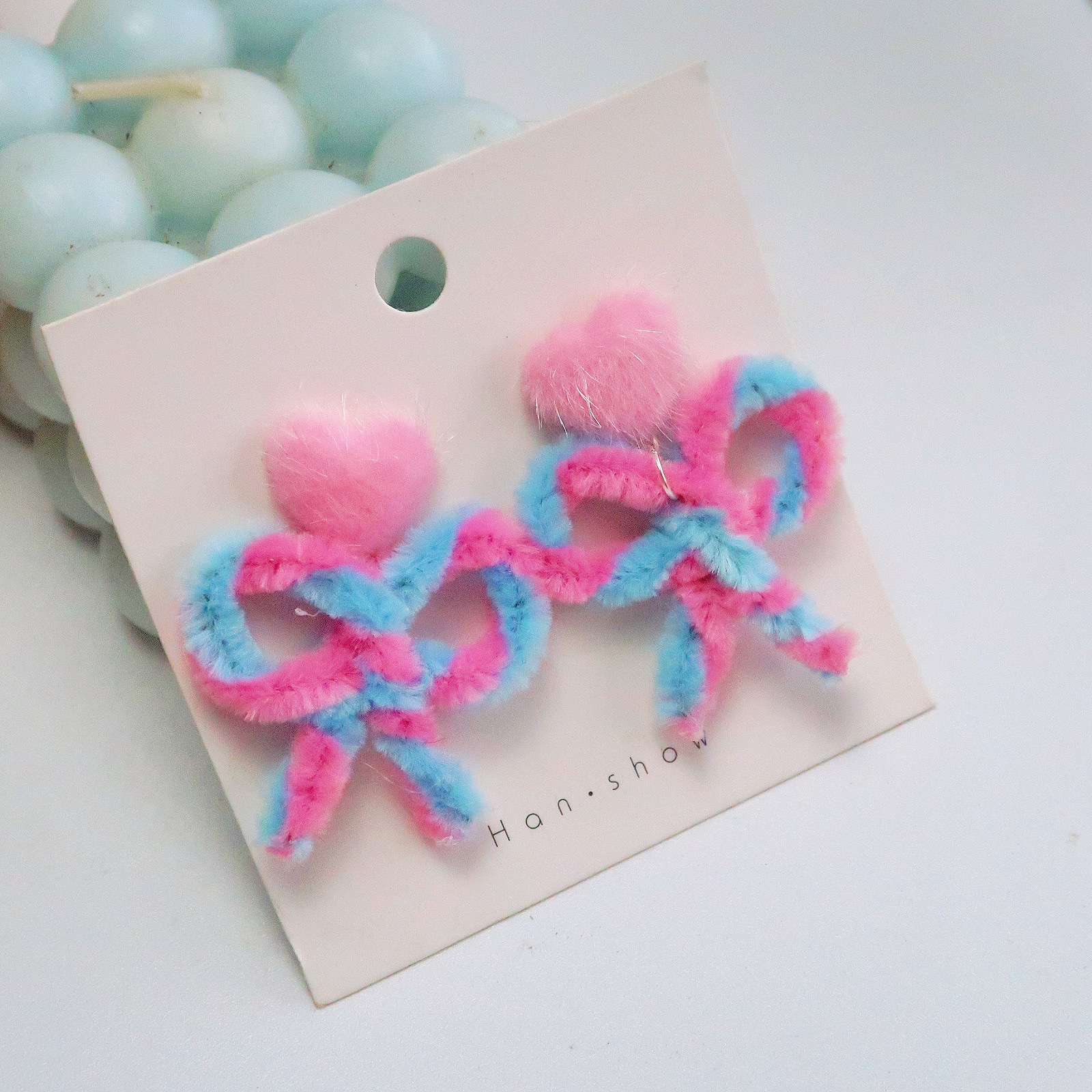 标题:冬季毛绒耳环 彩色蝴蝶结爱心耳饰 925银针个性耳饰 民族风趣味气质耳夹 节日礼物