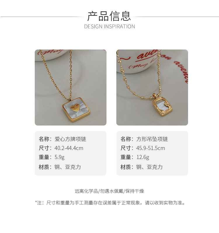 属性:项链。金色方形,项链。方形爱心