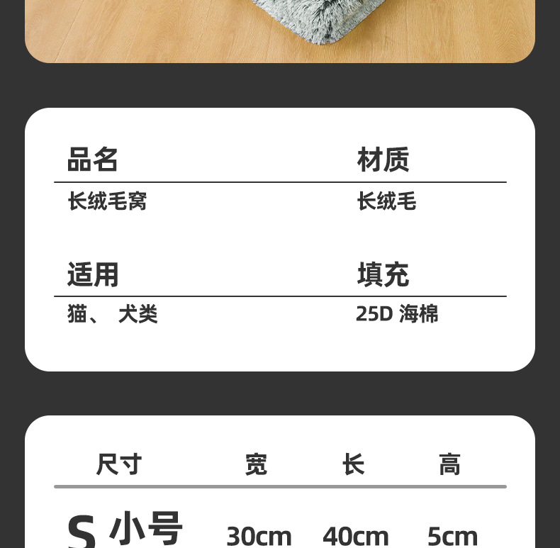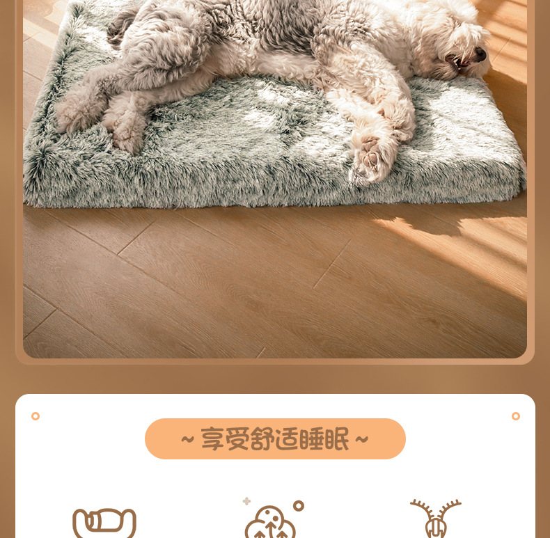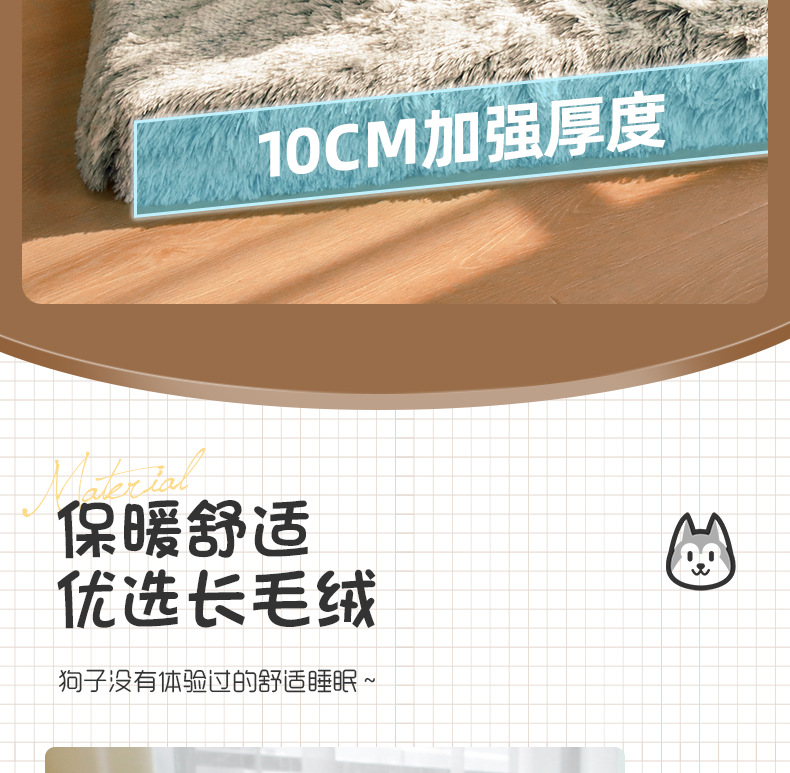 标题:狗窝长毛绒方形窝可拆洗垫子狗狗四季宠物床猫窝猫咪垫子宠物用品