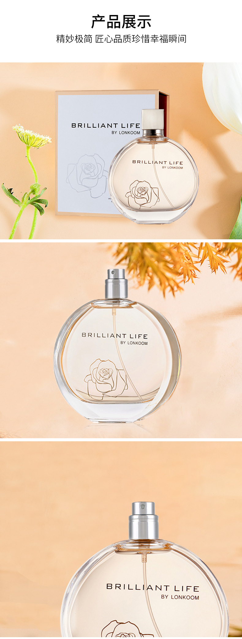 描述:品牌类型:国货品牌,是否进口:否,品牌:LONKOOM,适用人群:通用,香味:21212424324,22011050309,22467170724,香调:花香调,规格:正常规格,赋香率:7-12%,特殊用途化妆品:否,货号:H.02.01151,产地:广州,颜色分类:语言Languange,精彩人生BRILLIANT LIFE,主要下游平台:ebay,亚马逊,wish,速卖通,独立站,LAZADA,有可授权的自有品牌:是,是否跨境出口专供货源:是,净含量:100ml,非特化妆品备案证号:粤G妆网备字2019053490,