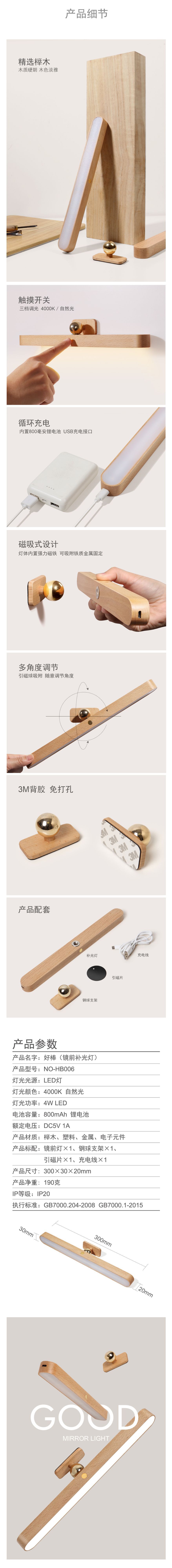 标题:木质化妆镜补光灯LED夜灯便携式可移动磁吸式夜灯