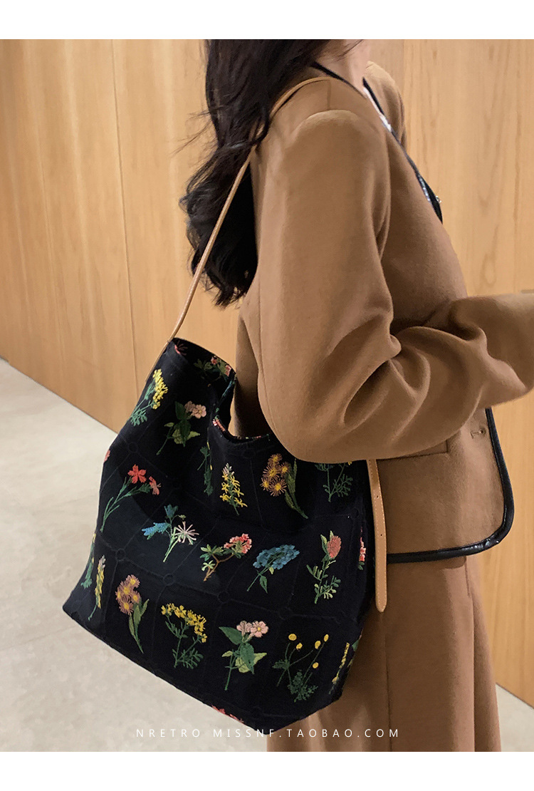 标题:托特女包2022新款绒布大容量单肩包斜挎单肩包