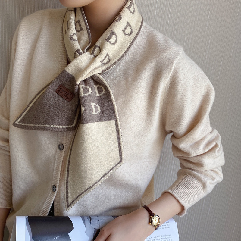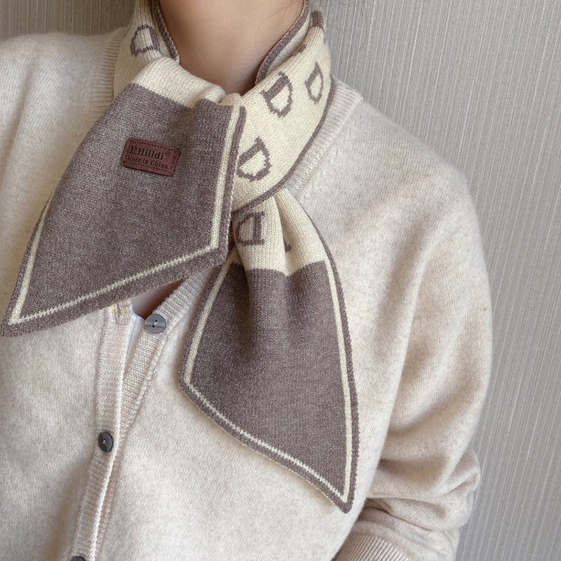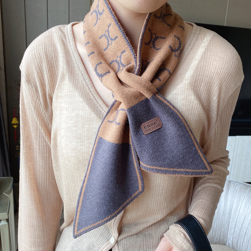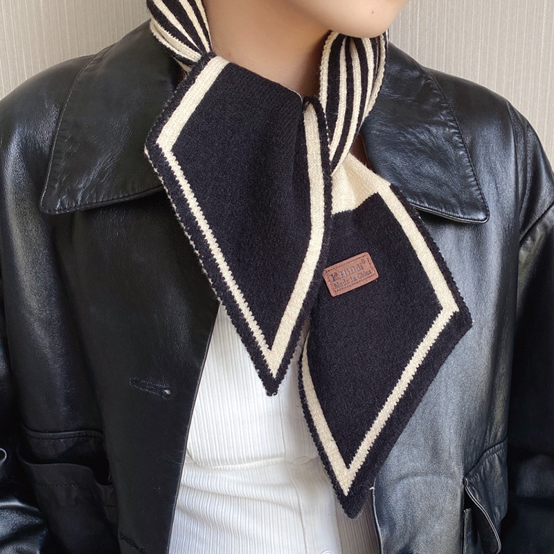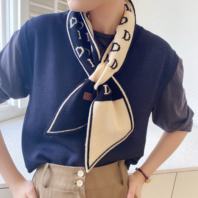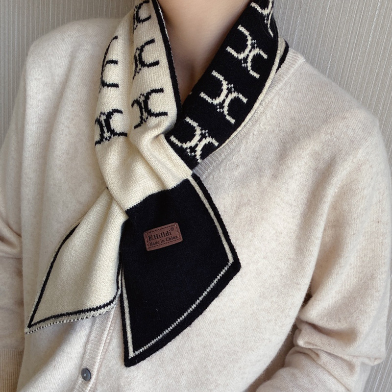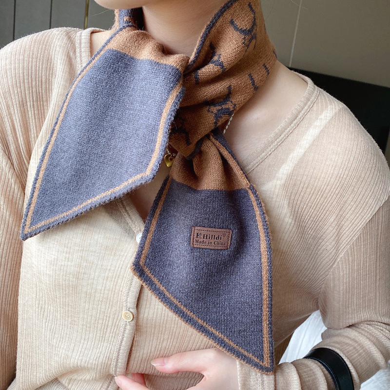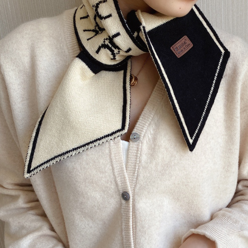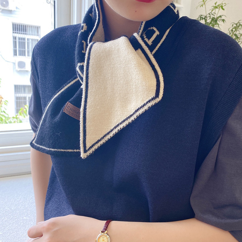 标题:秋冬新款针织小围巾 女士字母拼接围脖 多色百搭针织围脖 装饰印花斜角毛线围脖 百搭领巾