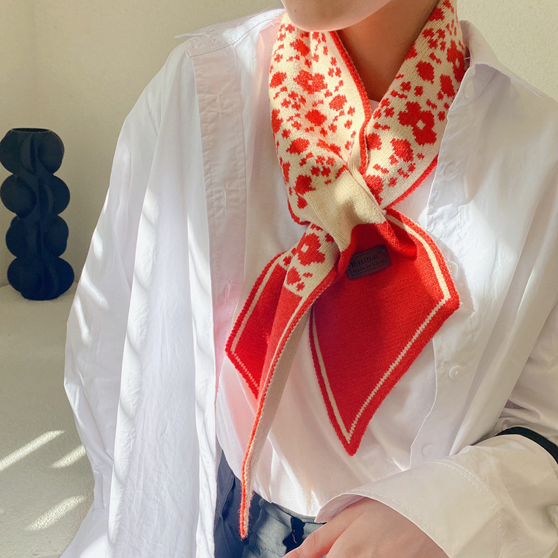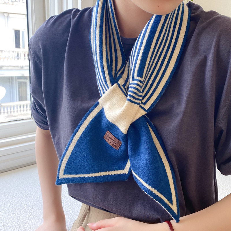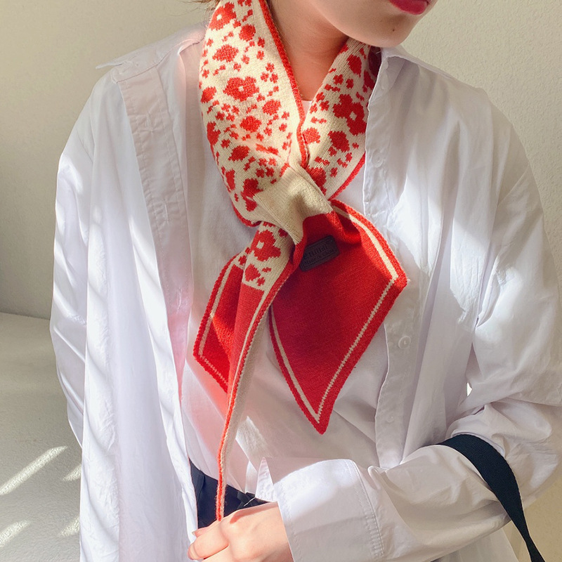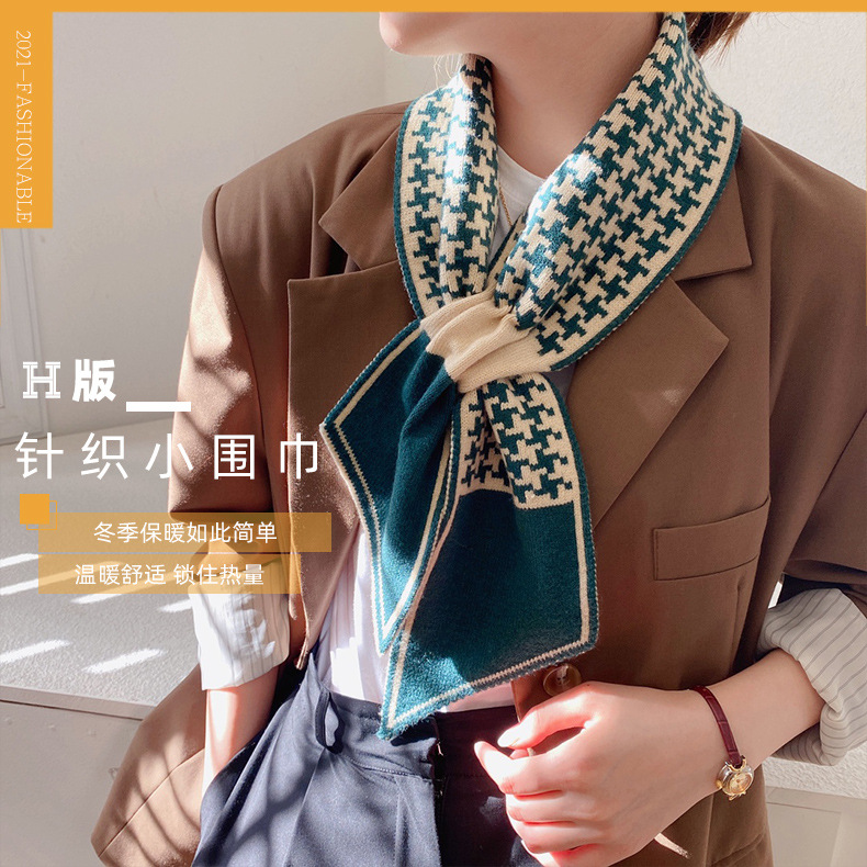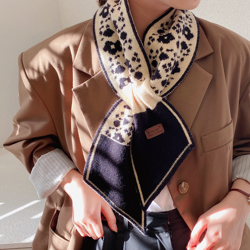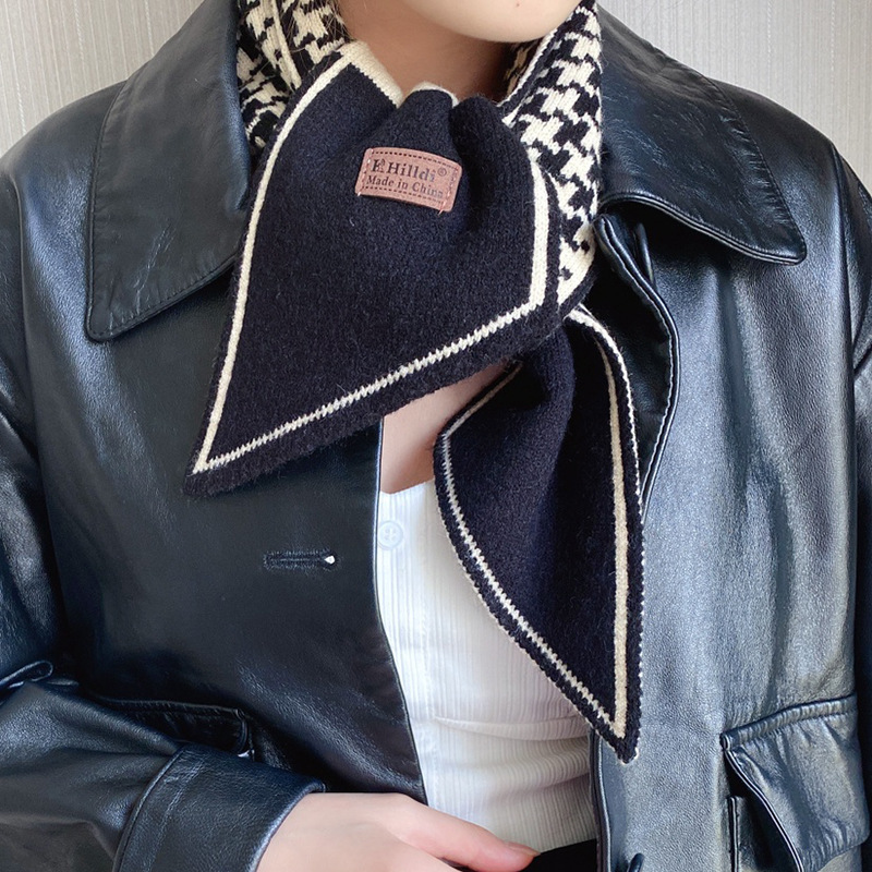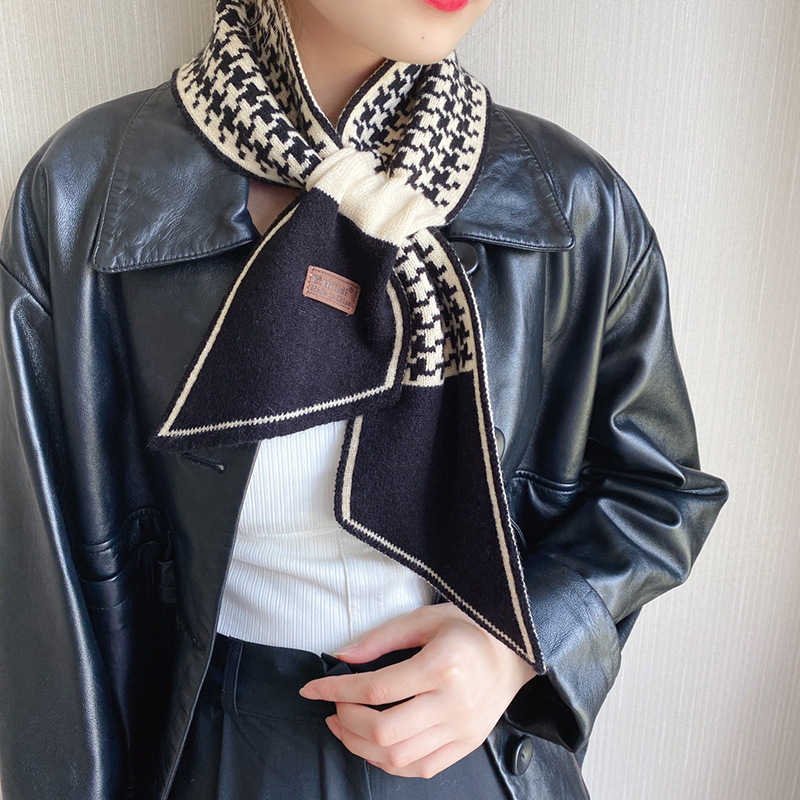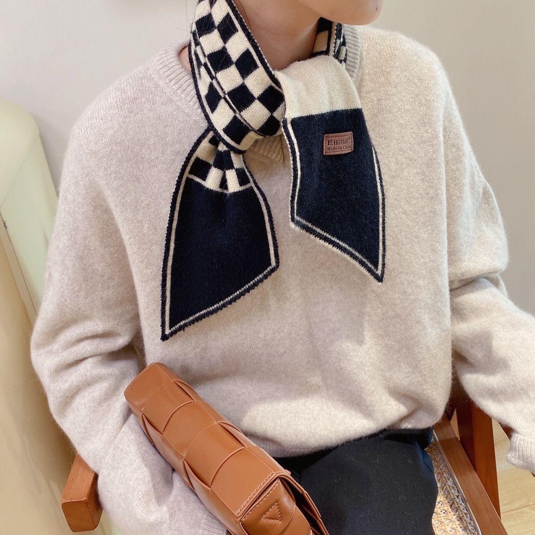 标题:秋冬新款针织小围巾 女士字母拼接围脖 多色百搭针织围脖 装饰印花斜角毛线围脖 百搭领巾