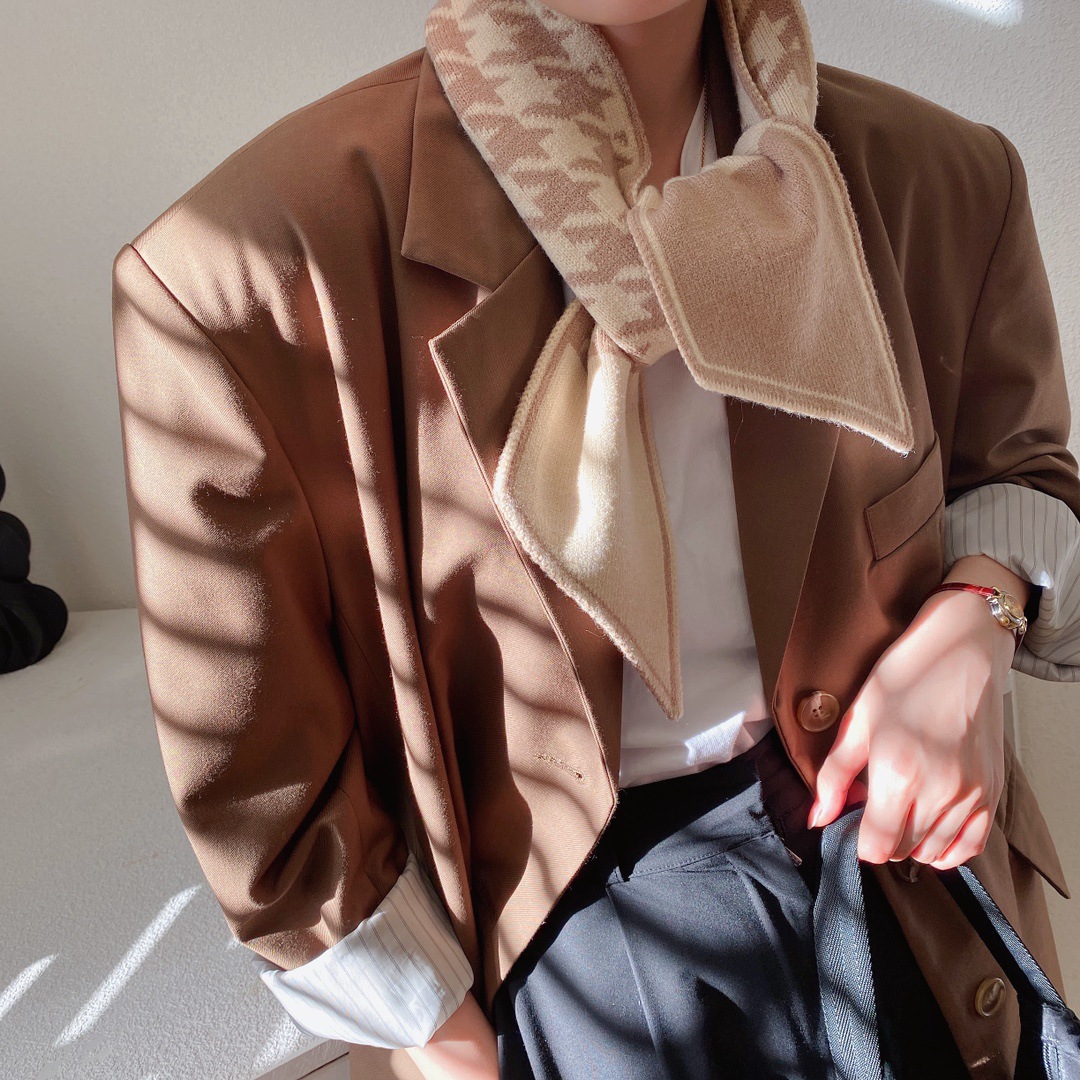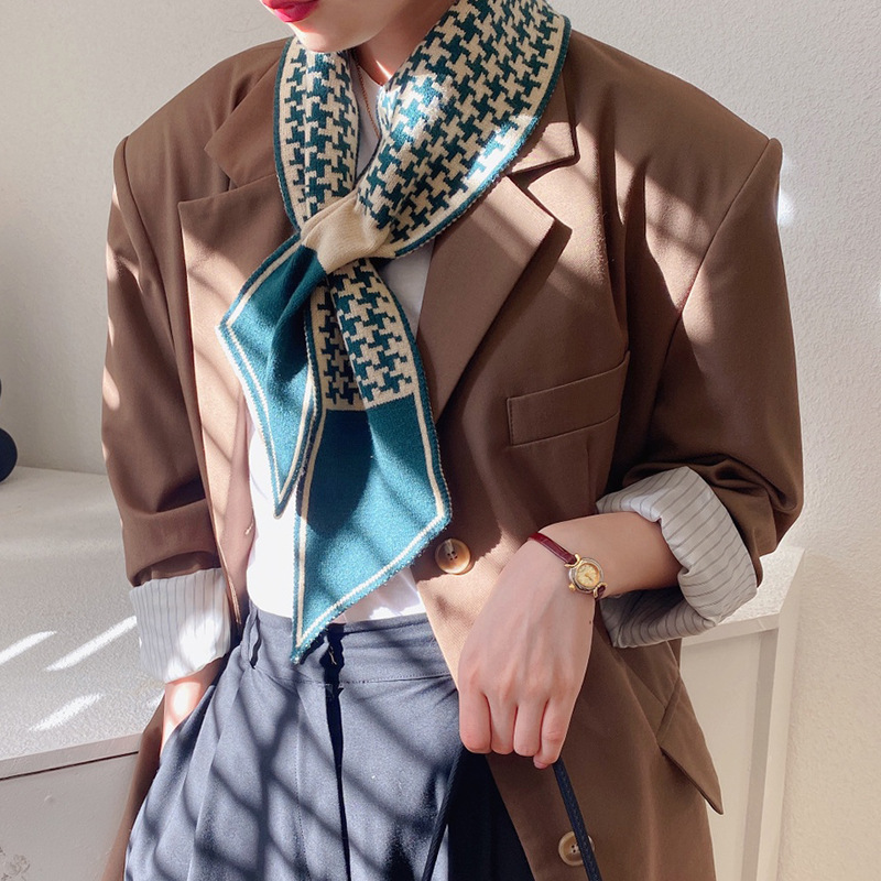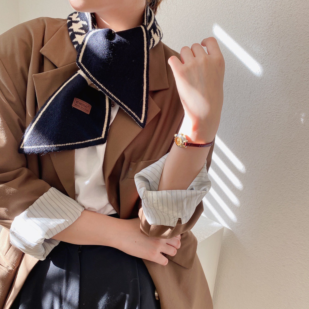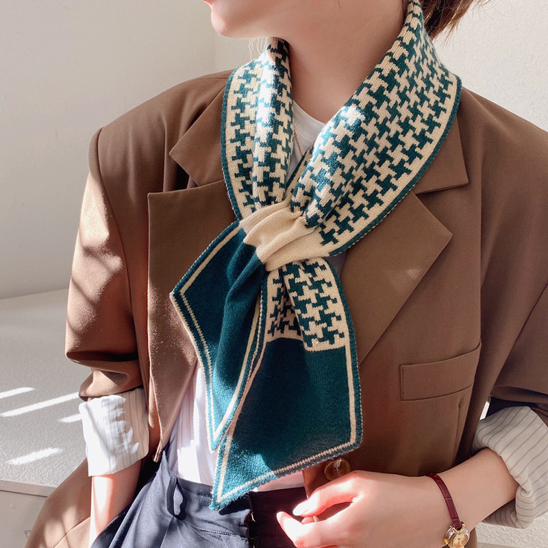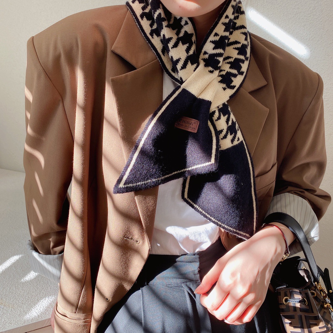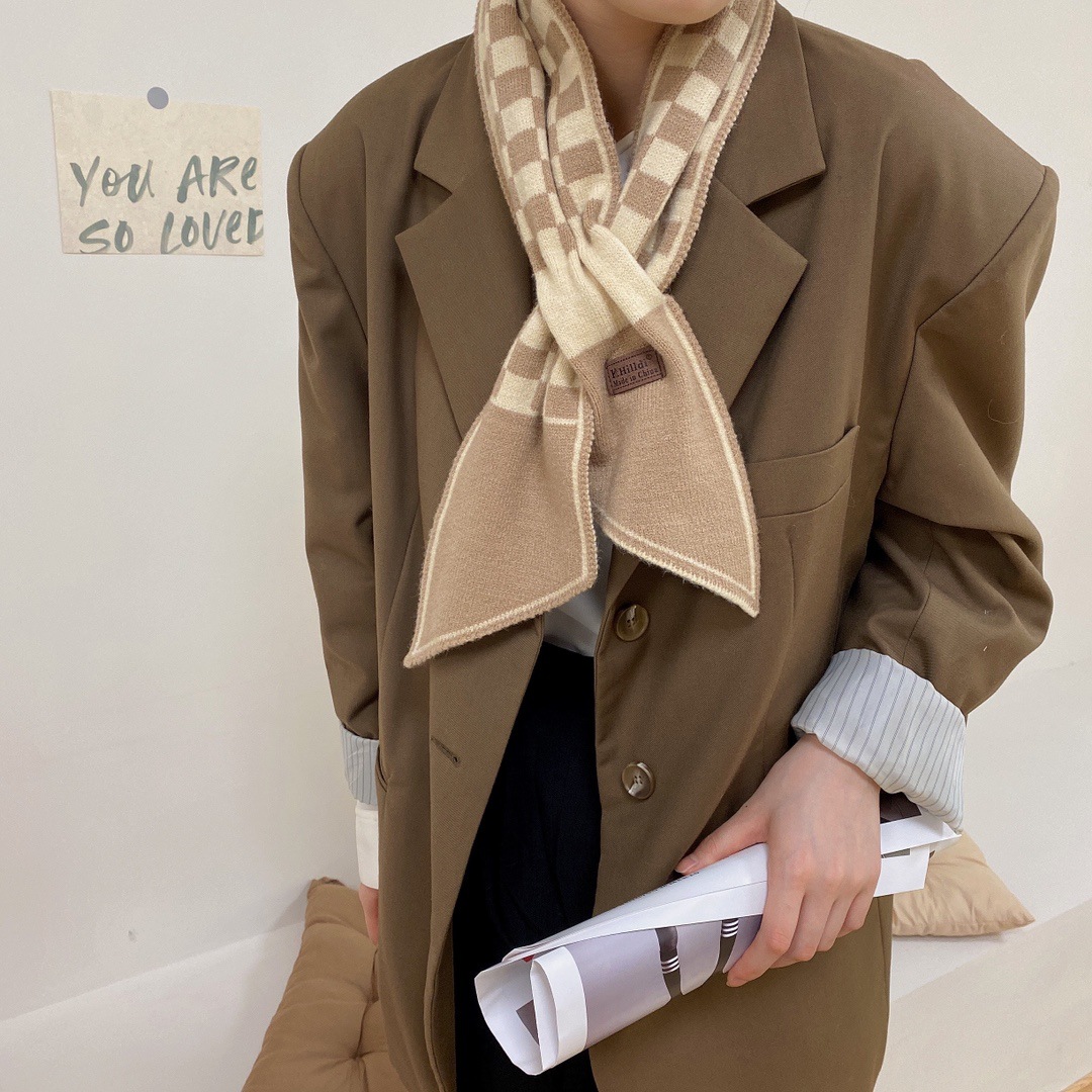 标题:秋冬新款针织小围巾 女士字母拼接围脖 多色百搭针织围脖 装饰印花斜角毛线围脖 百搭领巾