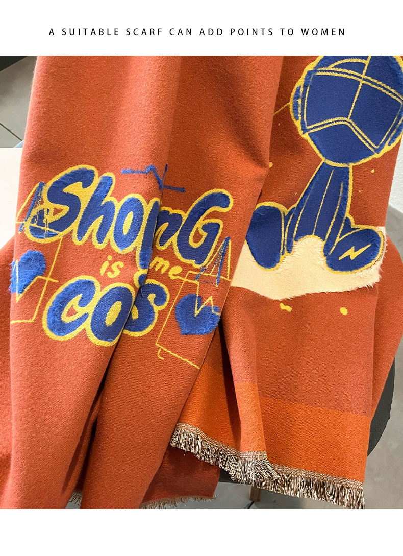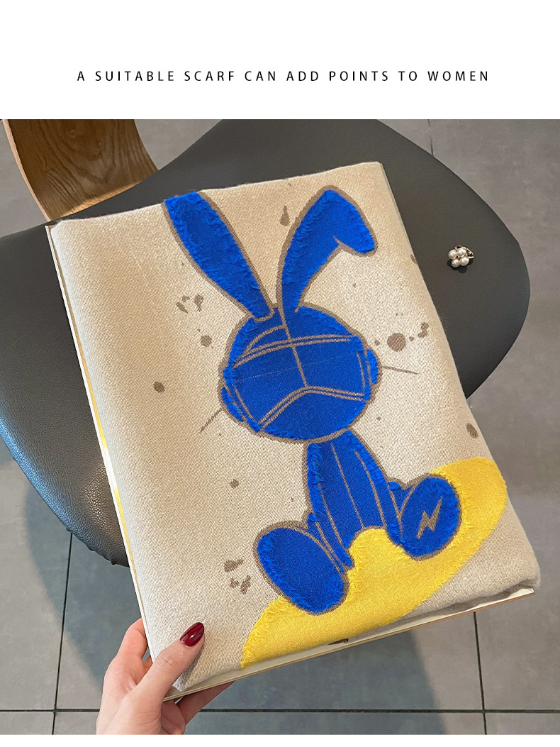 标题:爆款保暖围巾 卡通兔子仿羊绒围巾 女式时尚高级感披肩 冬季厚款围脖 加厚披肩围巾两用百搭