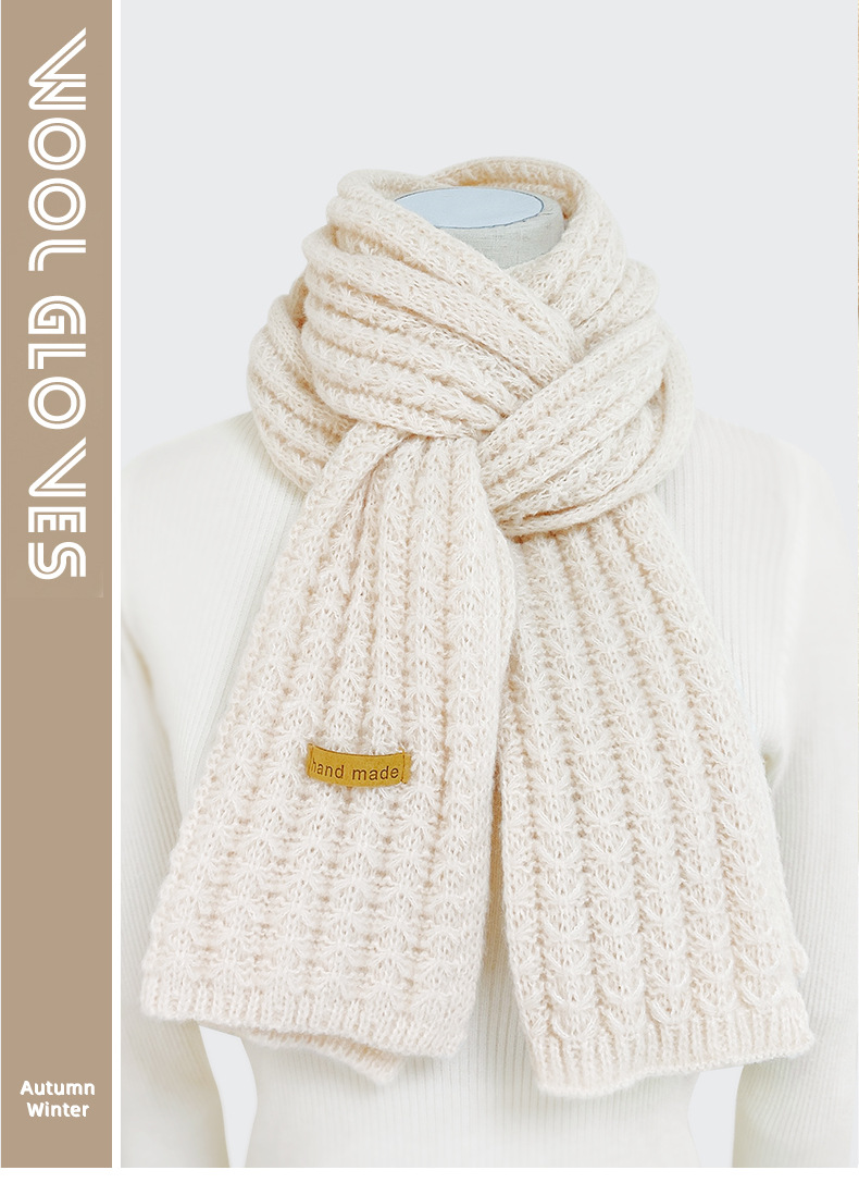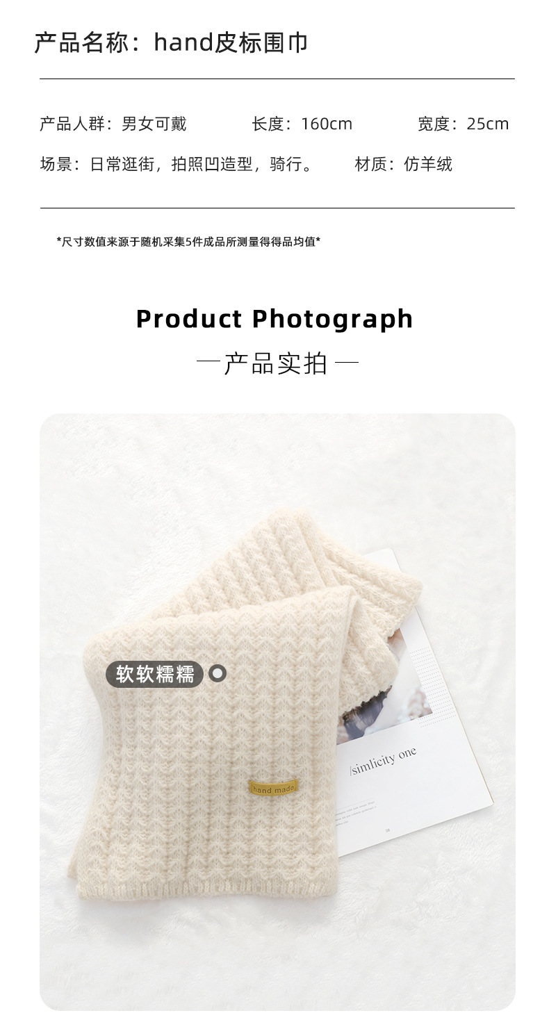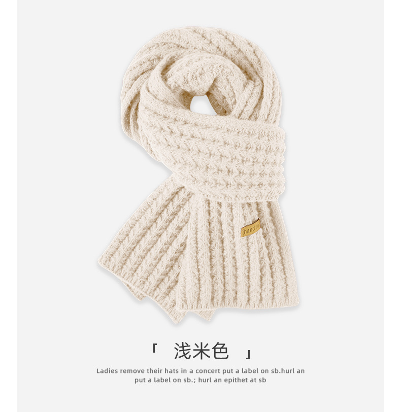 标题:米色编织围巾 女式冬季新款仿羊绒披肩 韩版保暖针织毛线围脖 情侣百搭围巾