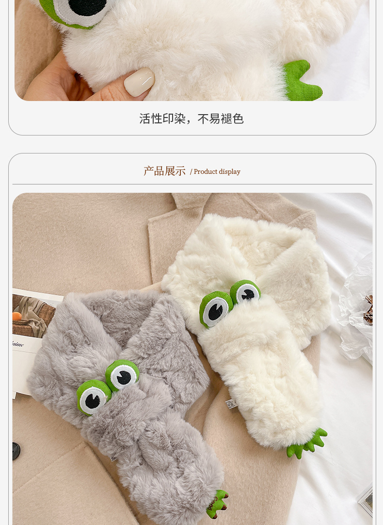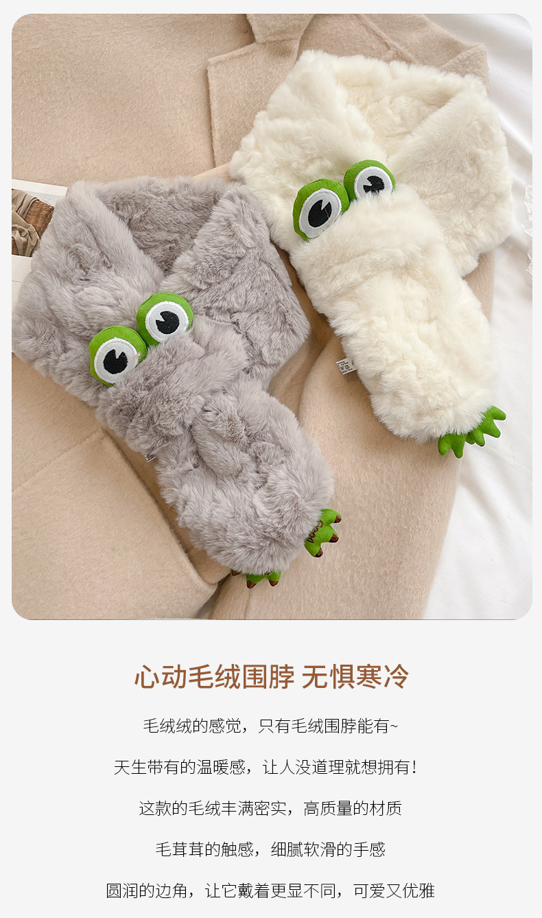 标题:新款冬季围脖 百搭可爱纯色围巾 仿兔毛毛绒围脖 防风防寒保暖交叉围巾 加绒加厚围脖
