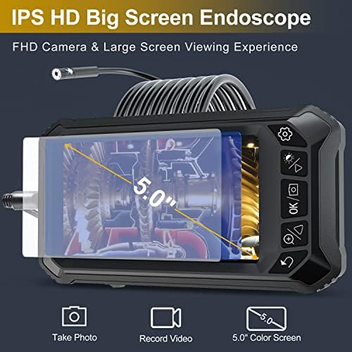 标题:CIMELR Dual Lens 5 Inchs IPS Screen Endoscope, Inspection Camera with 16.5ft Flexible Cable, Waterproof Borescope Snake Camera with 6+1 LED Lights, 4.0X Zoom, 32GB Card, 4 Tools Industrial Endoscope
