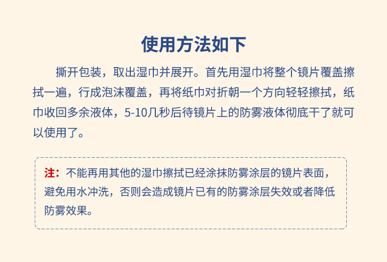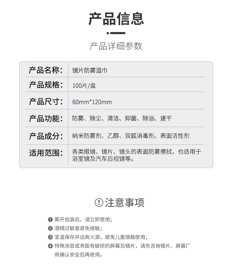 标题:防雾湿巾一次性镜片擦拭纸手机屏幕镜片镜头眼镜清洁纸长效防雾
