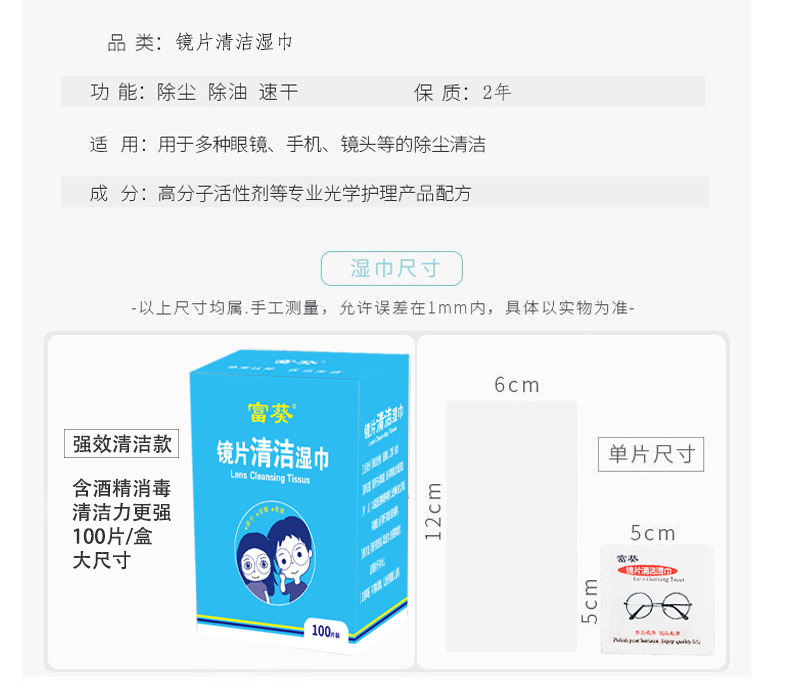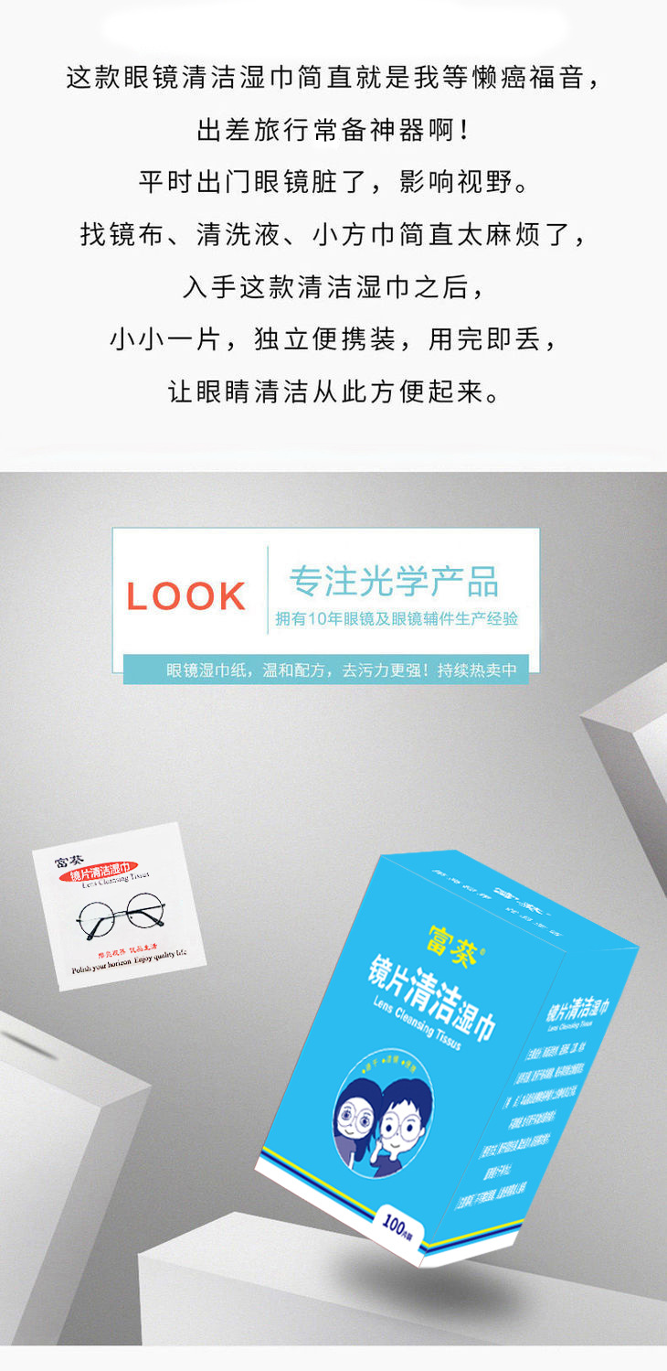 标题:富葵镜片清洁湿巾镜片手机屏幕相机镜头擦拭湿巾纸眼镜布擦拭湿巾