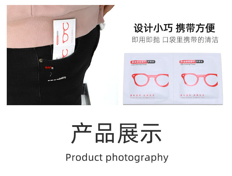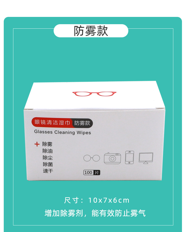 标题:眼镜镜片擦拭去雾湿巾一次性镜头手机屏幕清洁纸眼镜防雾湿巾