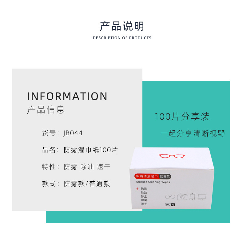 描述:材质:纸,规格:防雾湿巾纸100片,型号:防雾湿巾纸,是否进口:否,货号:JB044,颜色:防雾款,普通款(不防雾),是否跨境出口专供货源:否,上市年份/季节:2021年夏季,