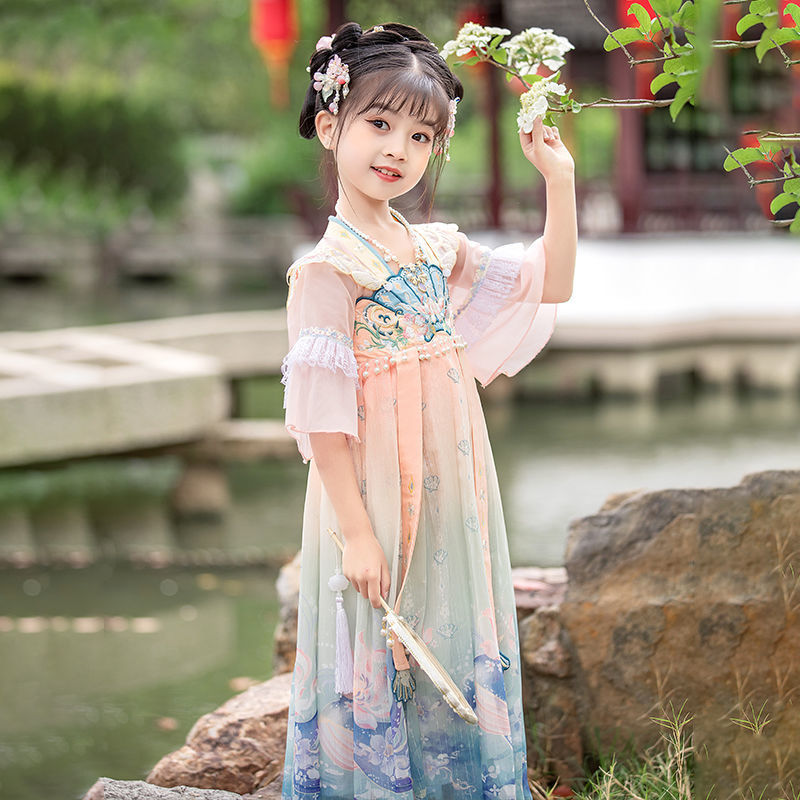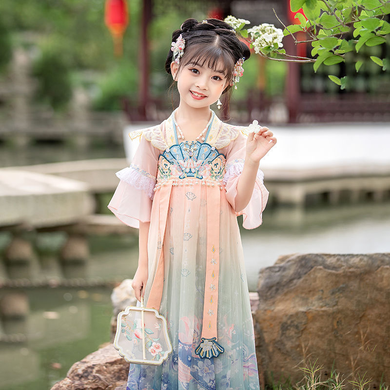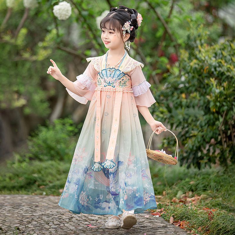 标题:女の子の漢服夏の子供の中国風超仙時代劇ワンピース女の子の人魚姫スカート古風唐服