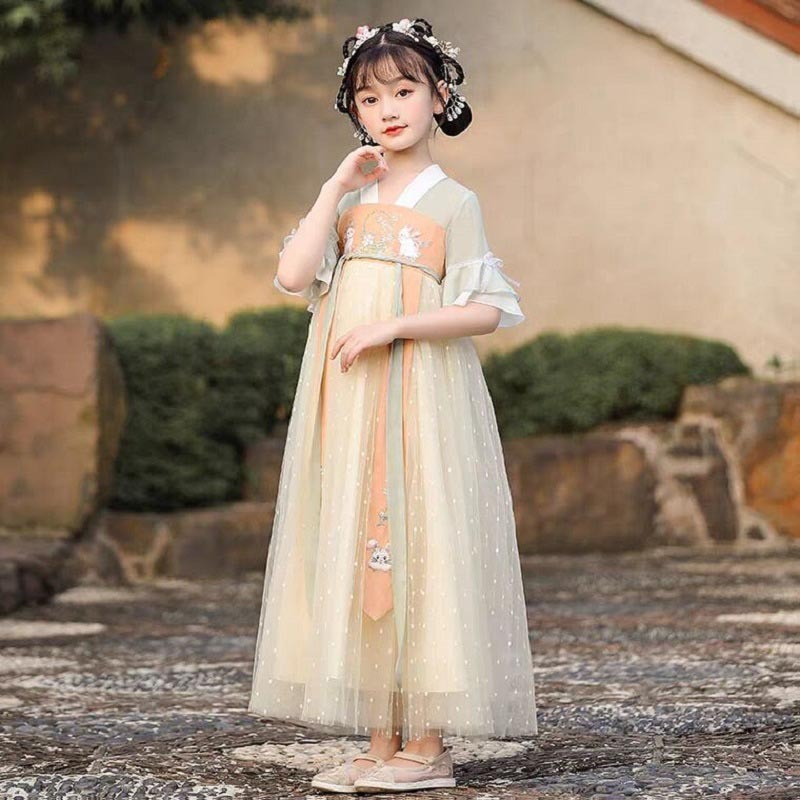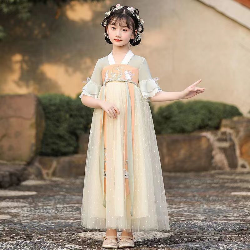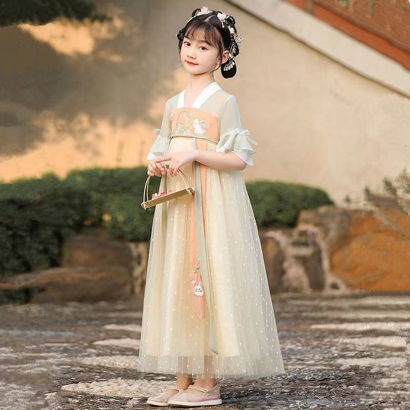 标题:子供用漢服時代劇女の子夏モデル古風ファッションワンピース女の子超仙中国風唐服スカートブーム