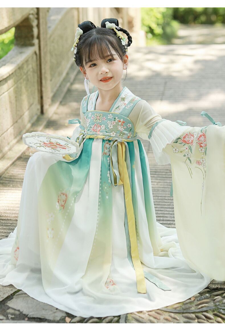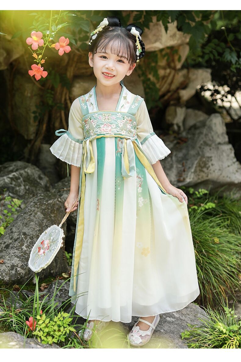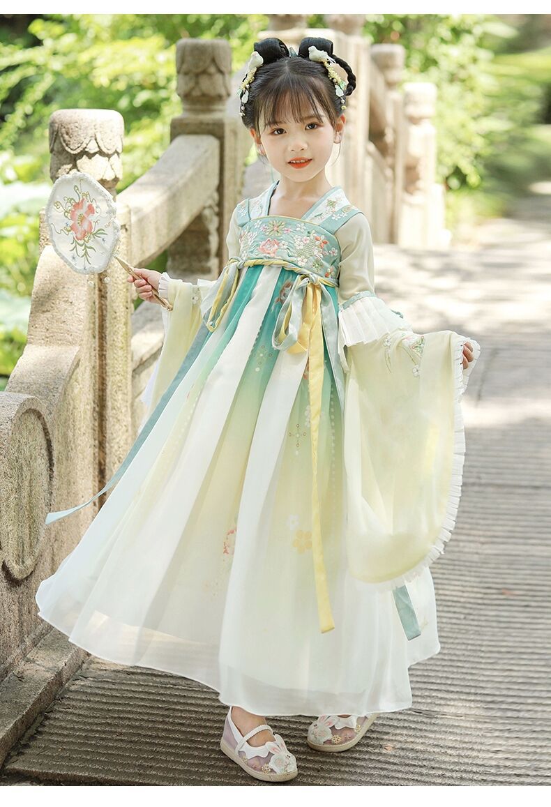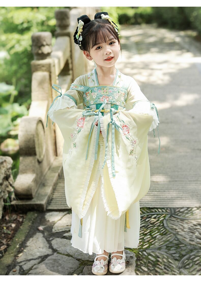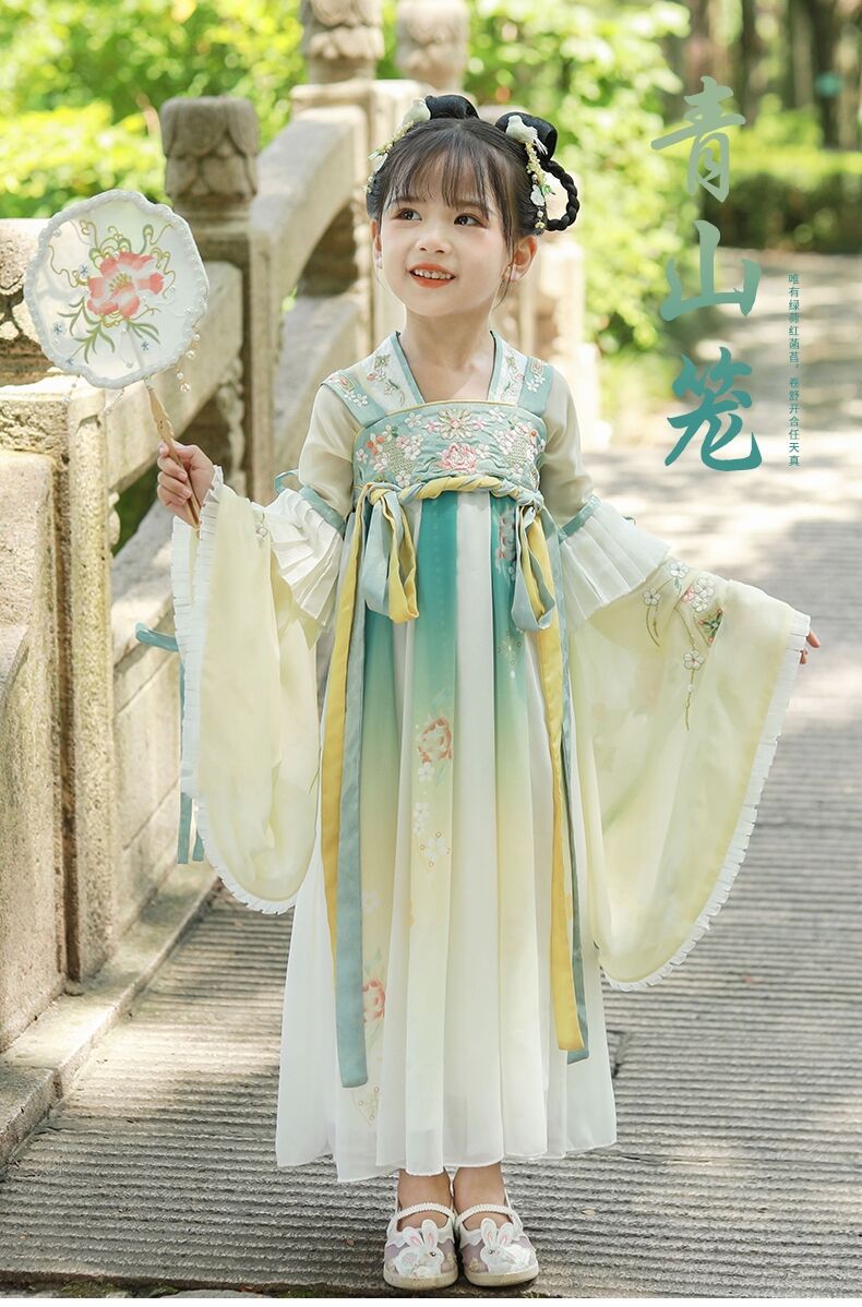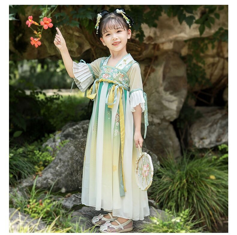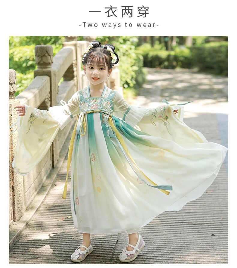 标题:漢服女子児童春秋服児童新型ワンピース広袖超仙時代劇唐服秋モデル小女孩スカートブーム
