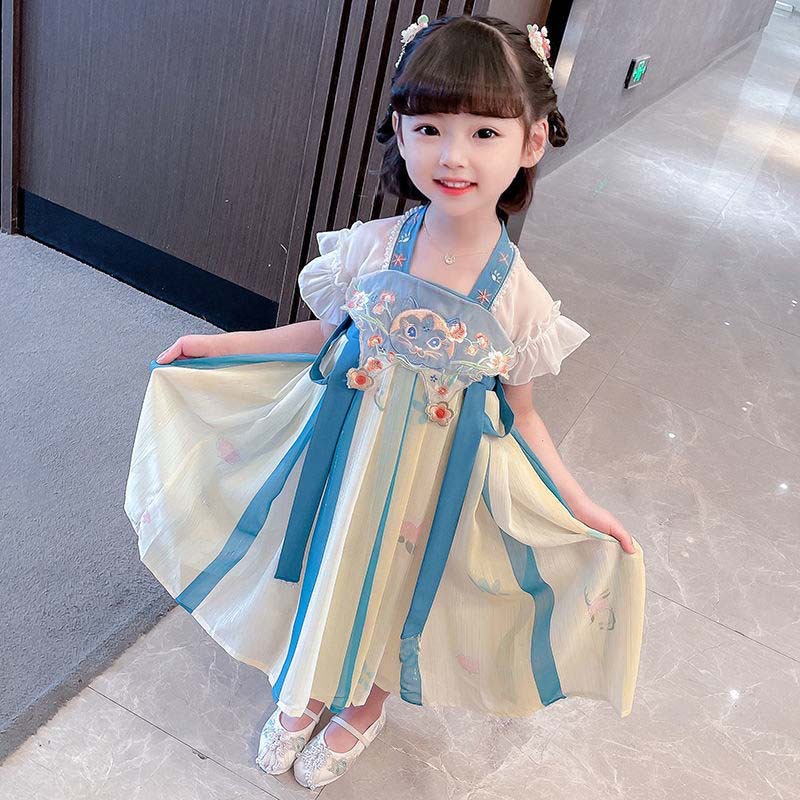 标题:漢服女の子ワンピース新型子供プリンセススカート女の子赤ちゃん超仙人薄型スカート夏のスカート