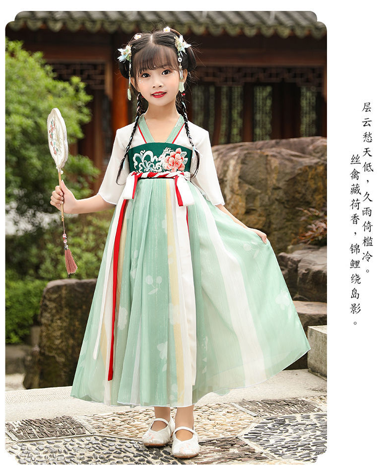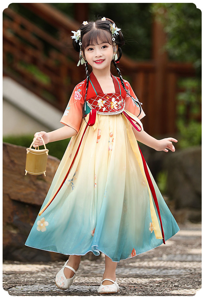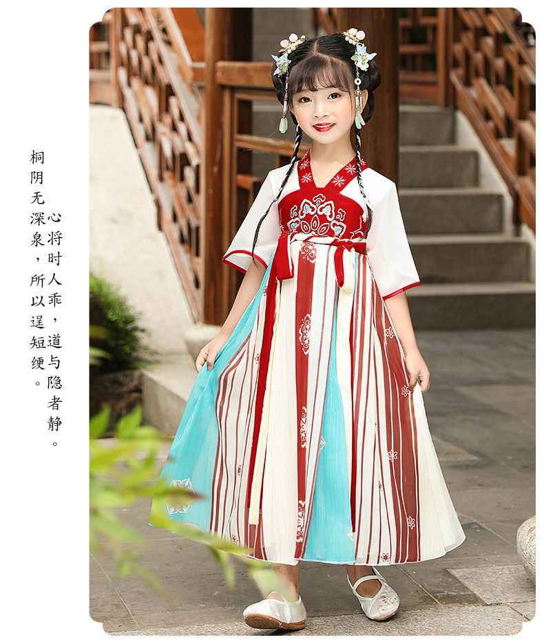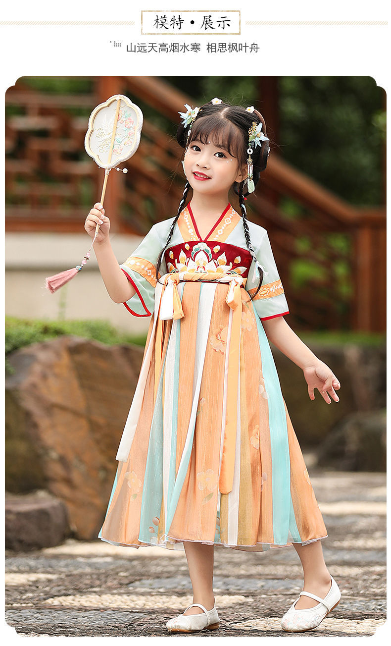 标题:漢服女の子夏レトロワンピース子供中国風女の子唐服古風超仙秋服仙女スカート