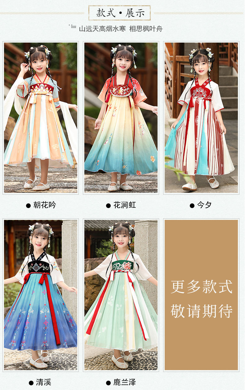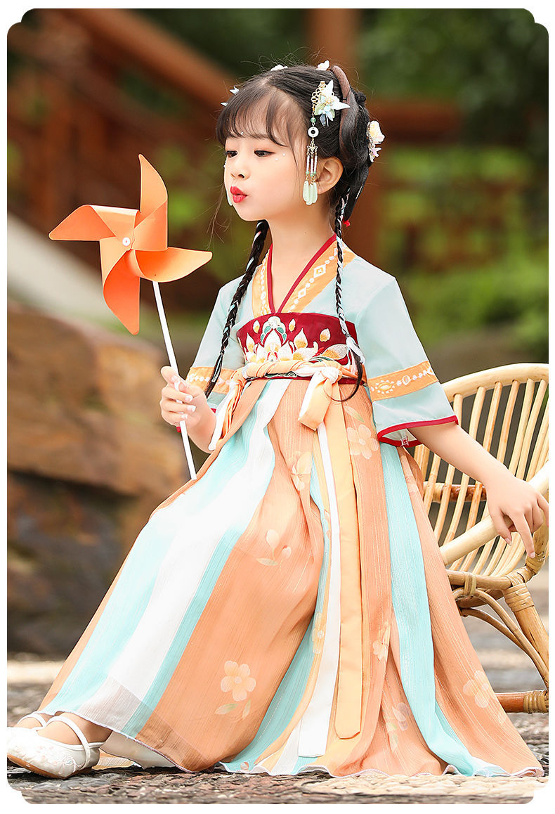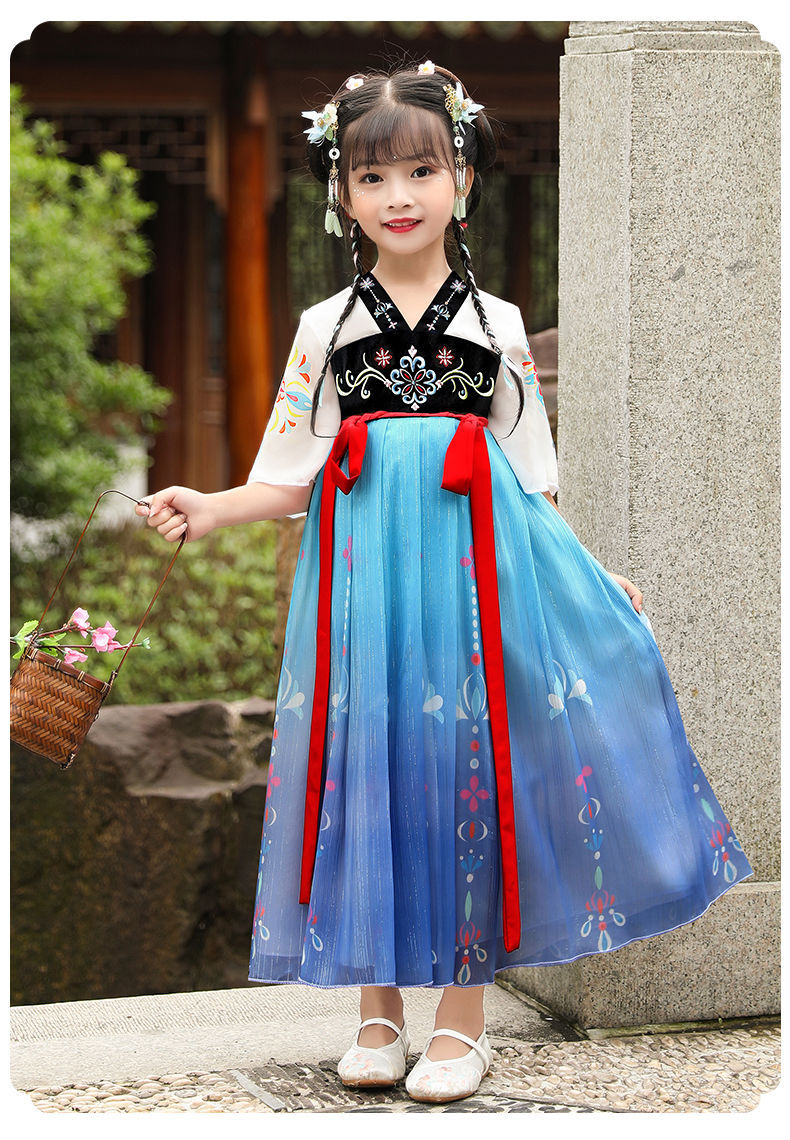 标题:漢服女の子夏レトロワンピース子供中国風女の子唐服古風超仙秋服仙女スカート