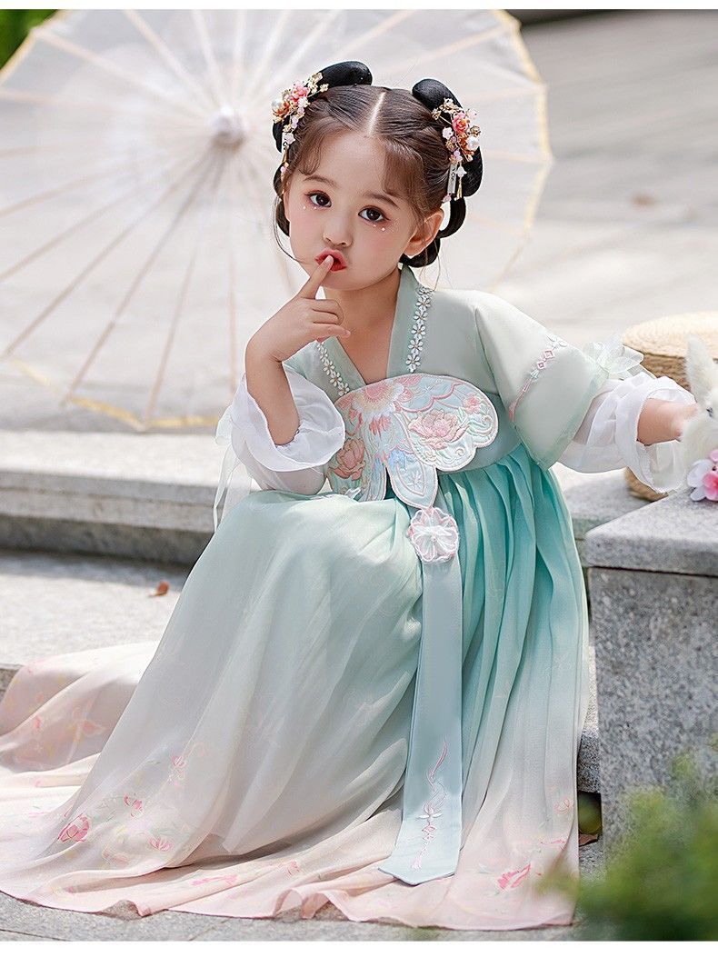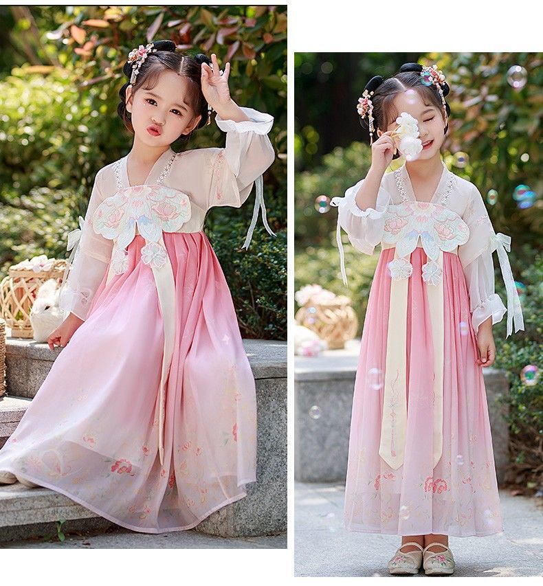 标题:漢服女子児童夏薄型児童超仙古風ワンピース新型中国風唐服ファッションスカート夏型