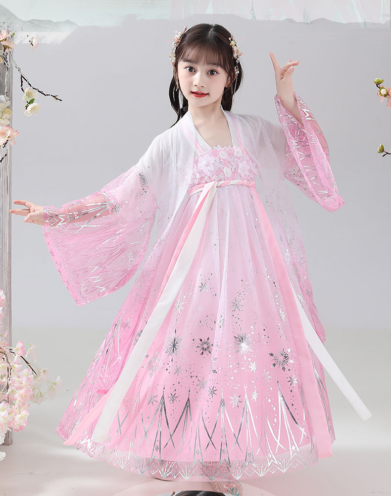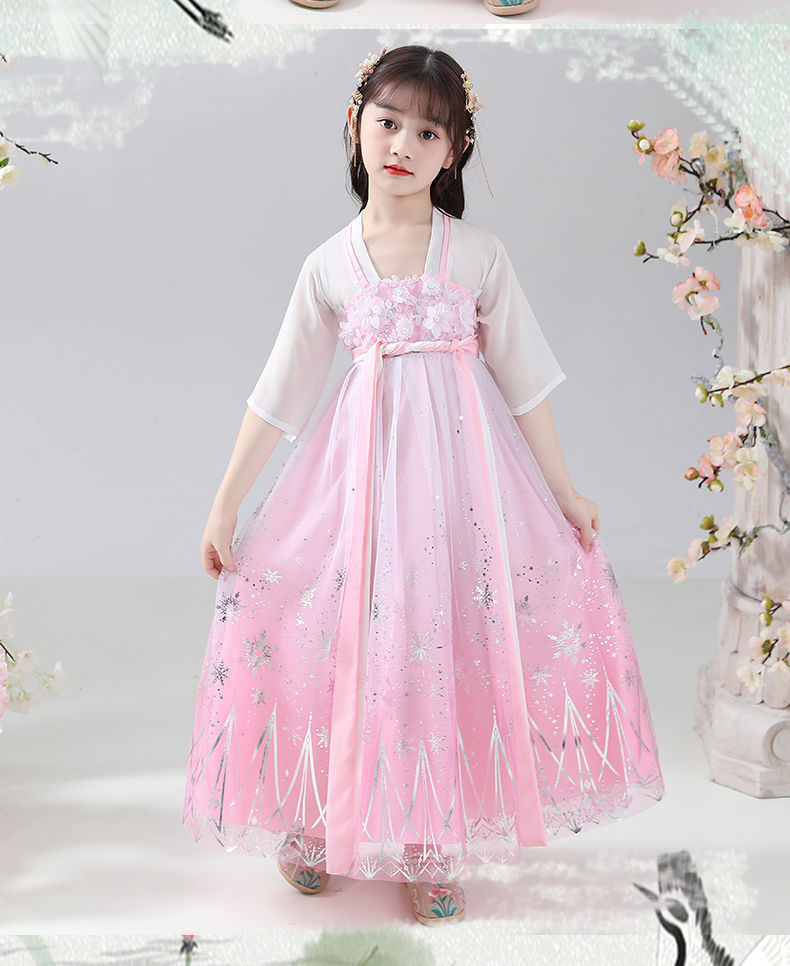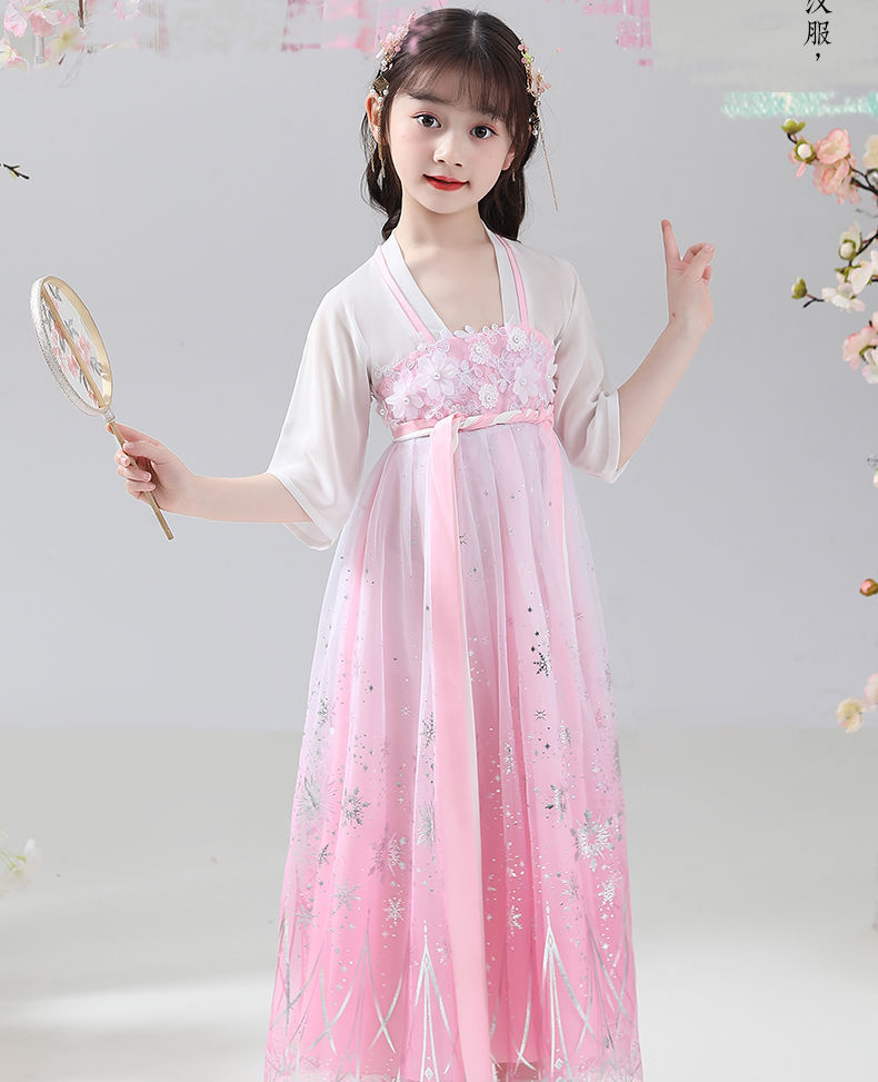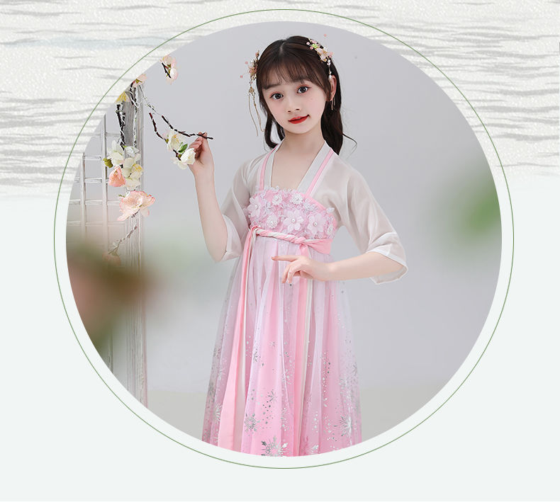 标题:漢服女子児童夏モデル唐服連衣姫スカート超仙飄逸薄モデル斉胸網紗スカート中国風時代劇