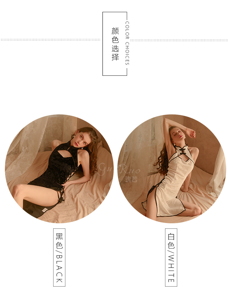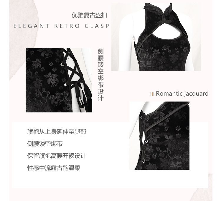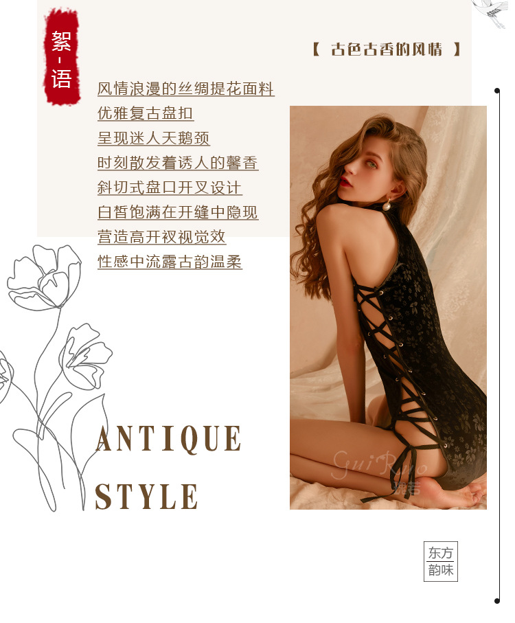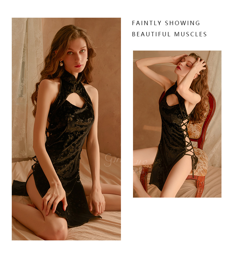 标题:瑰若情趣内衣性感复古丝绒修身睡裙侧边绑带诱惑旗袍制服套装674