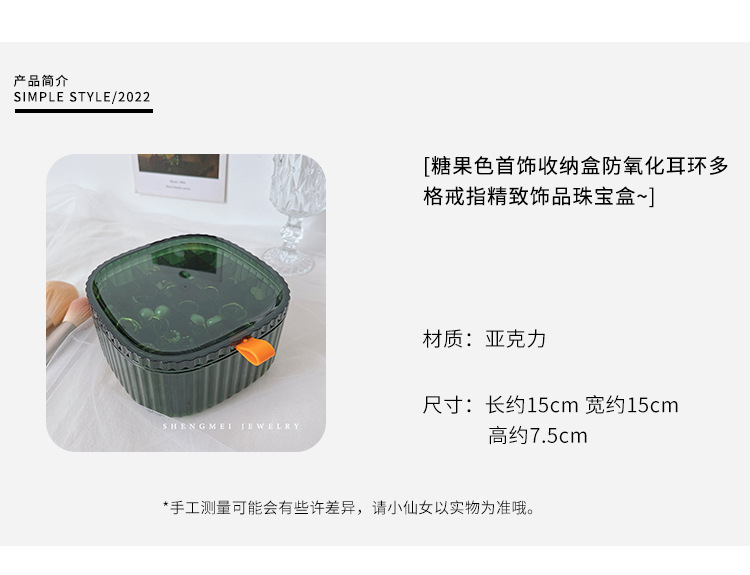 标题:简约透明首饰盒防尘防氧化耳环戒指项链收纳盒首饰精致饰品珠宝盒