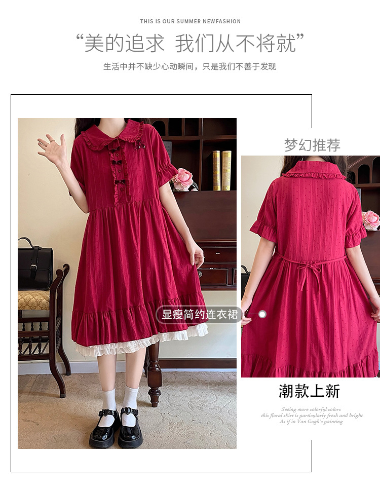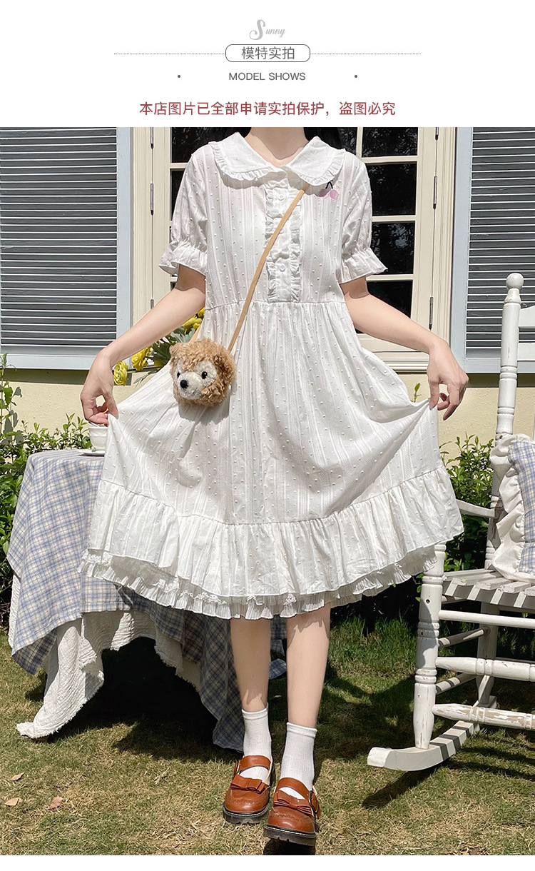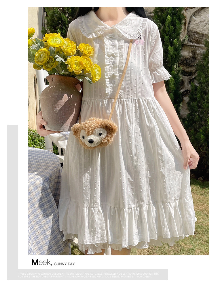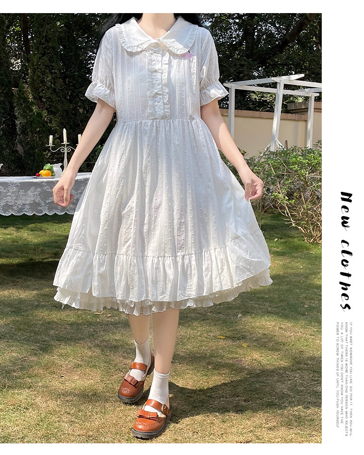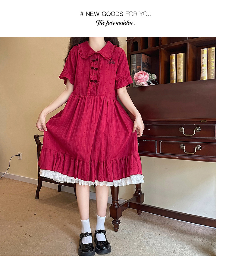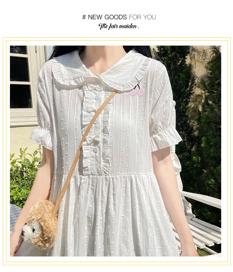 标题:夏の新型日系中学生刺繍ゆったりウエスト巻き少女純綿半袖ワンピース女
