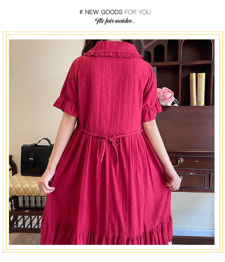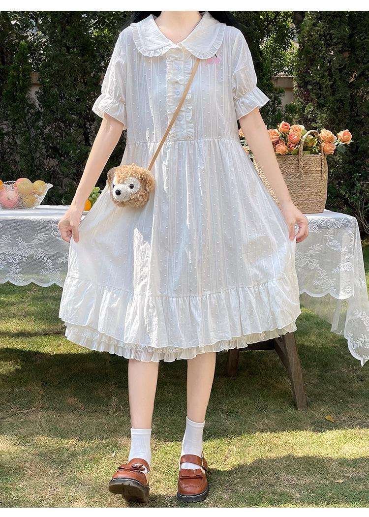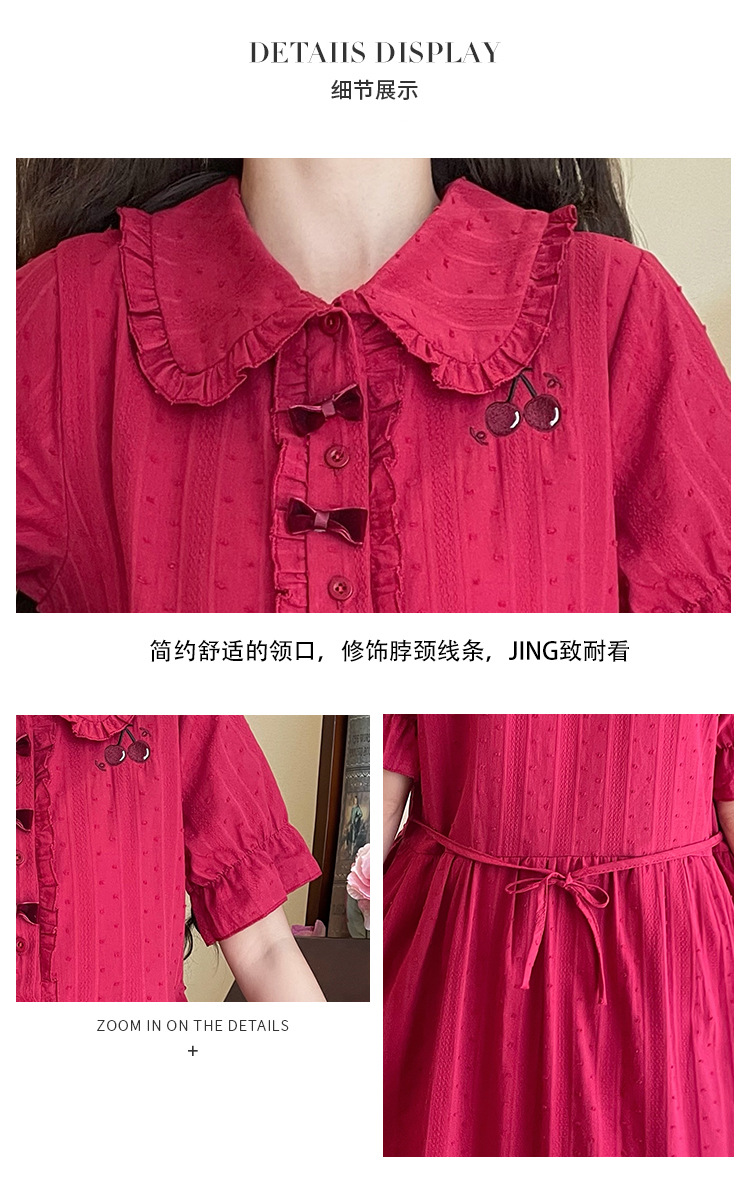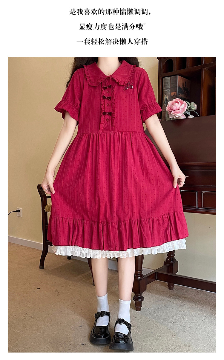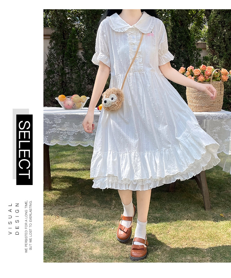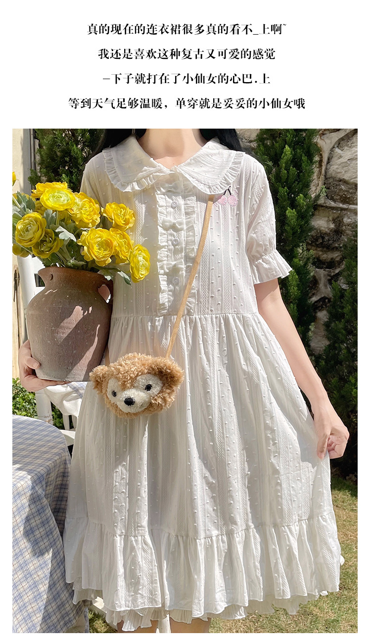标题:夏の新型日系中学生刺繍ゆったりウエスト巻き少女純綿半袖ワンピース女