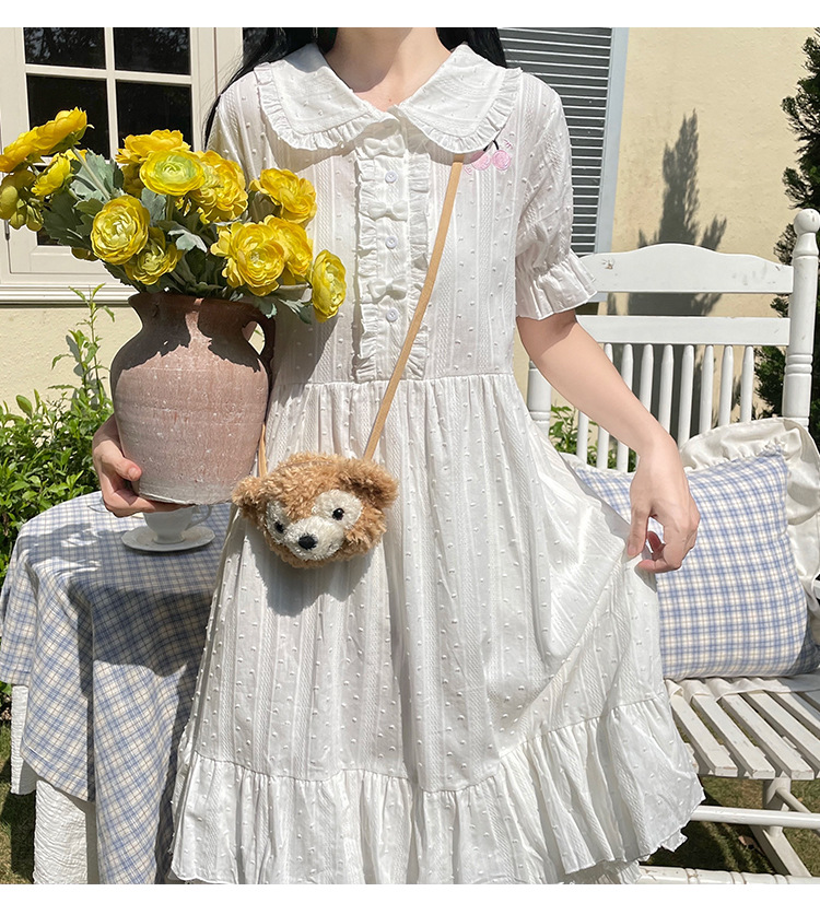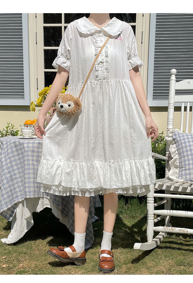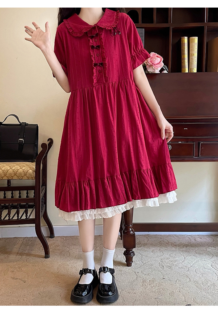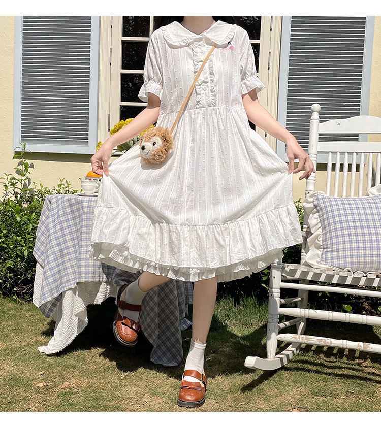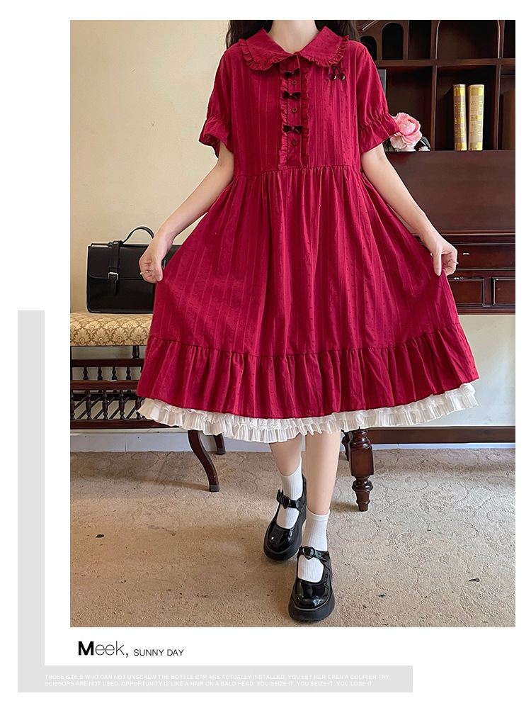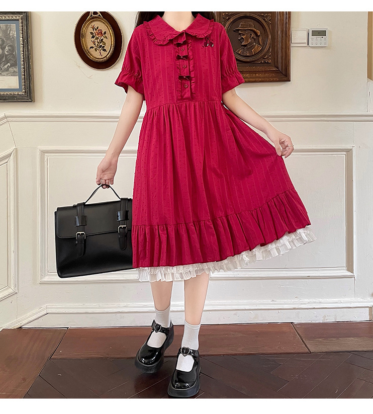 标题:夏の新型日系中学生刺繍ゆったりウエスト巻き少女純綿半袖ワンピース女