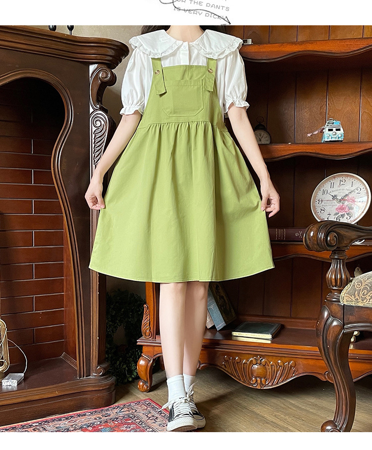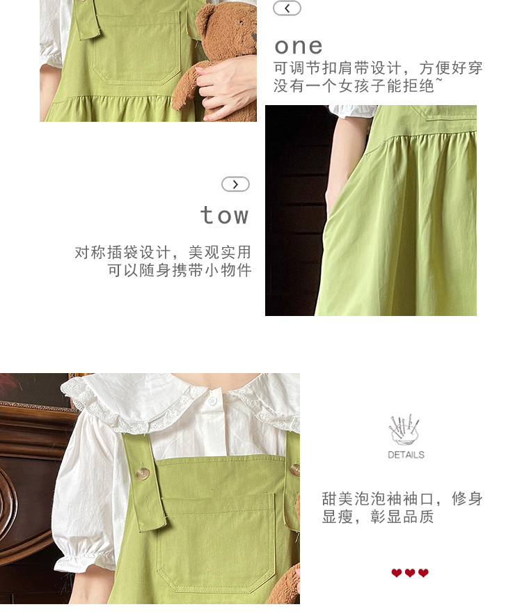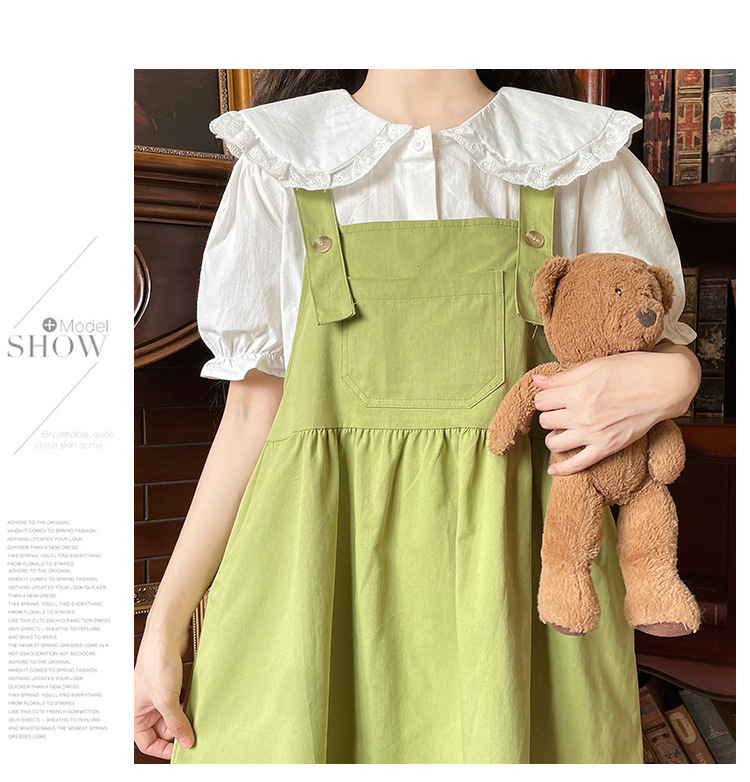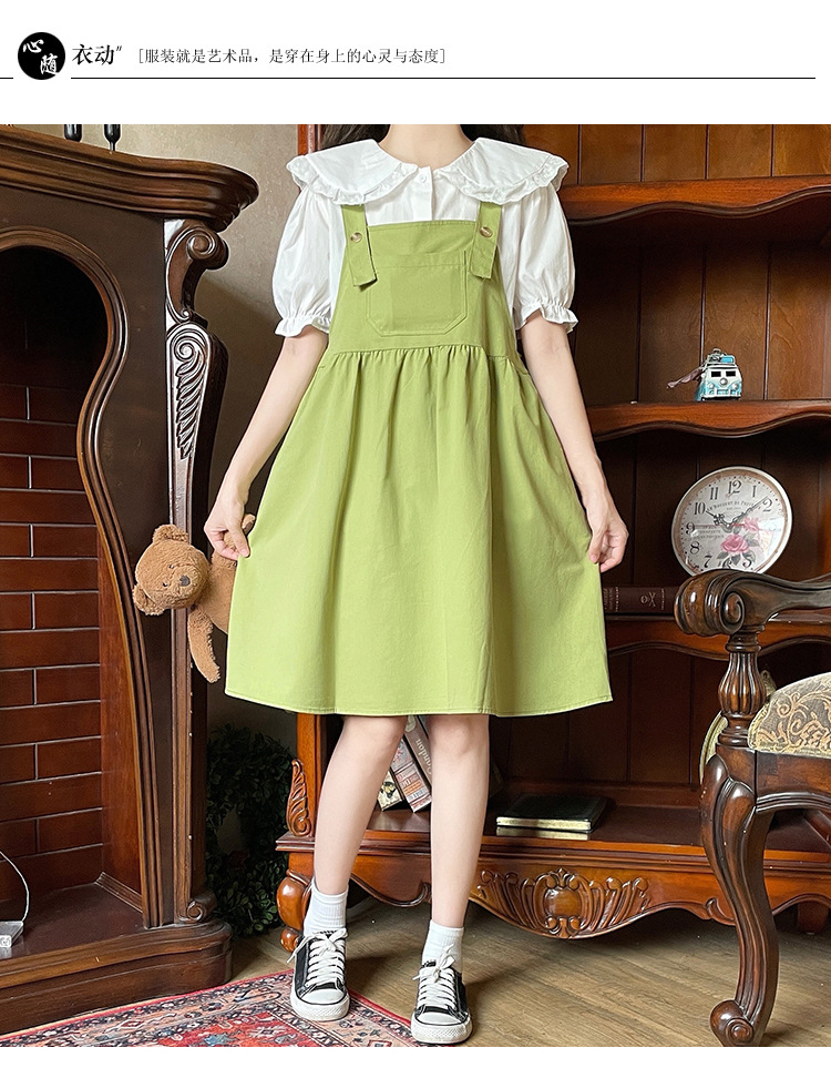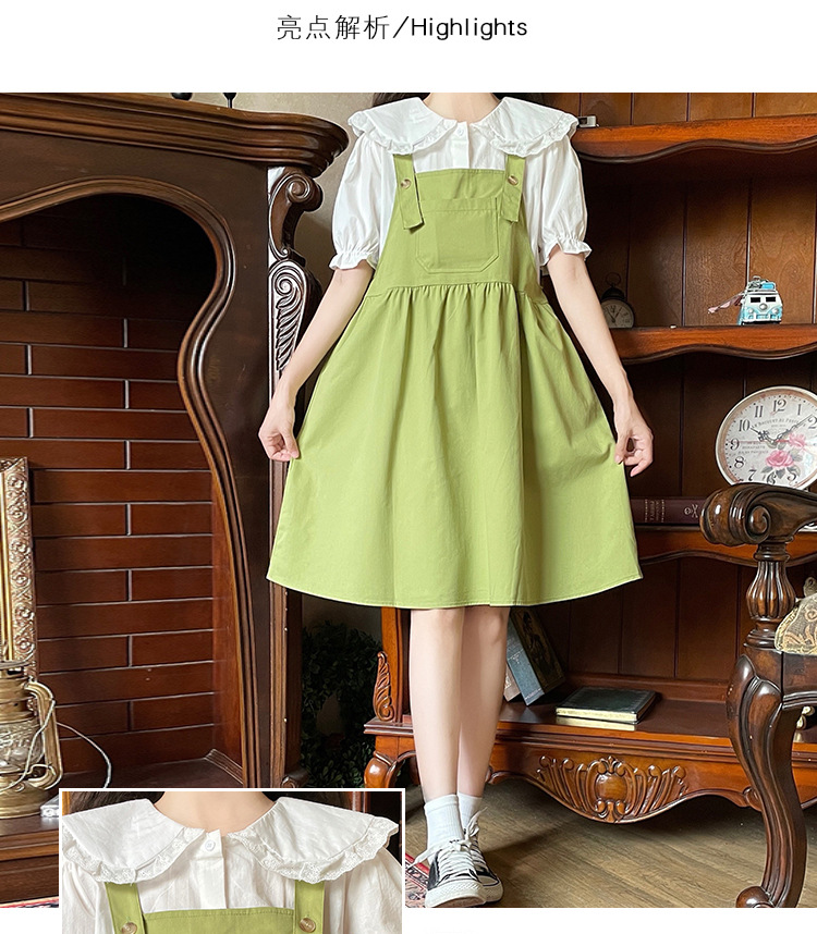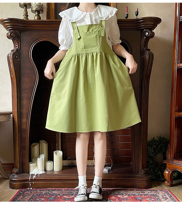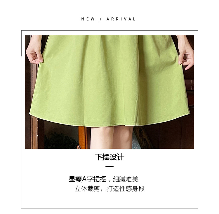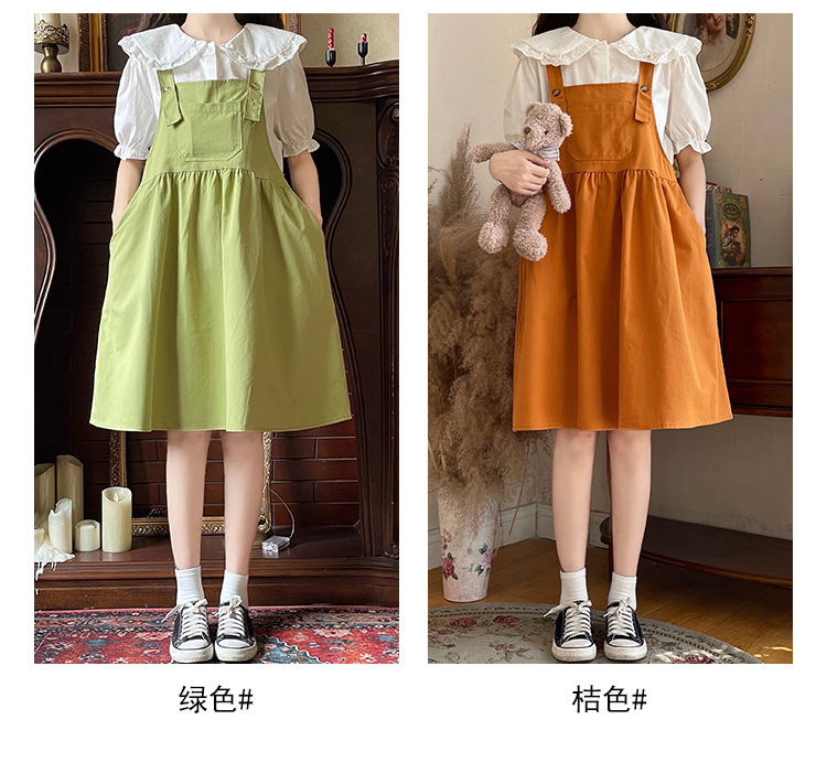 标题:グリーンコットンストラップスカート新作日系中学生ゆったり洋風少女ノースリーブワンピース夏