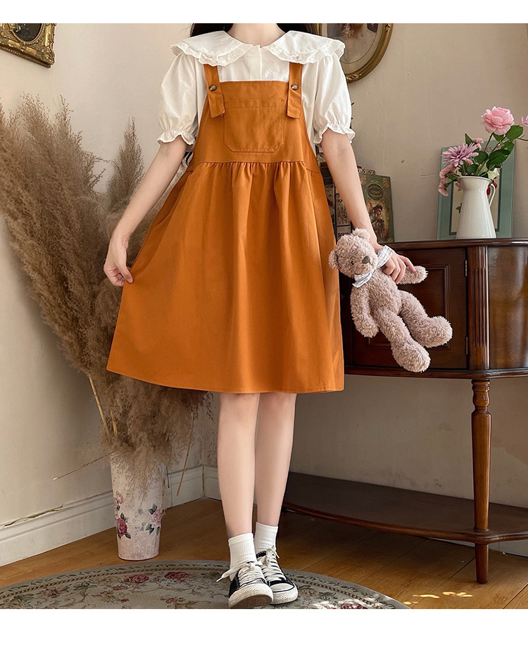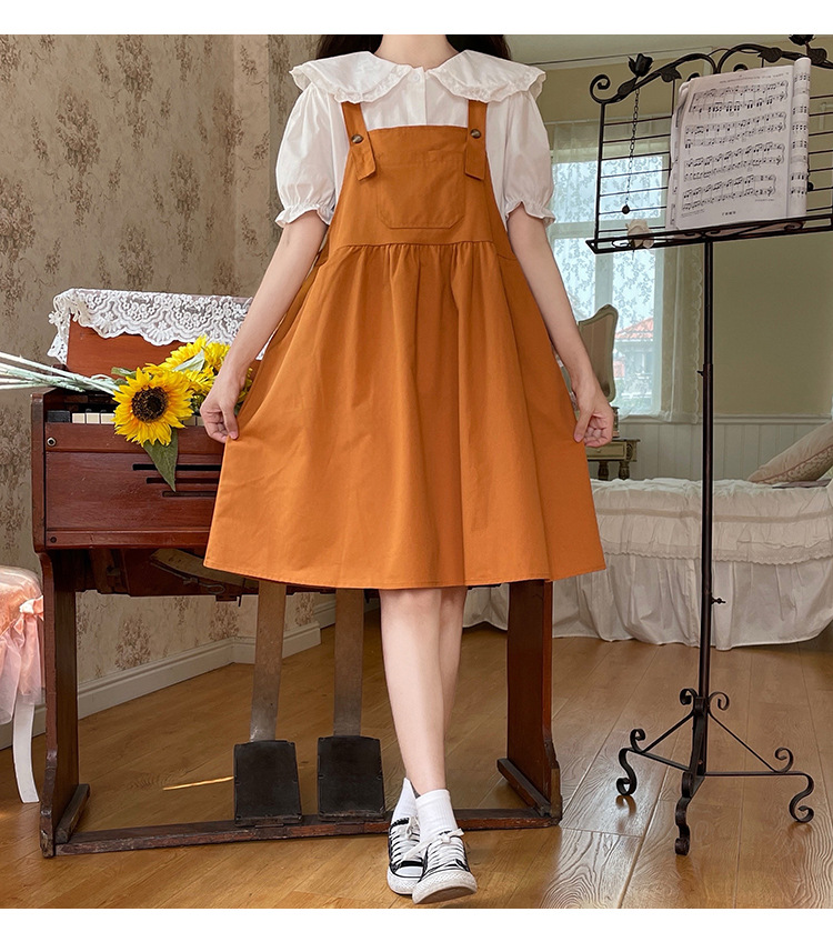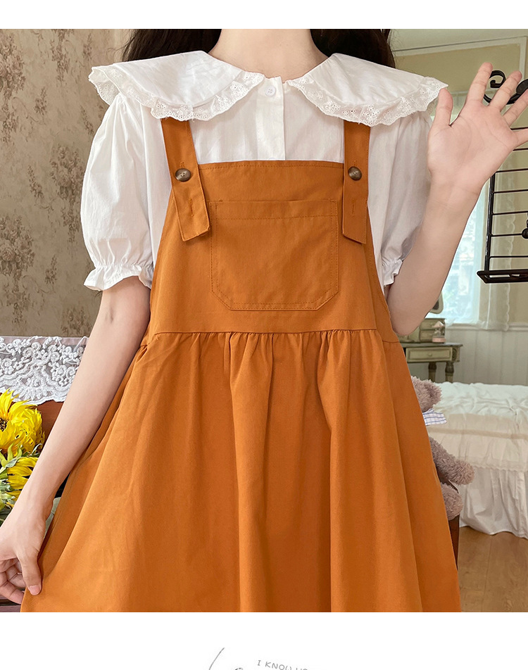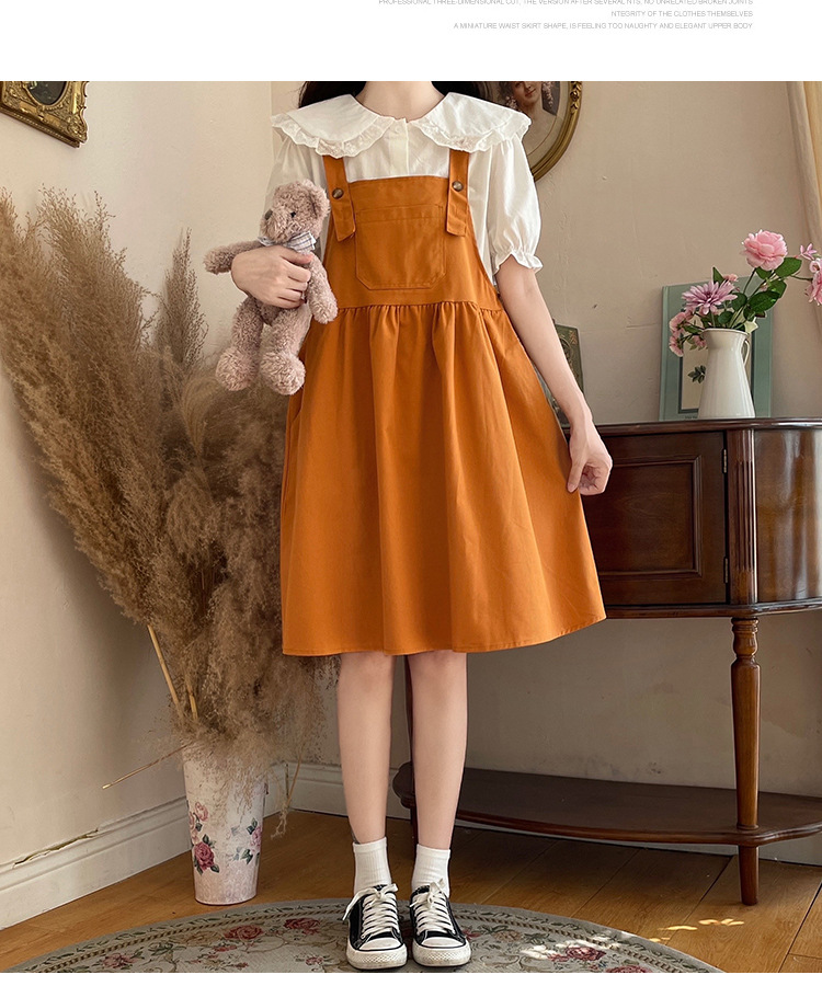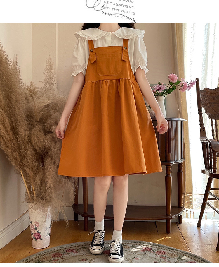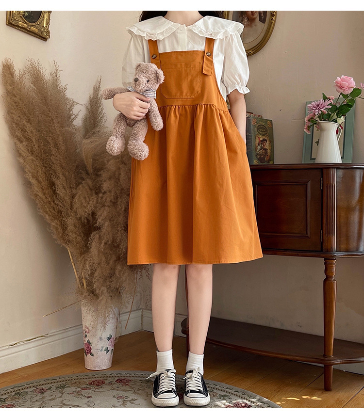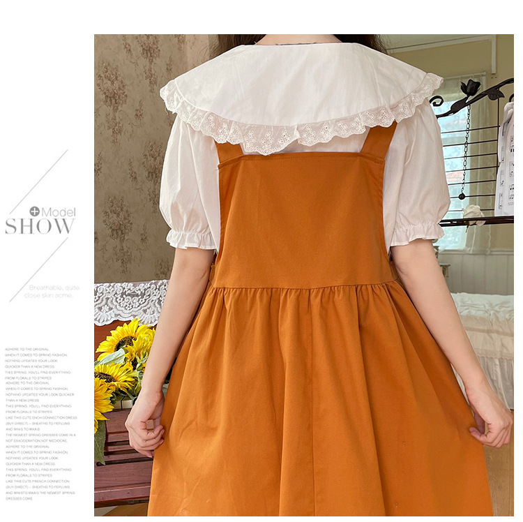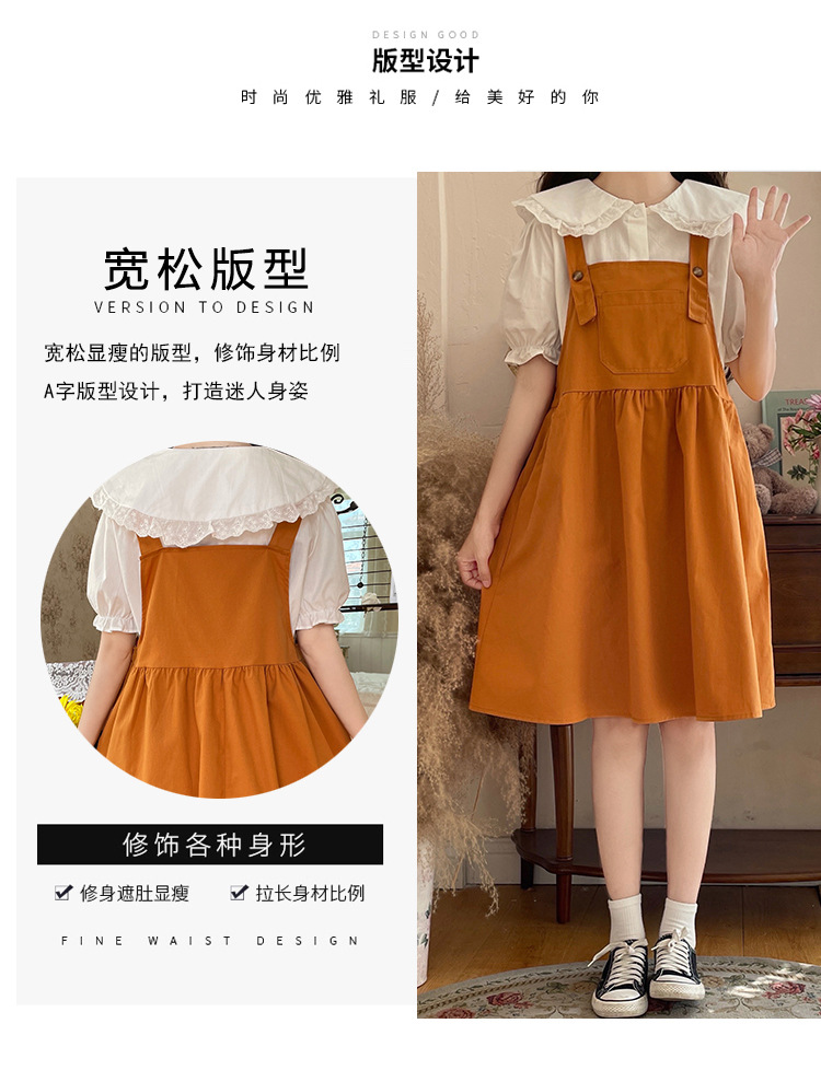 标题:グリーンコットンストラップスカート新作日系中学生ゆったり洋風少女ノースリーブワンピース夏