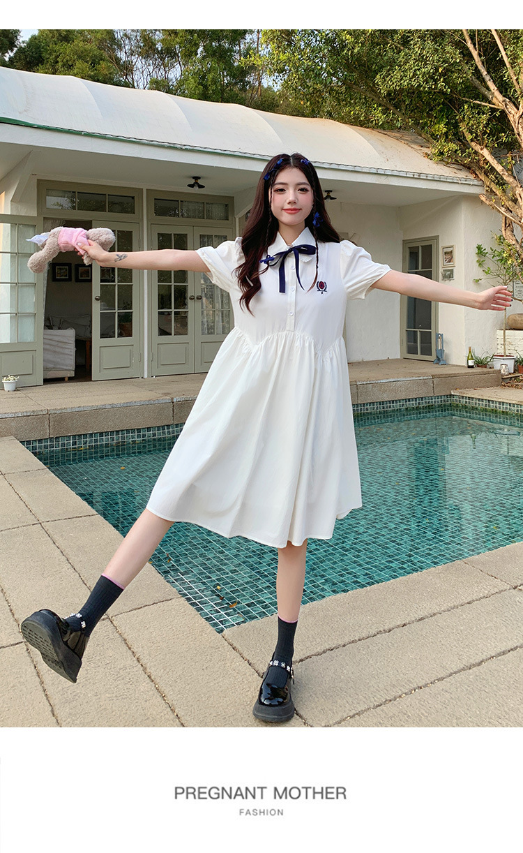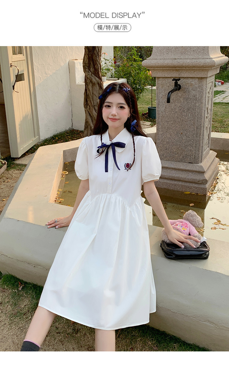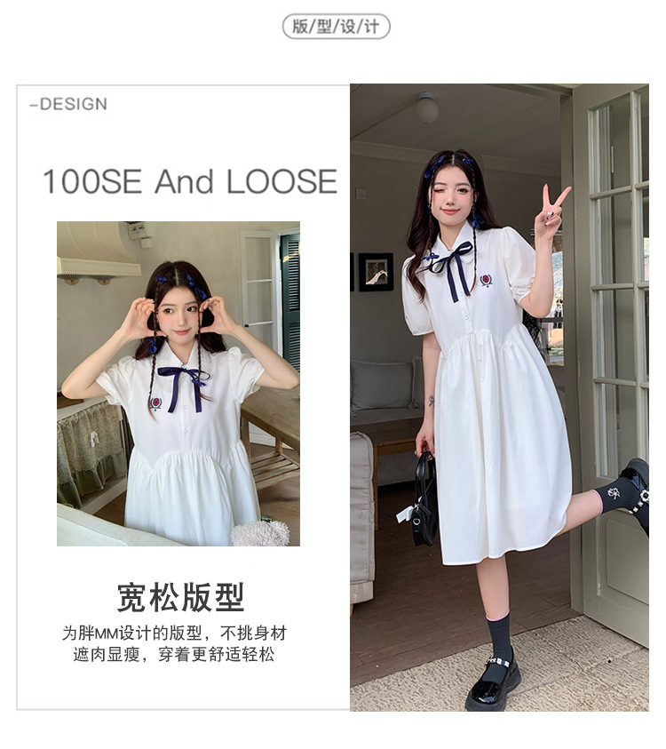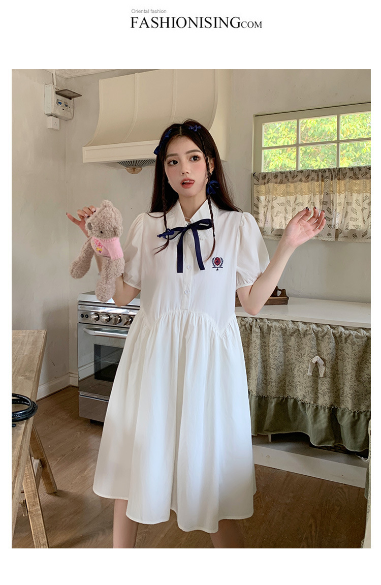 标题:白の半袖ワンピース夏の新作甘いアカデミア風ゆったり着やせ少女っぽいシフォンスカート