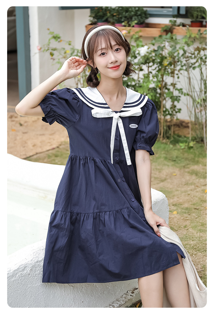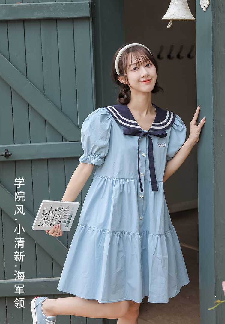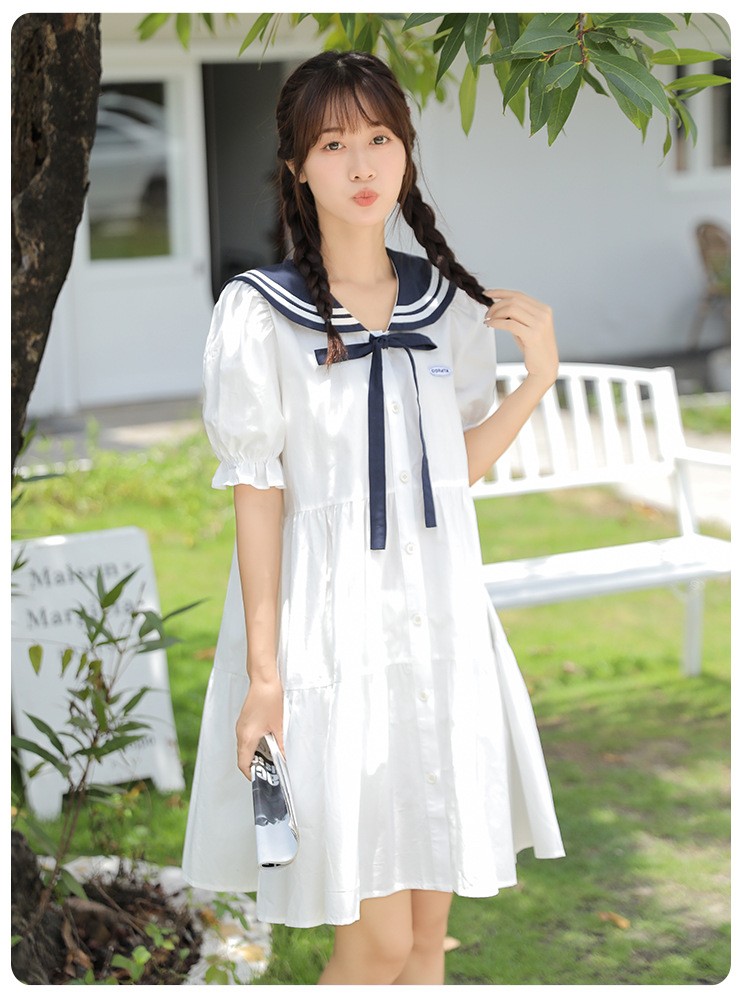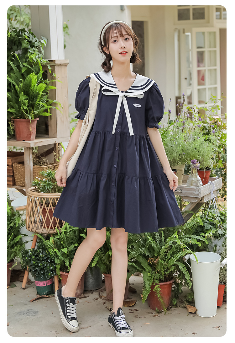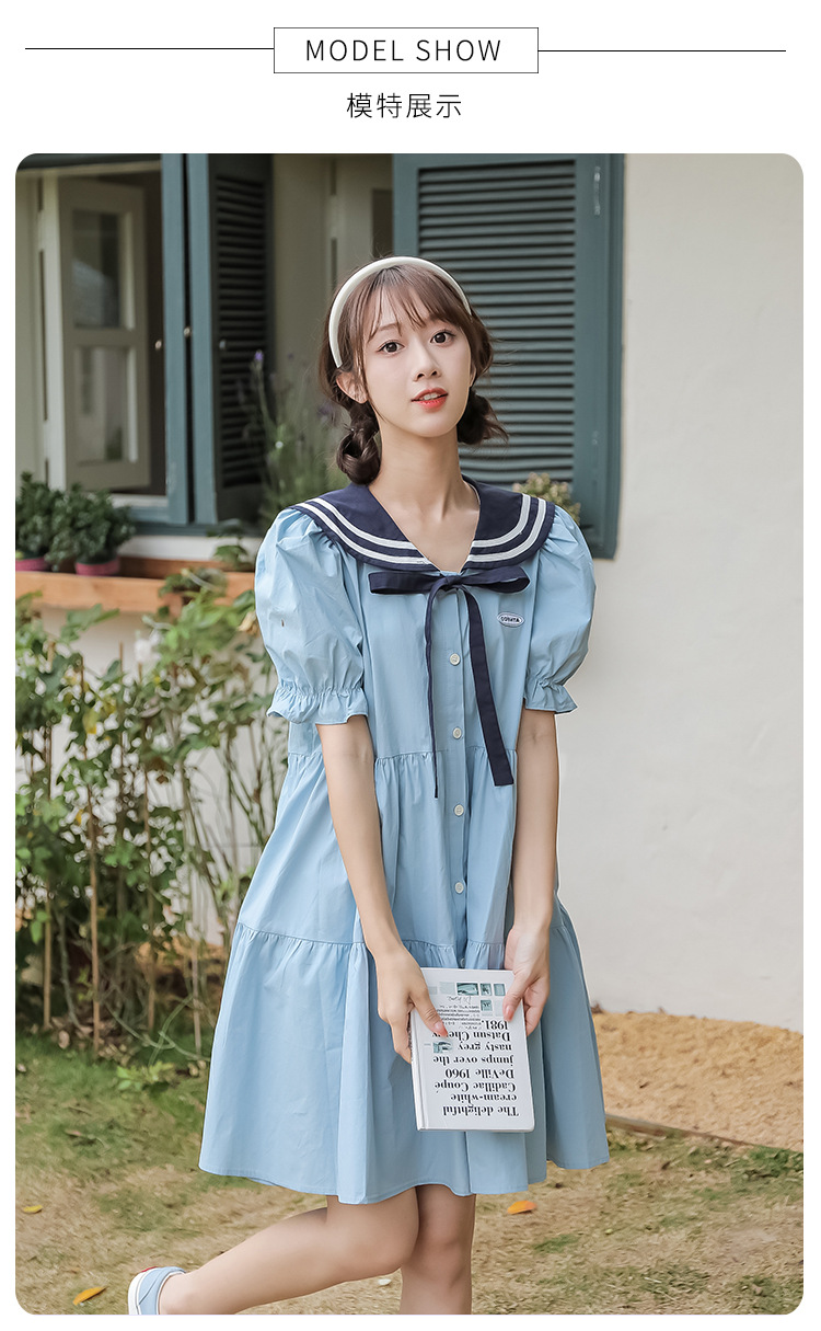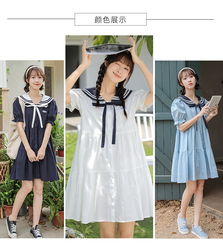 标题:純綿半袖ワンピース夏の新中学生ゆったりやせ海軍ネック少女JKスカート