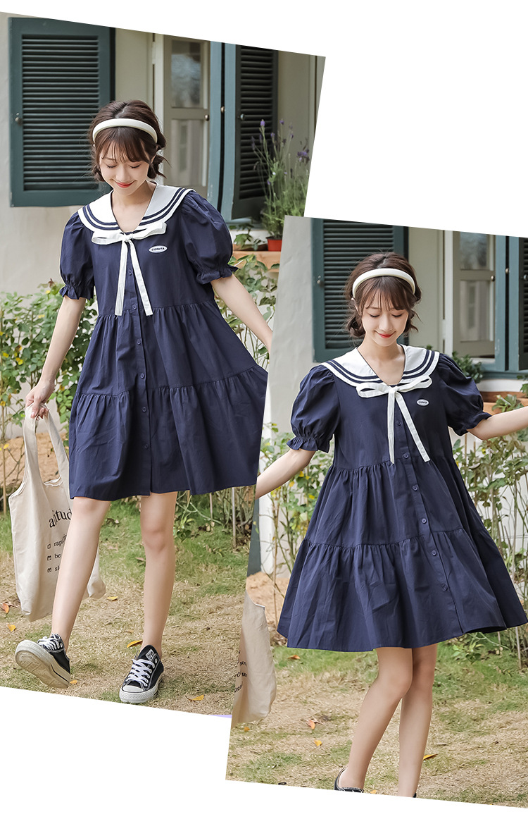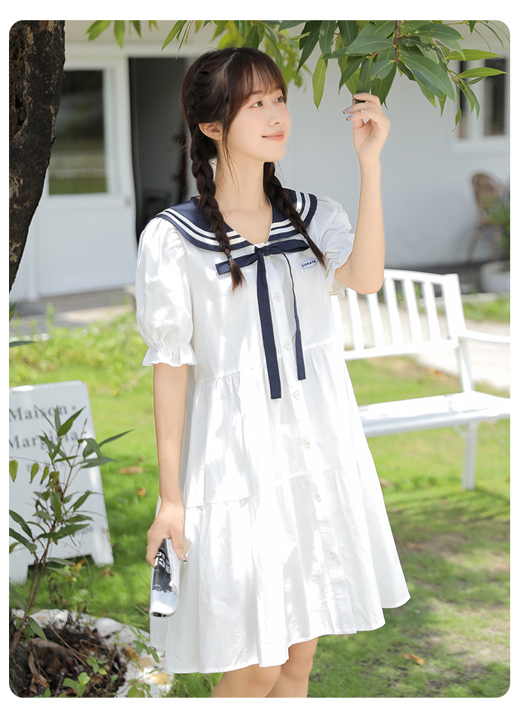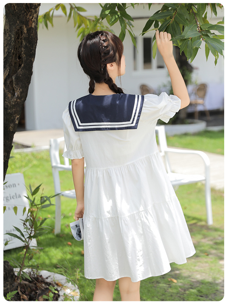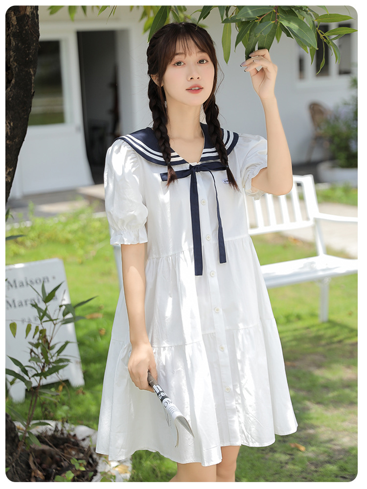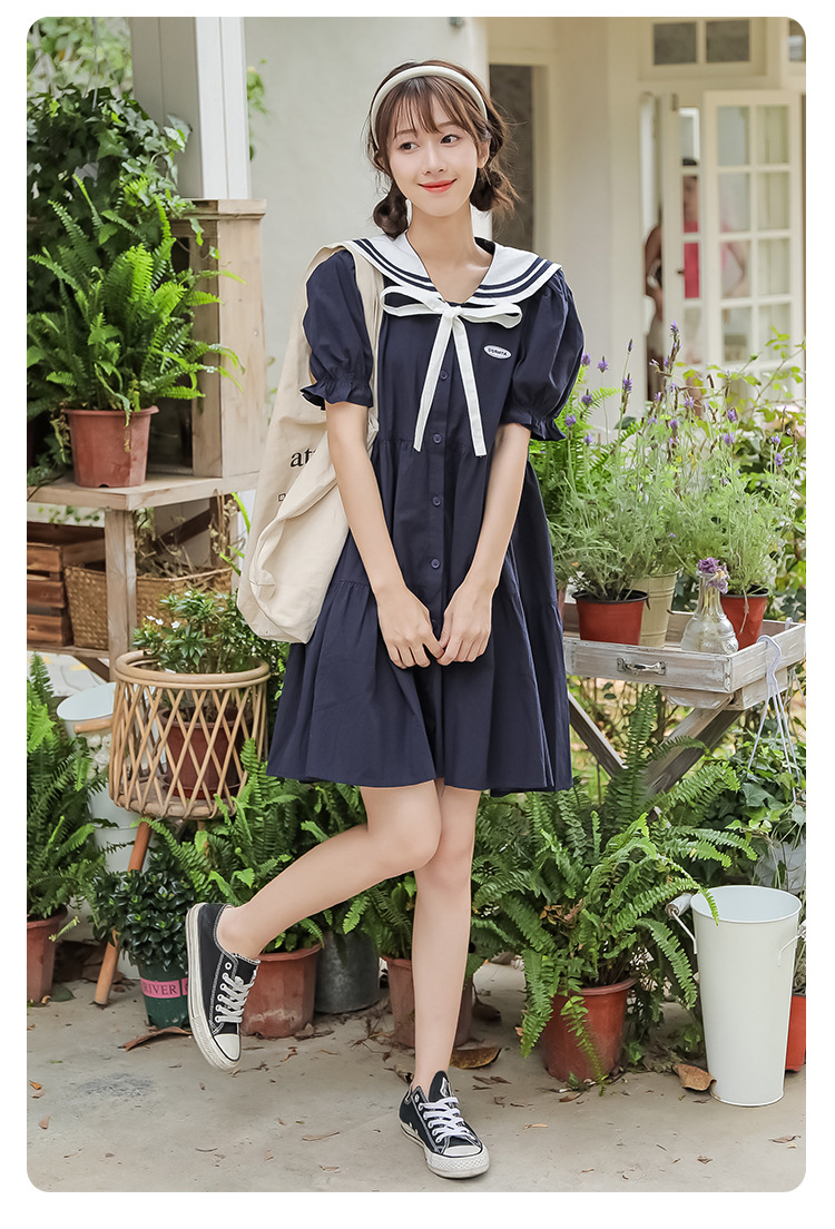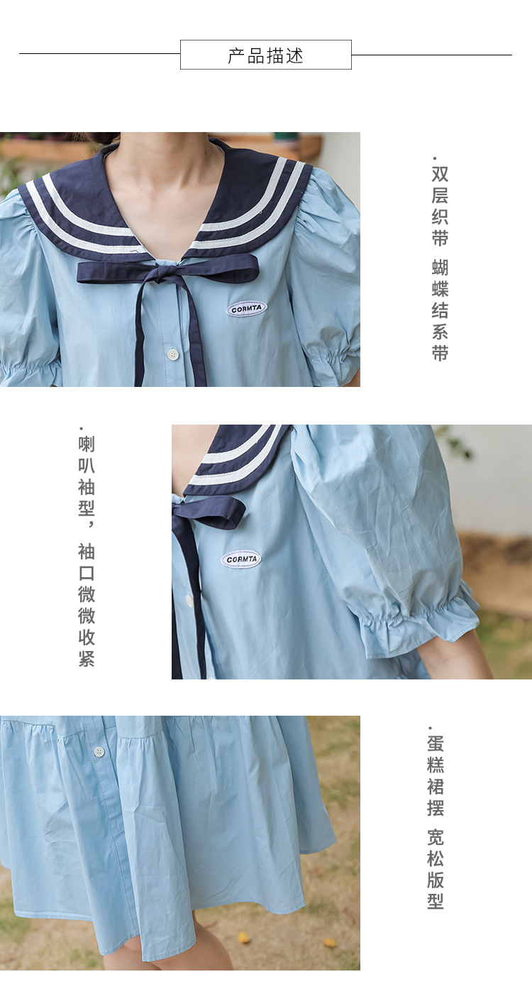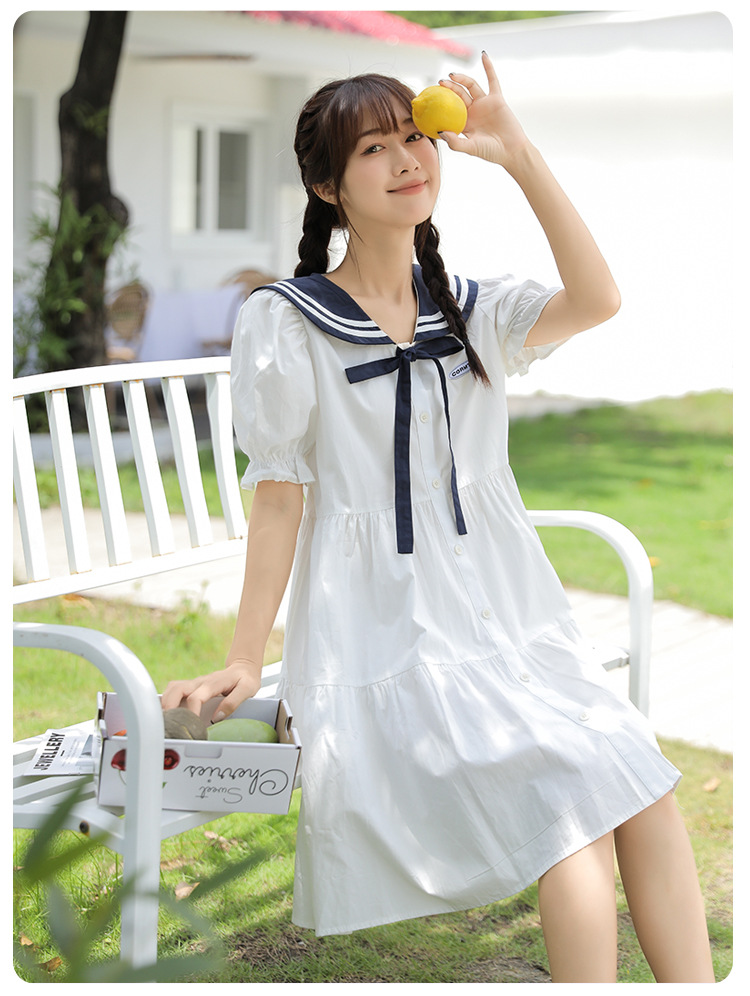 标题:純綿半袖ワンピース夏の新中学生ゆったりやせ海軍ネック少女JKスカート