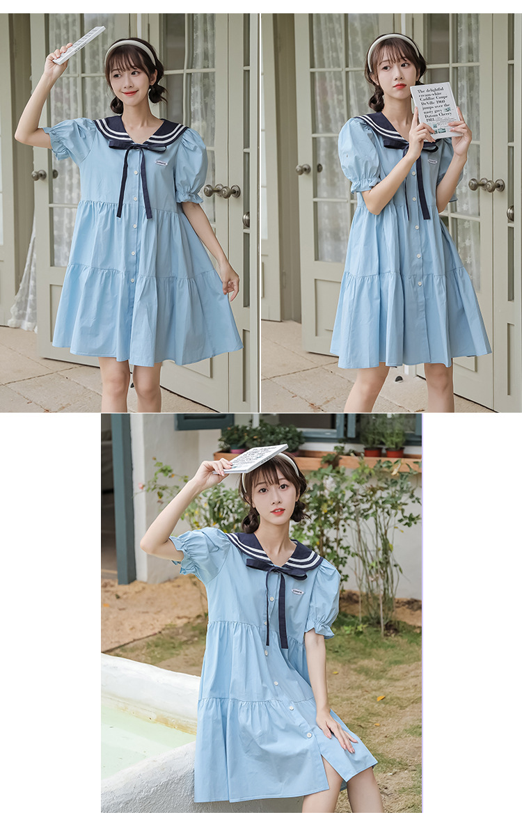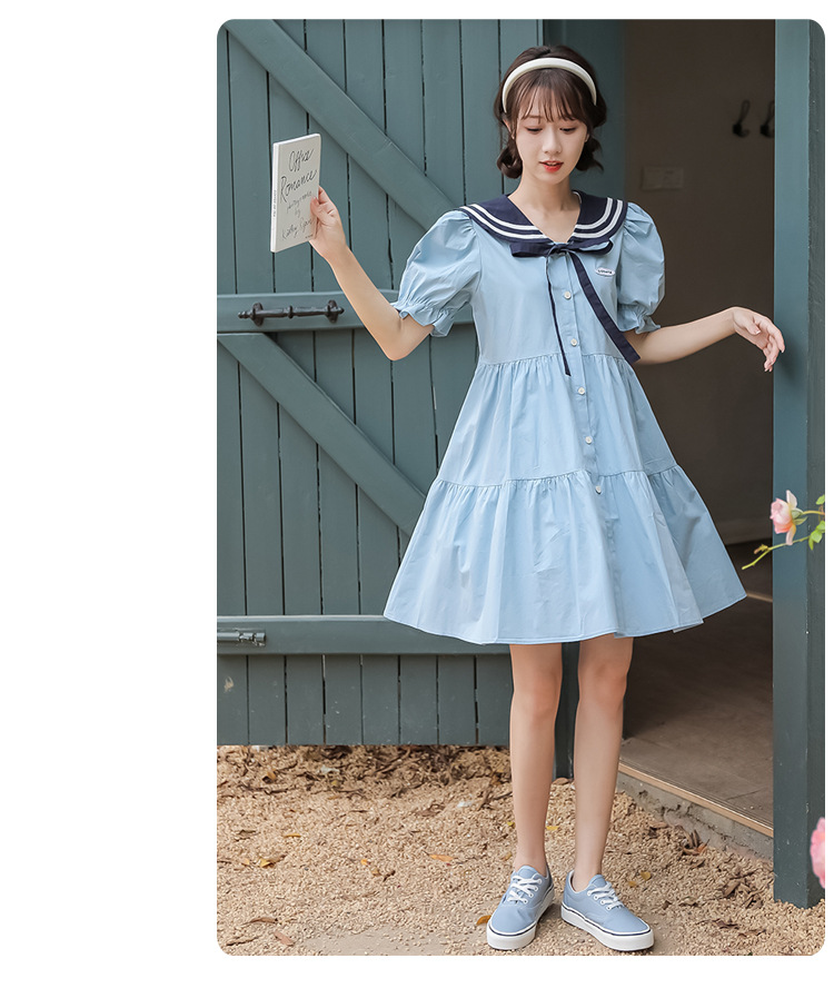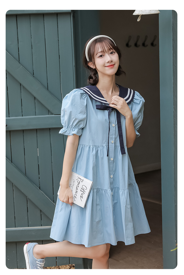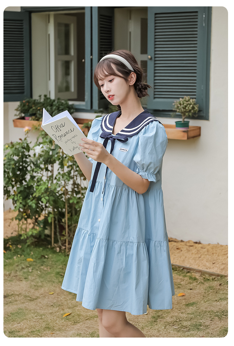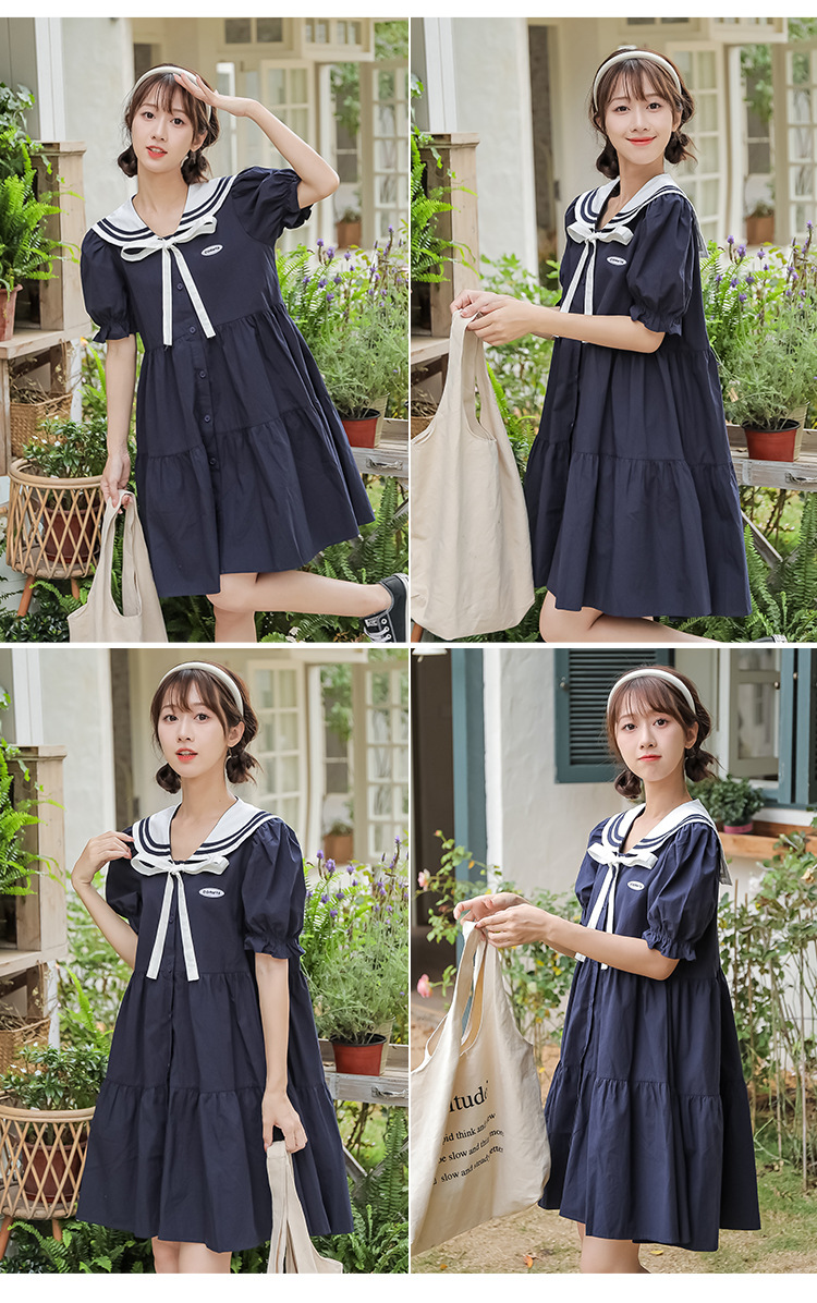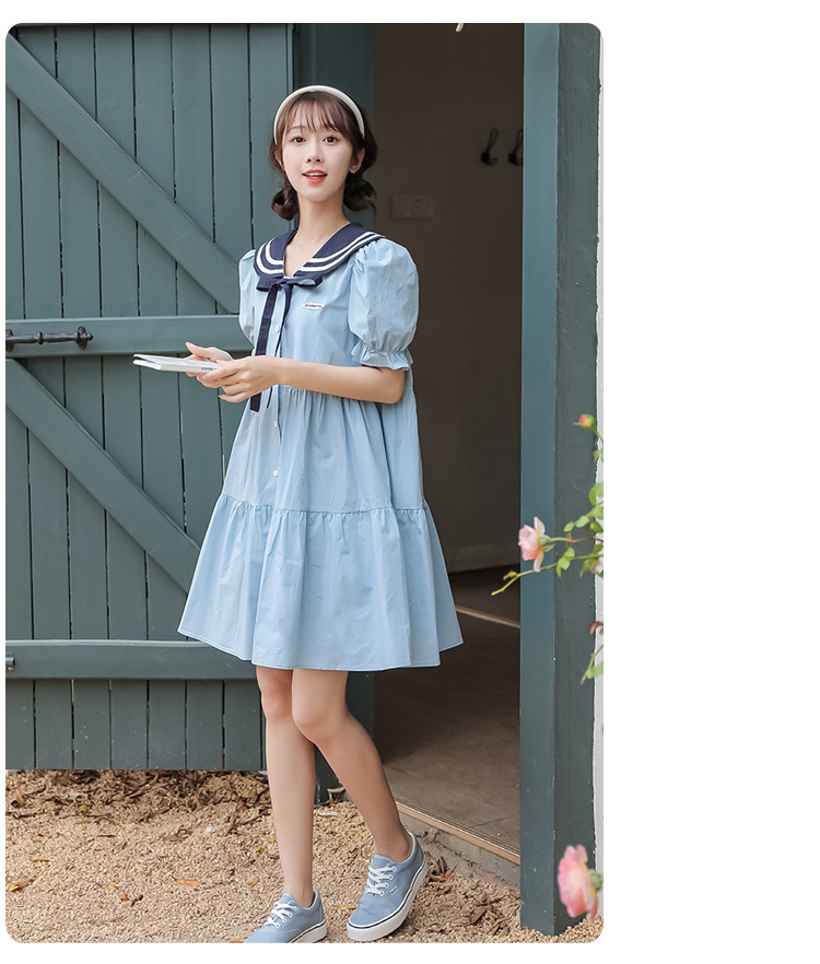 标题:純綿半袖ワンピース夏の新中学生ゆったりやせ海軍ネック少女JKスカート