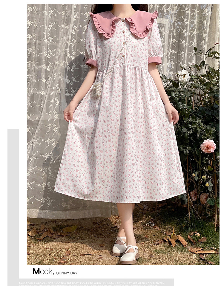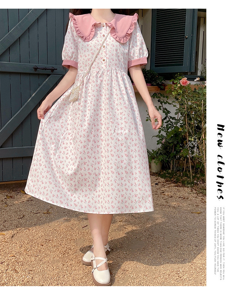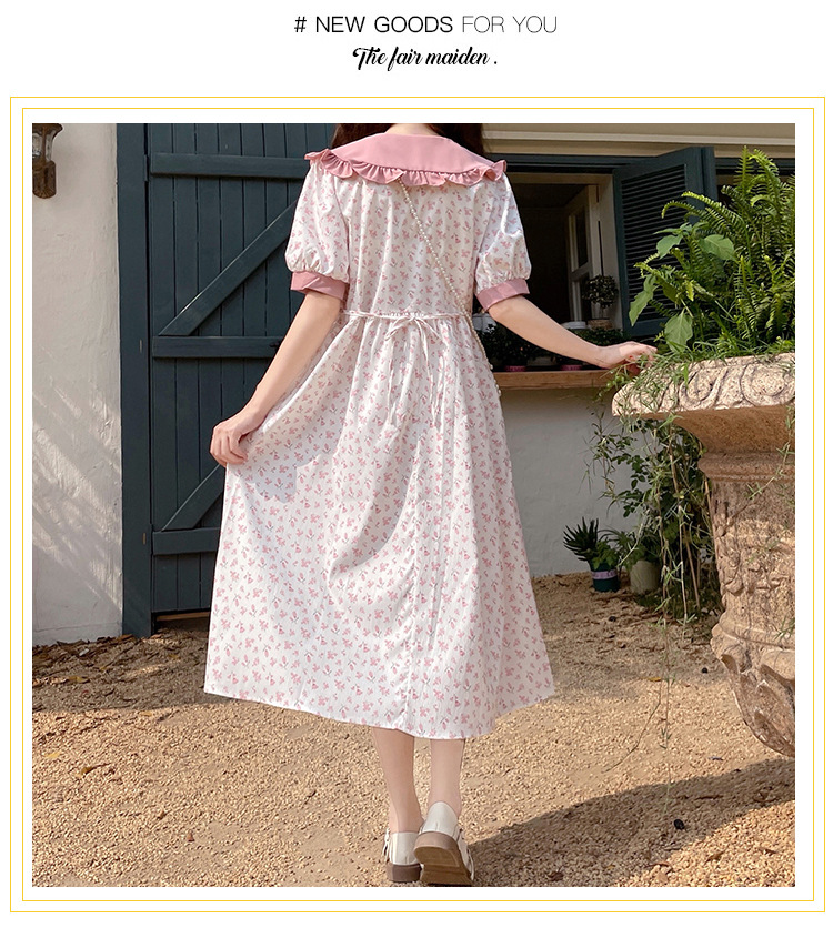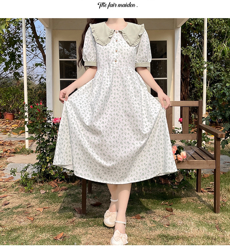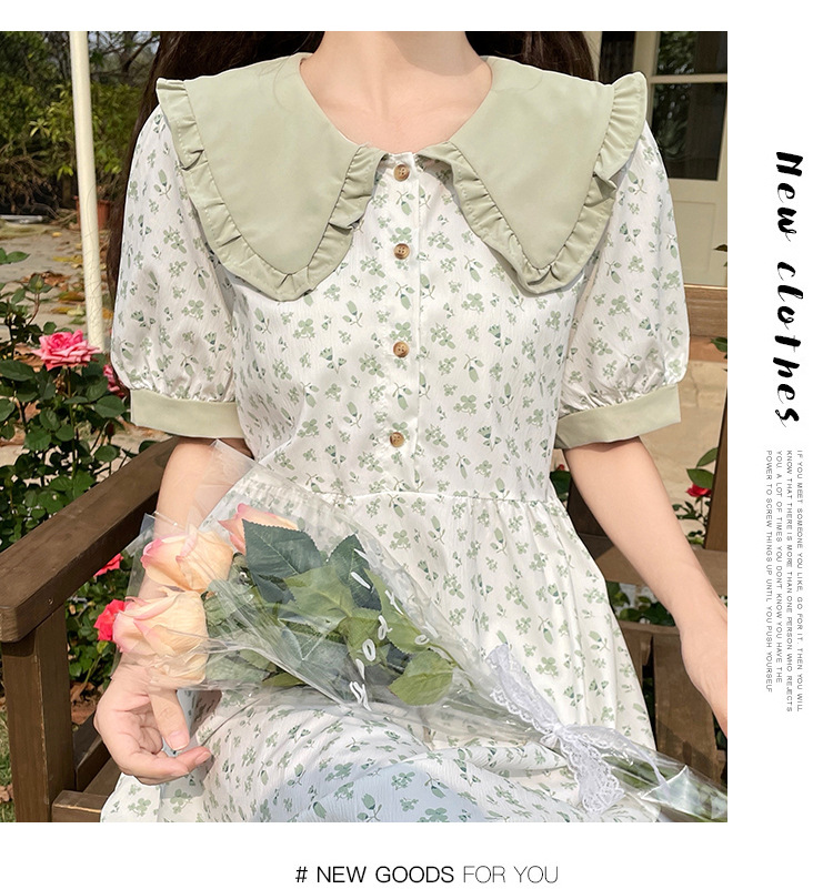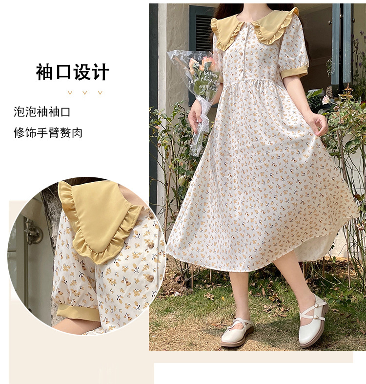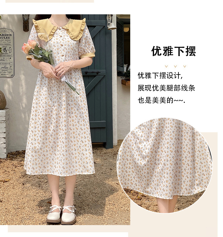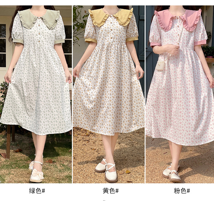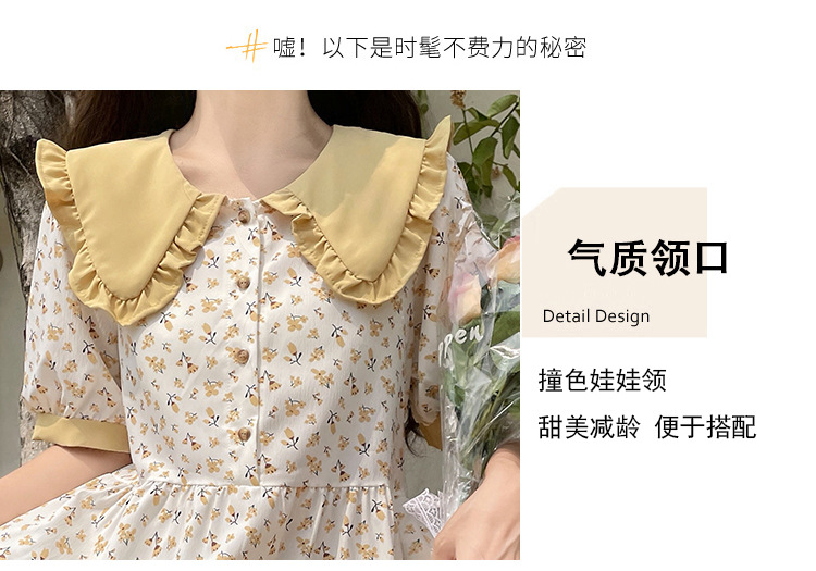 标题:シフォン半袖ワンピース女2023夏新作甘い学生ゆったりウエスト丸襟少女スカート