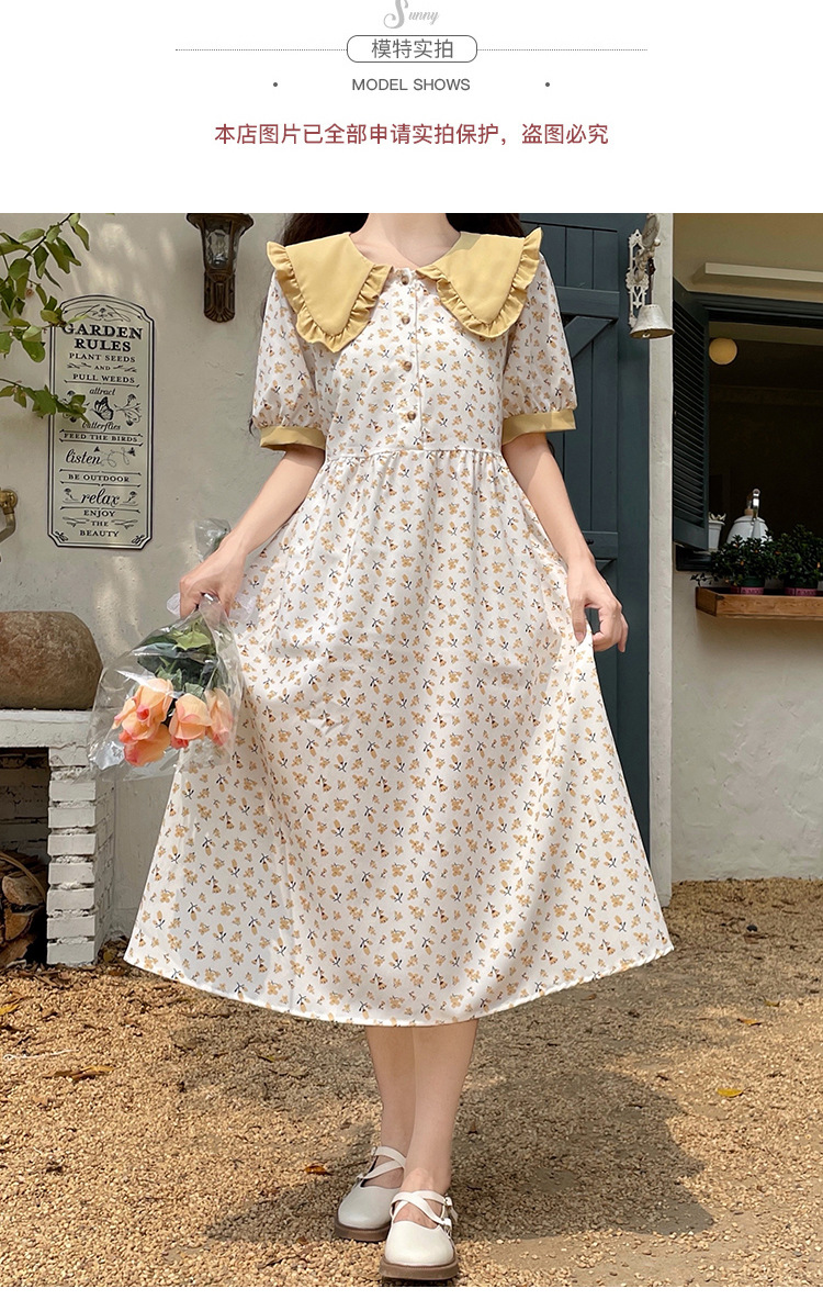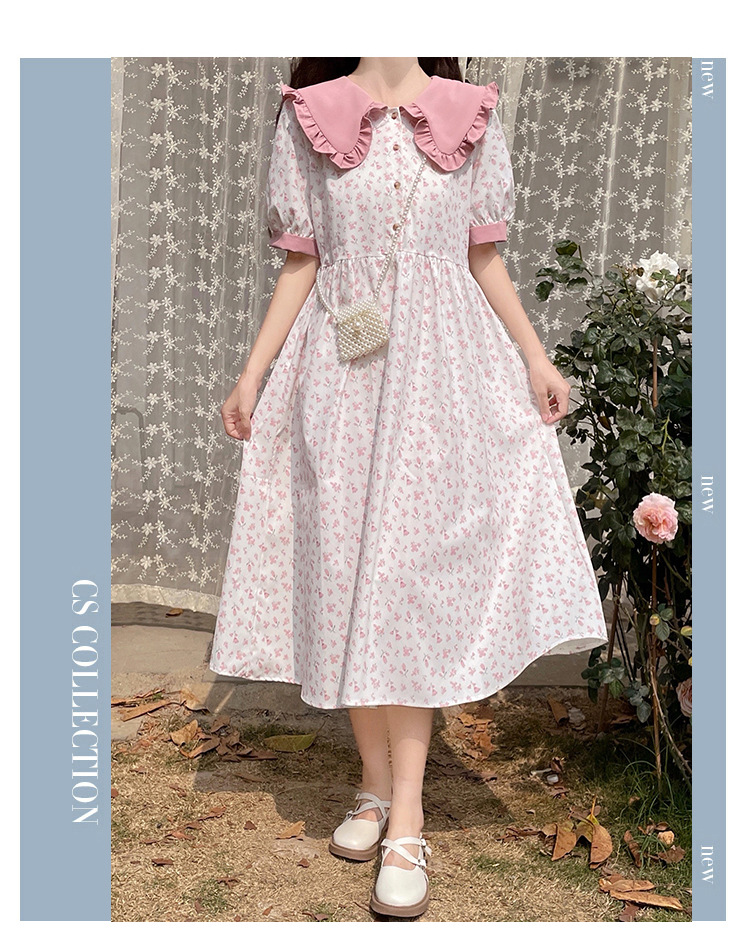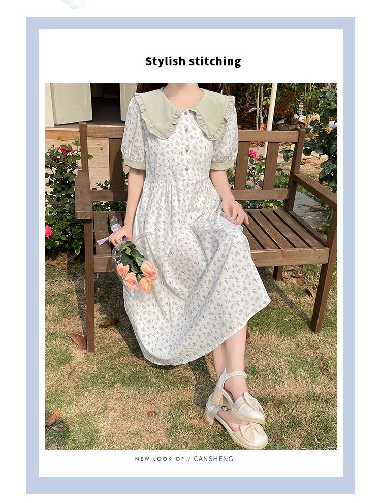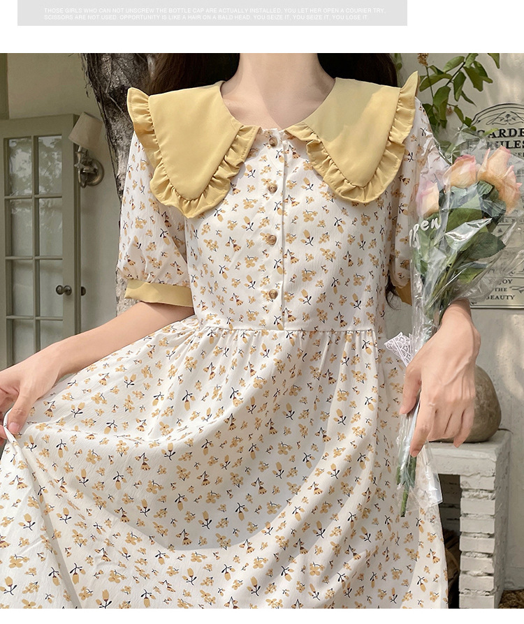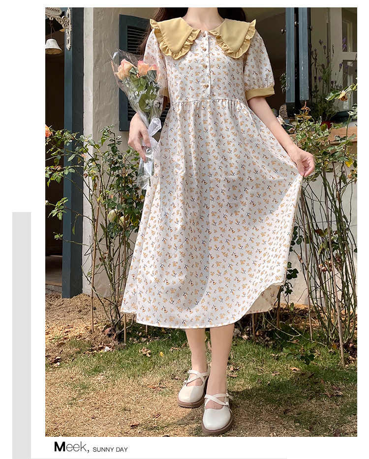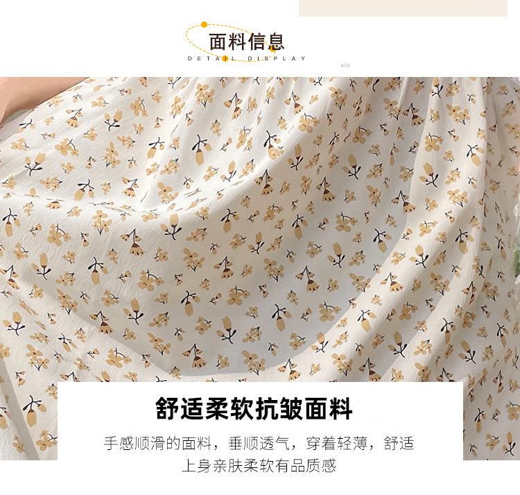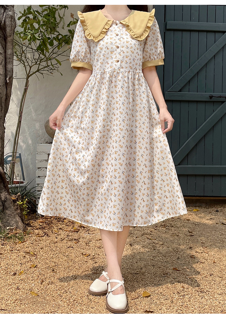 标题:シフォン半袖ワンピース女2023夏新作甘い学生ゆったりウエスト丸襟少女スカート