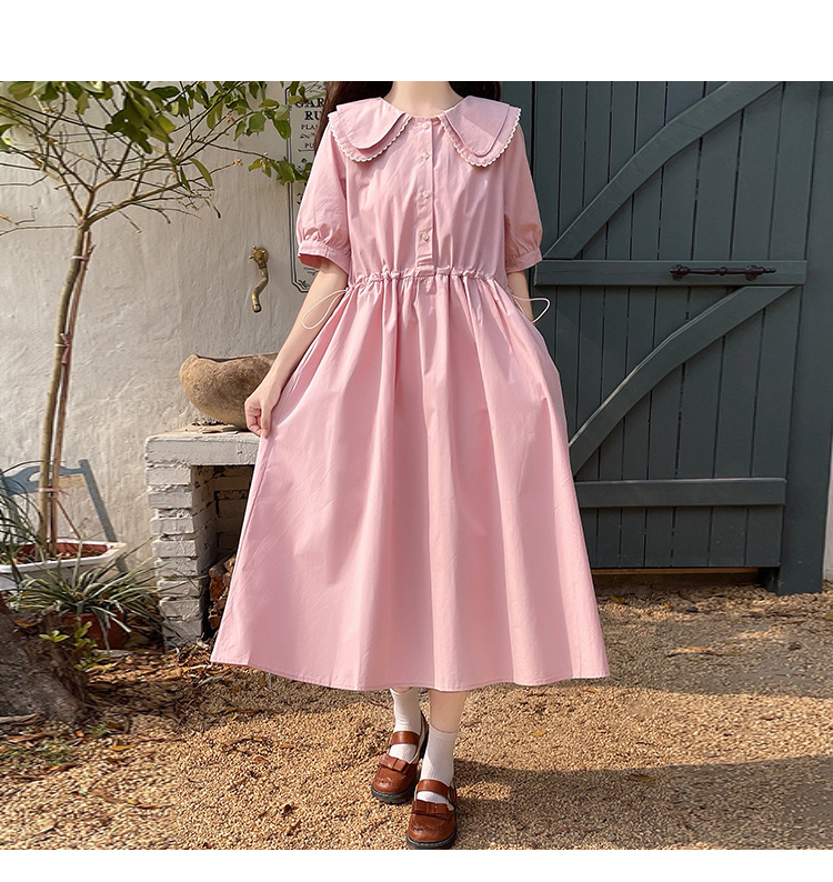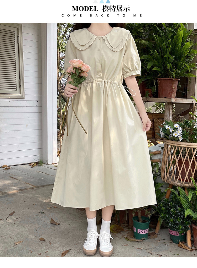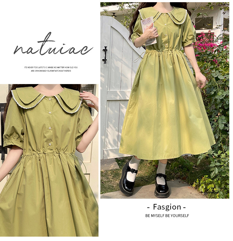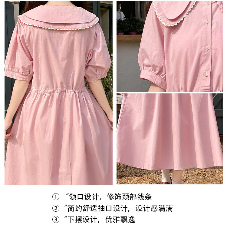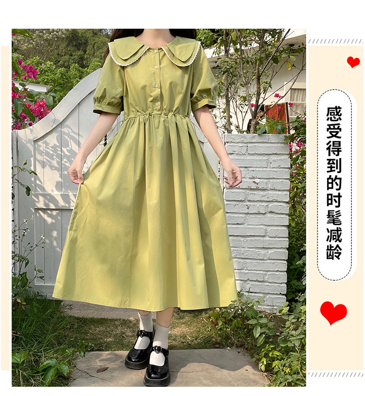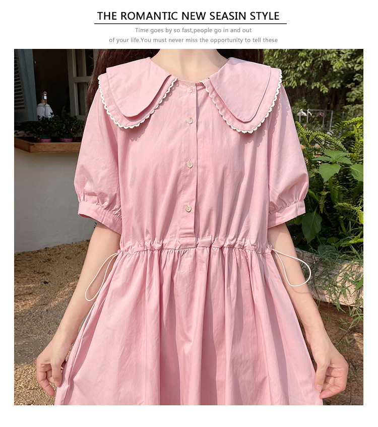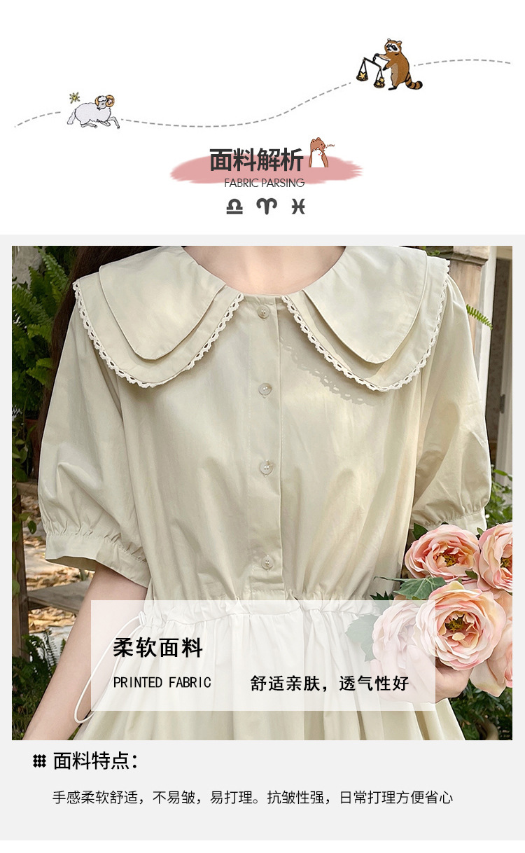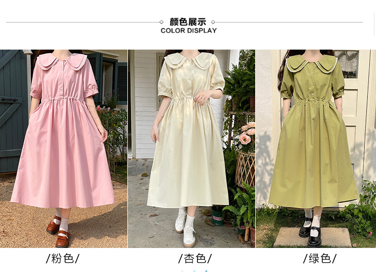 标题:ドールネック純綿半袖ワンピース女性2023夏服新型中高生ゆったり腰巻き少女スカート