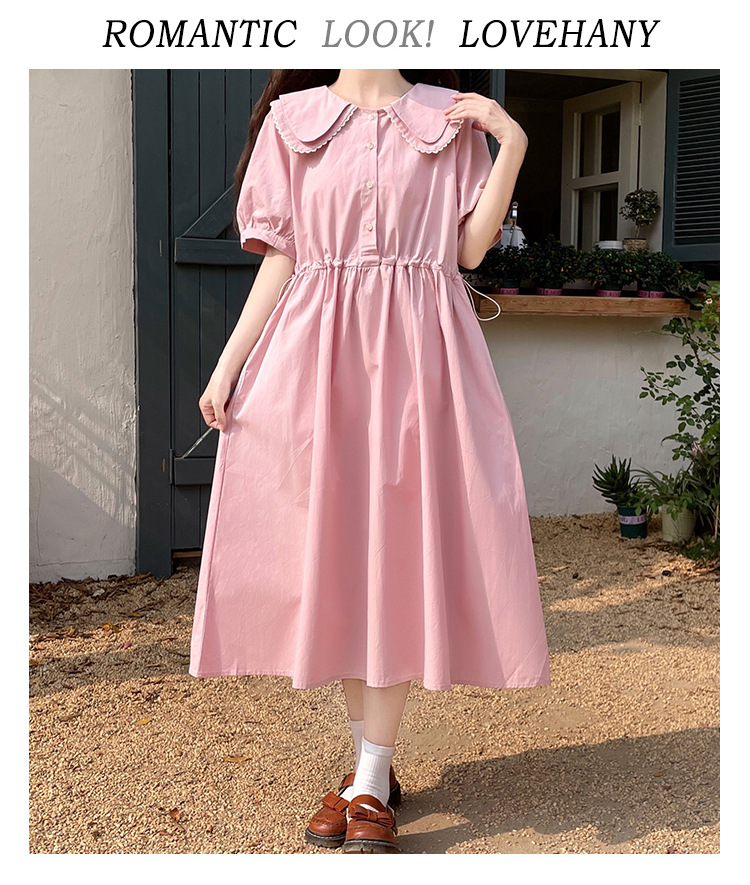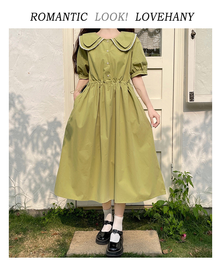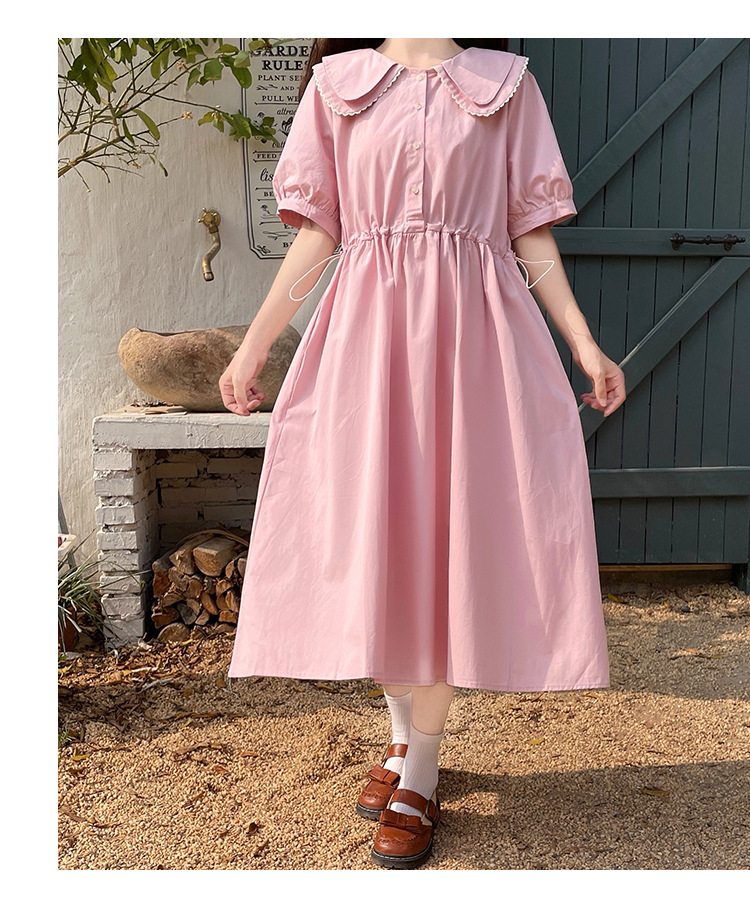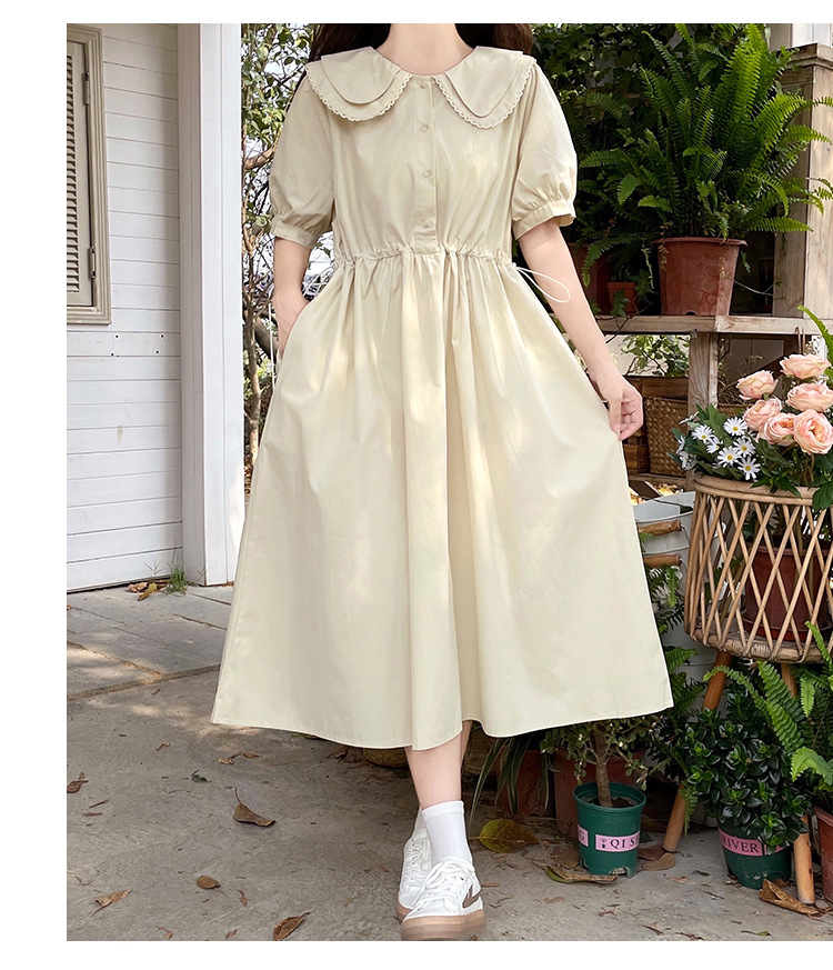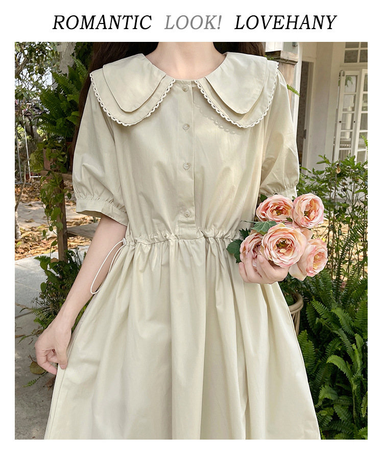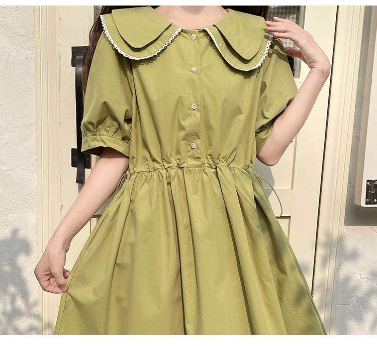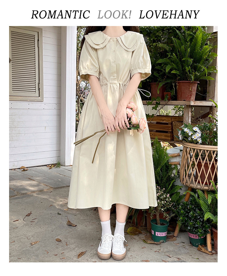 标题:ドールネック純綿半袖ワンピース女性2023夏服新型中高生ゆったり腰巻き少女スカート
