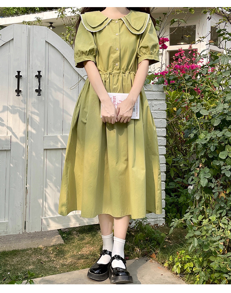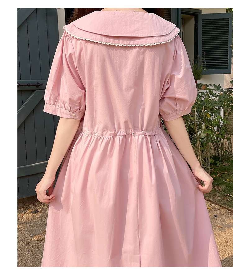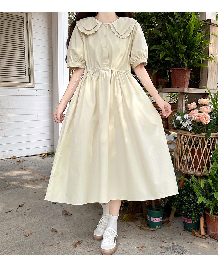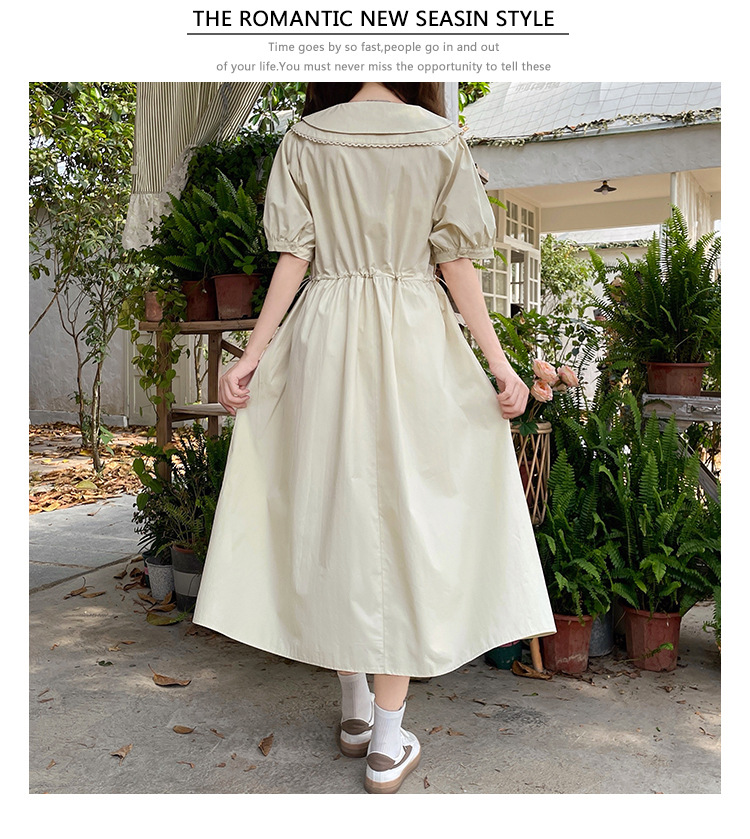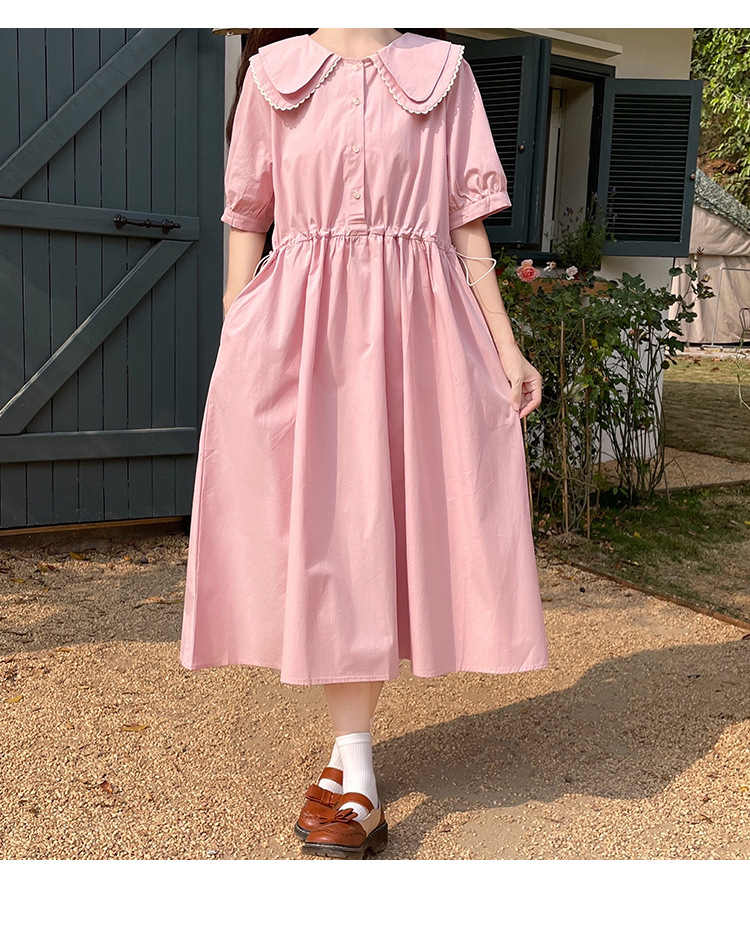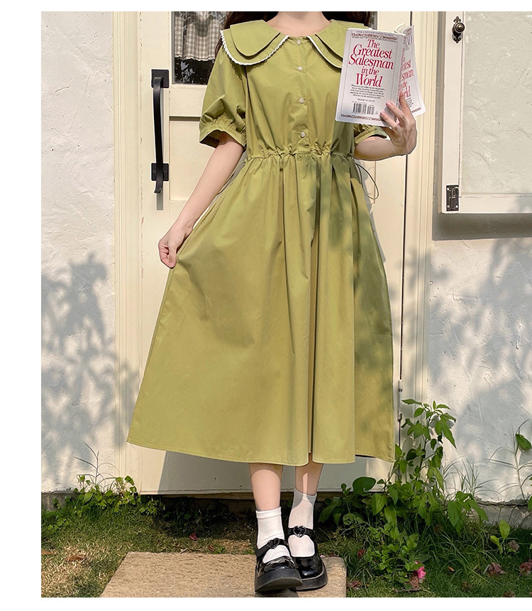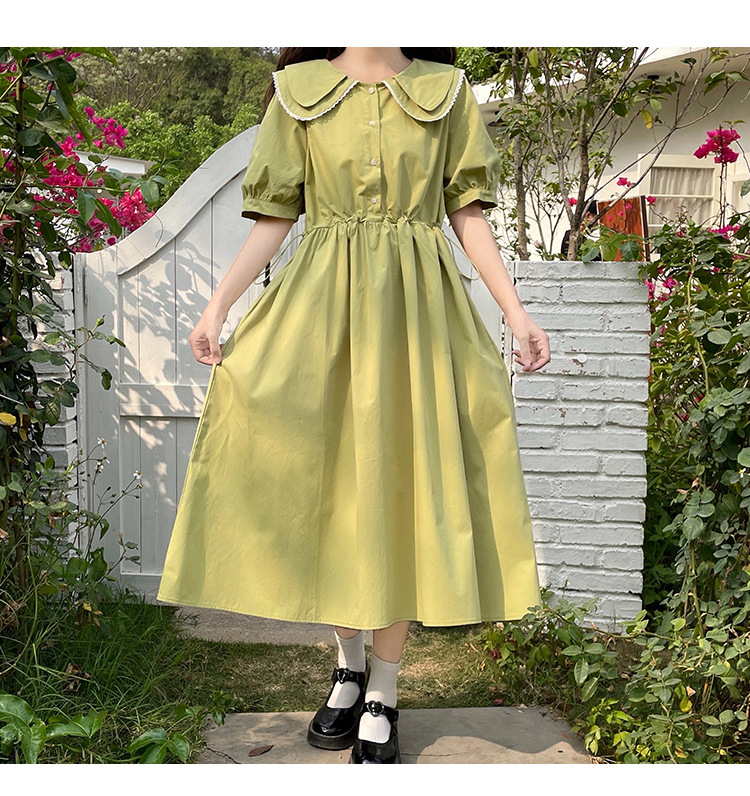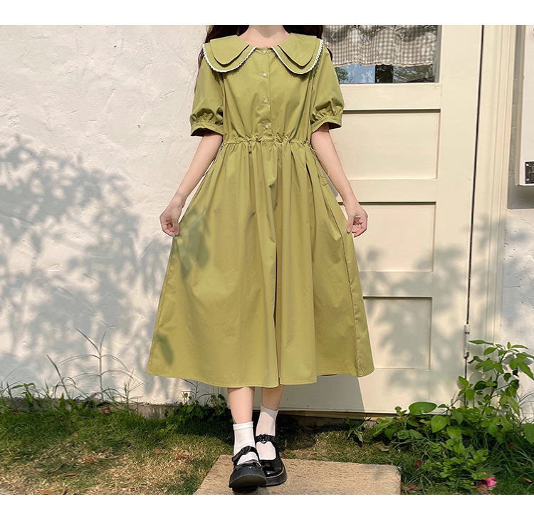 标题:ドールネック純綿半袖ワンピース女性2023夏服新型中高生ゆったり腰巻き少女スカート