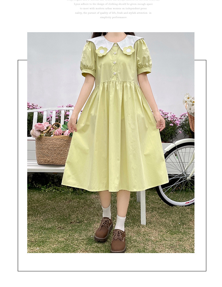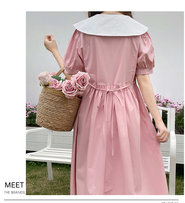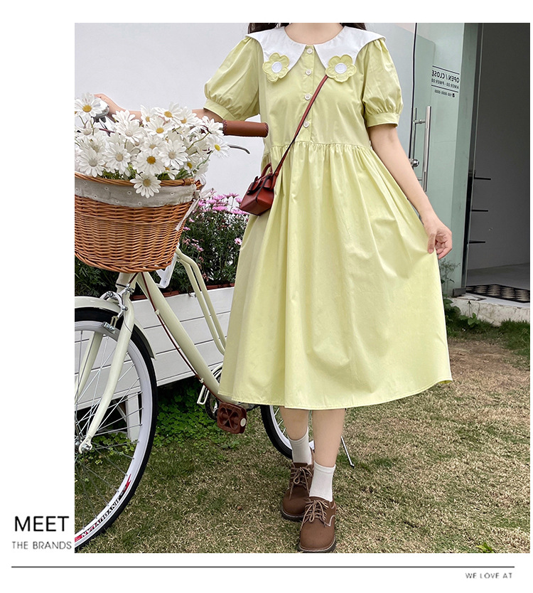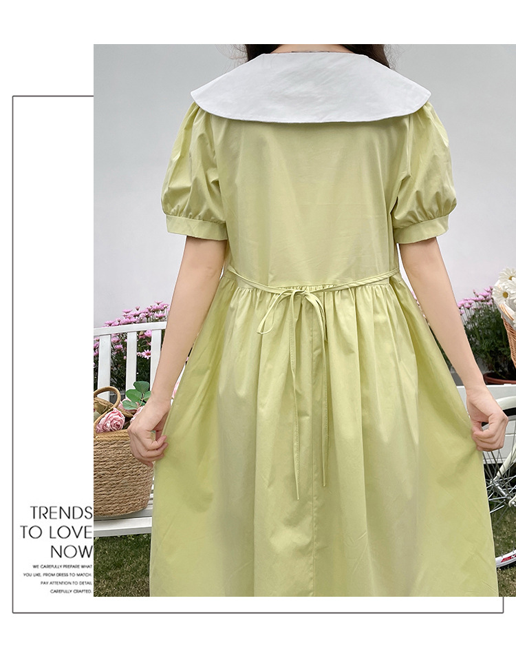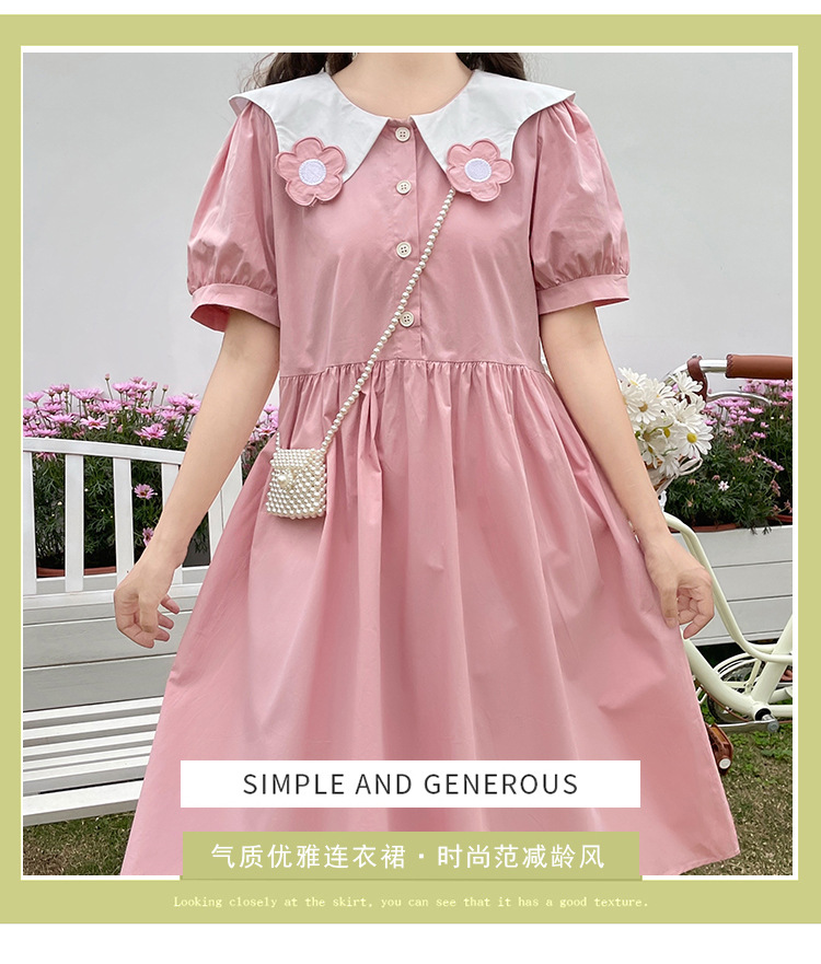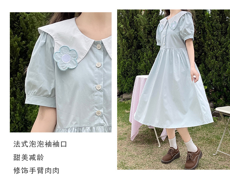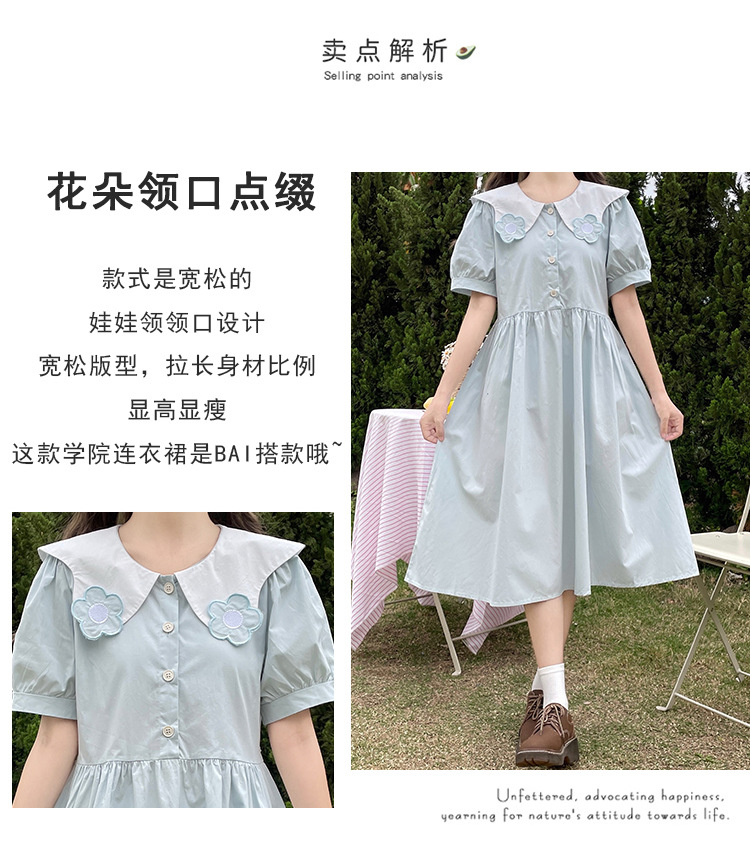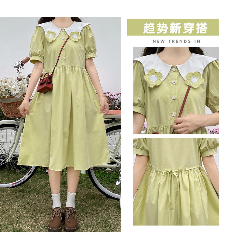 标题:ドールネックコットン半袖ワンピース2023夏森ガール系中学校ゆったりウエスト丸め可愛い少女スカート