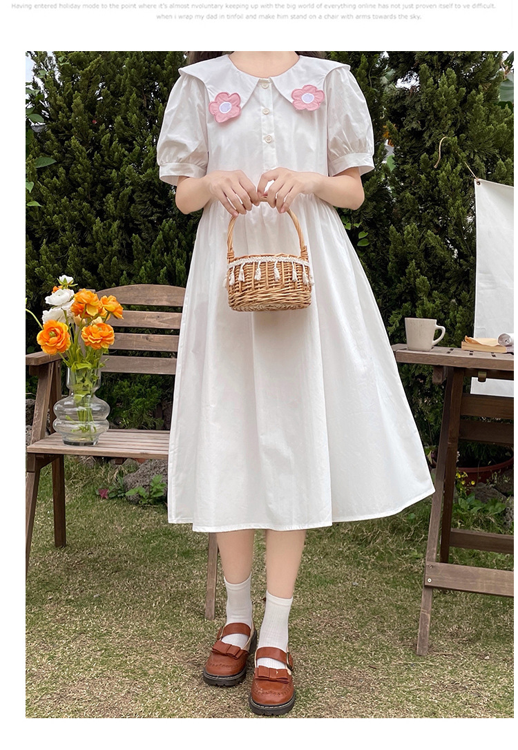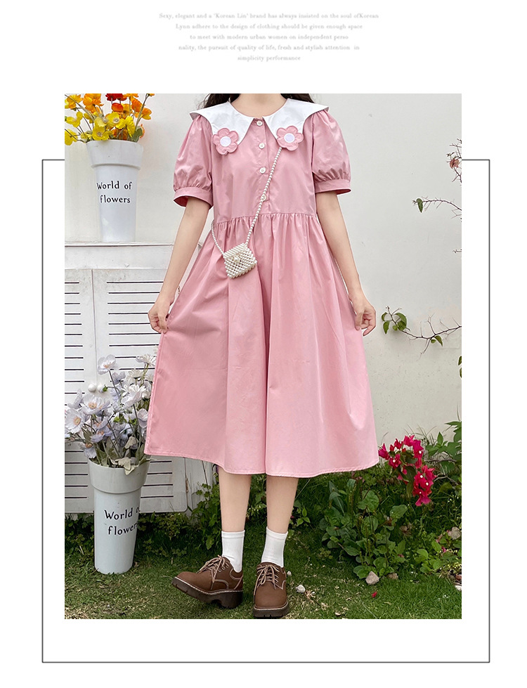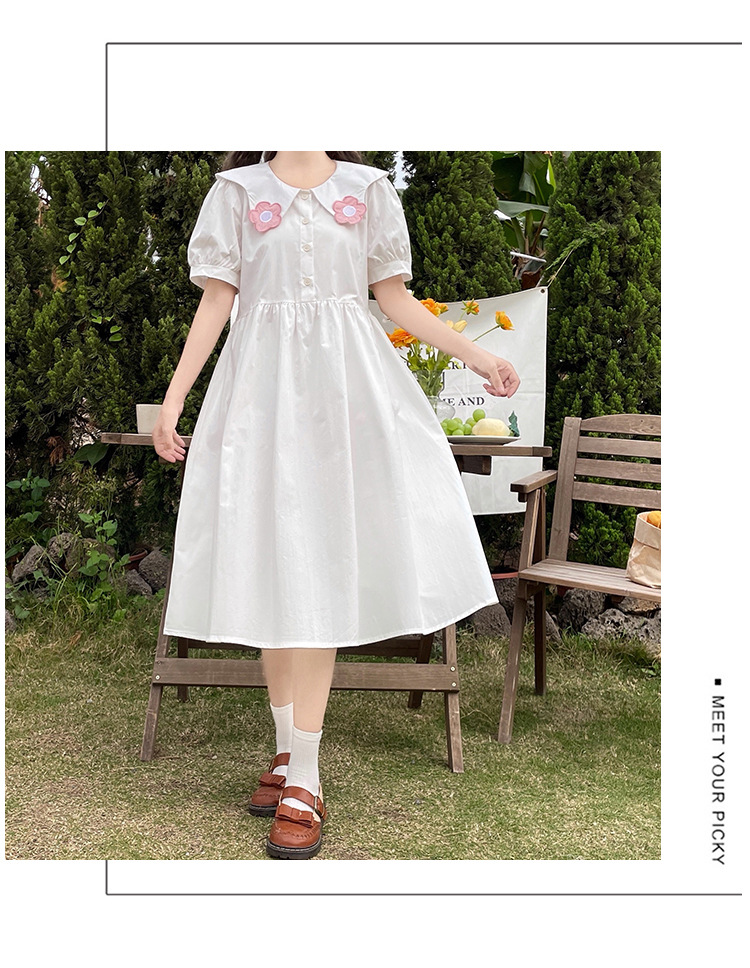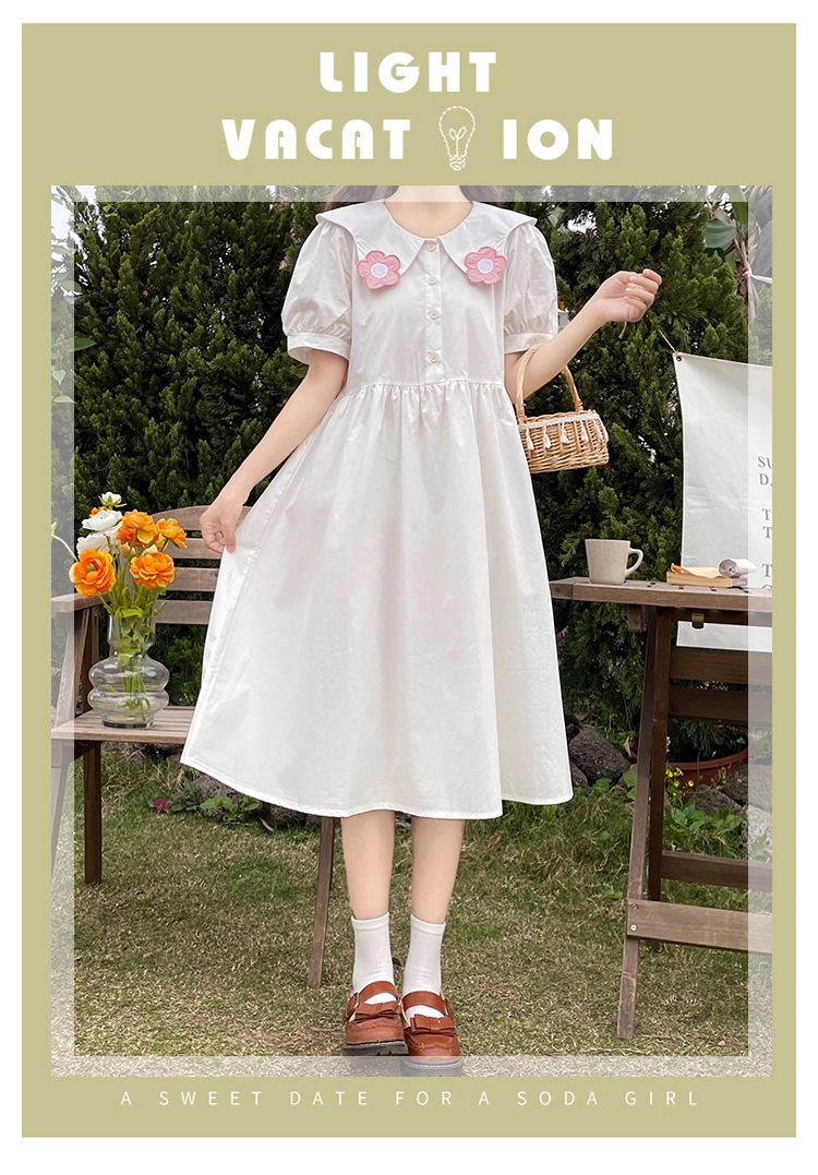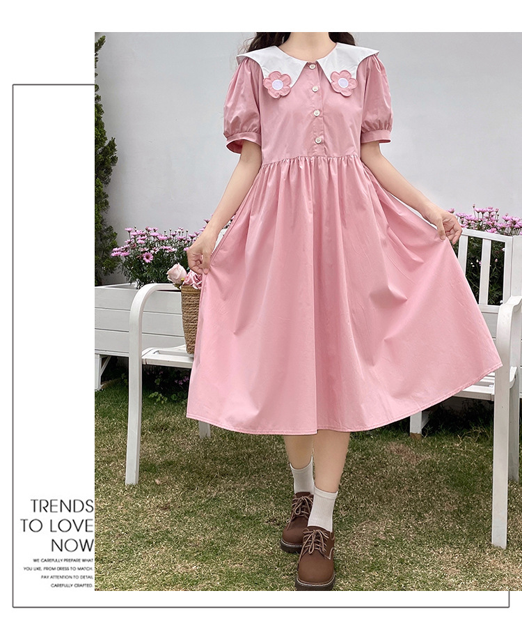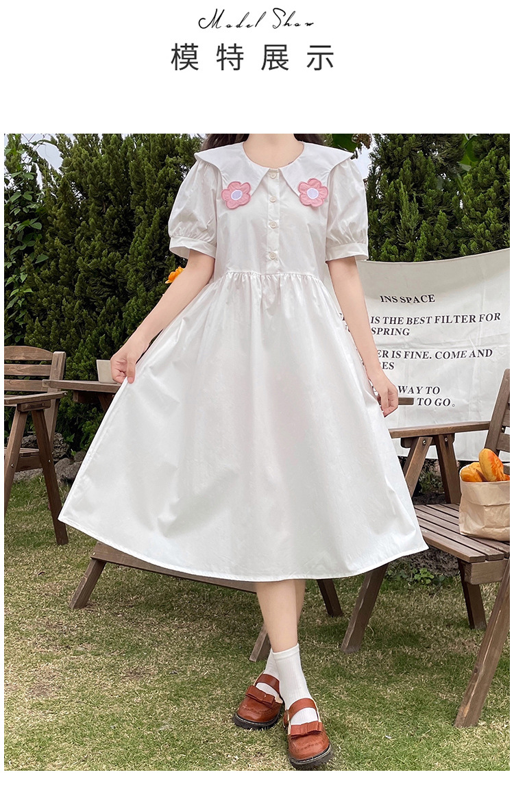 标题:ドールネックコットン半袖ワンピース2023夏森ガール系中学校ゆったりウエスト丸め可愛い少女スカート