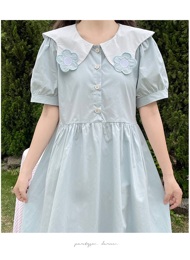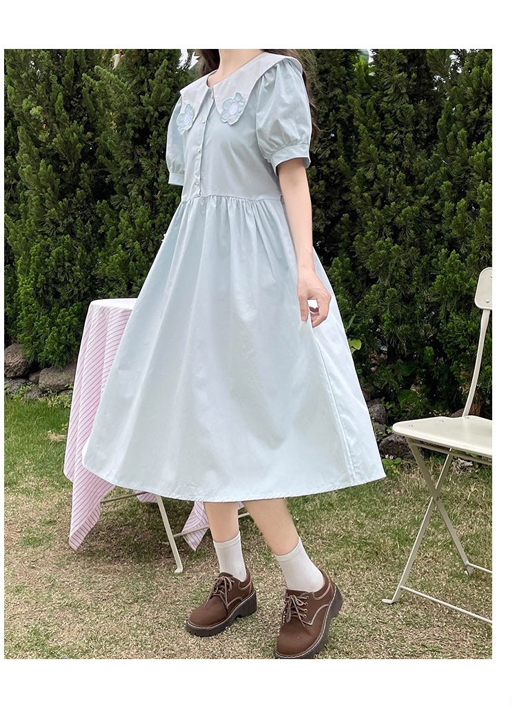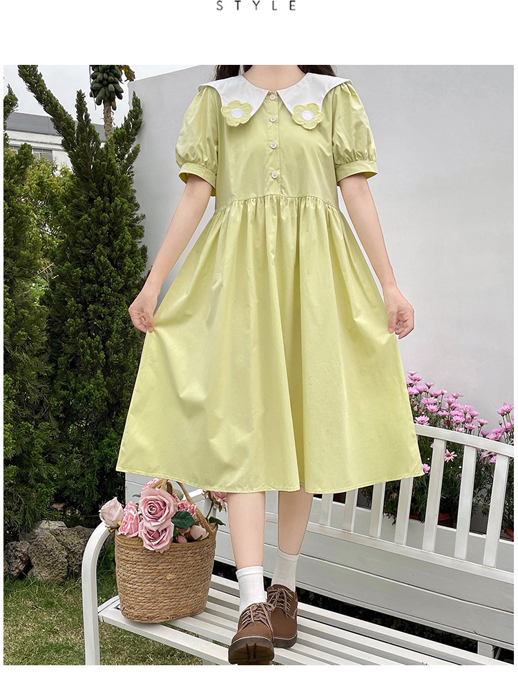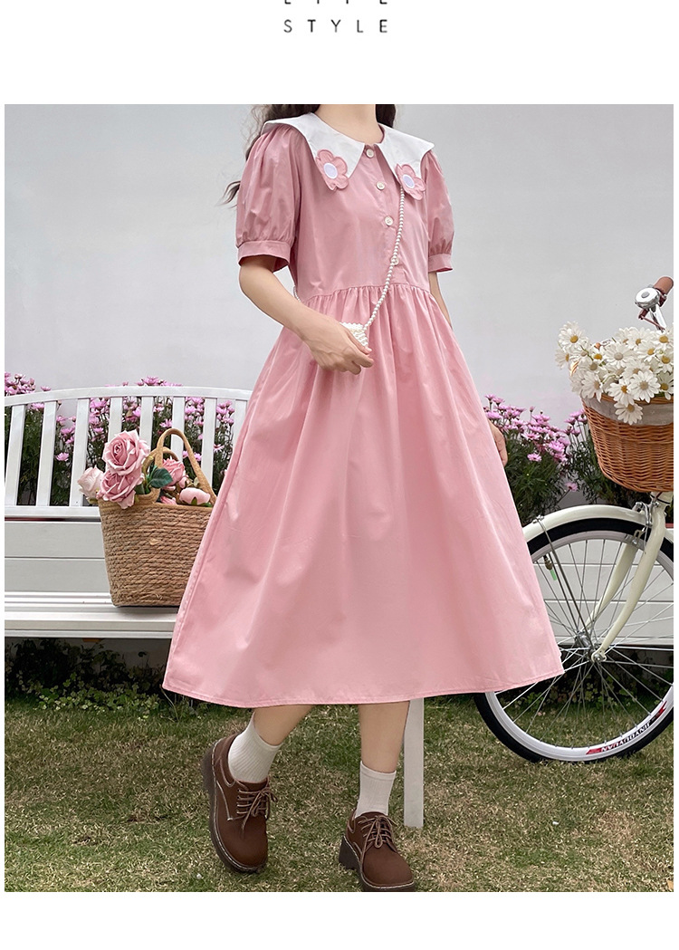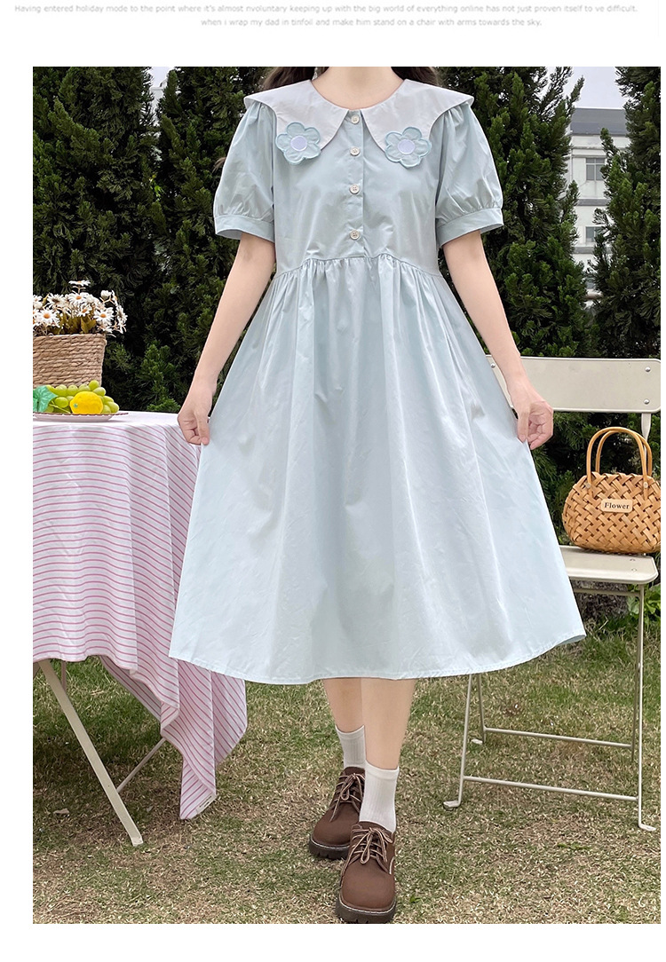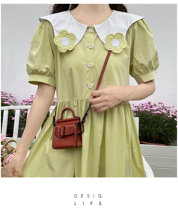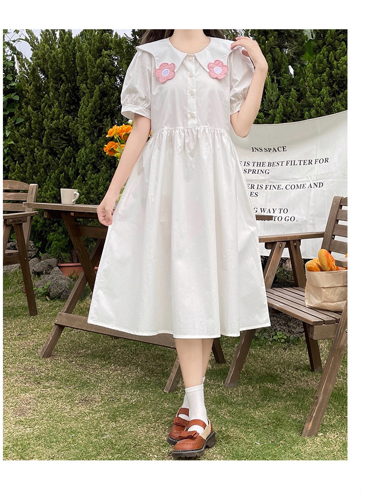 标题:ドールネックコットン半袖ワンピース2023夏森ガール系中学校ゆったりウエスト丸め可愛い少女スカート