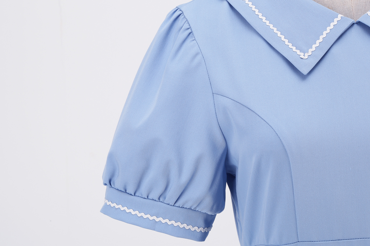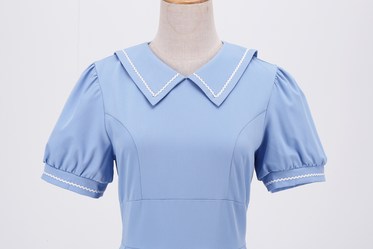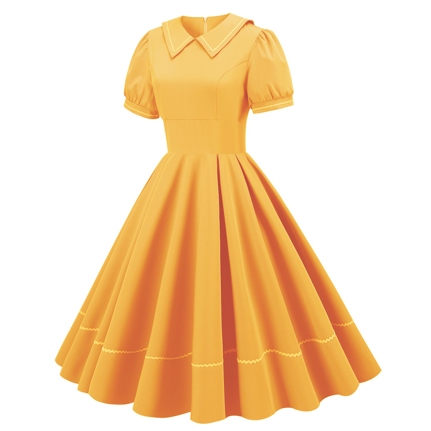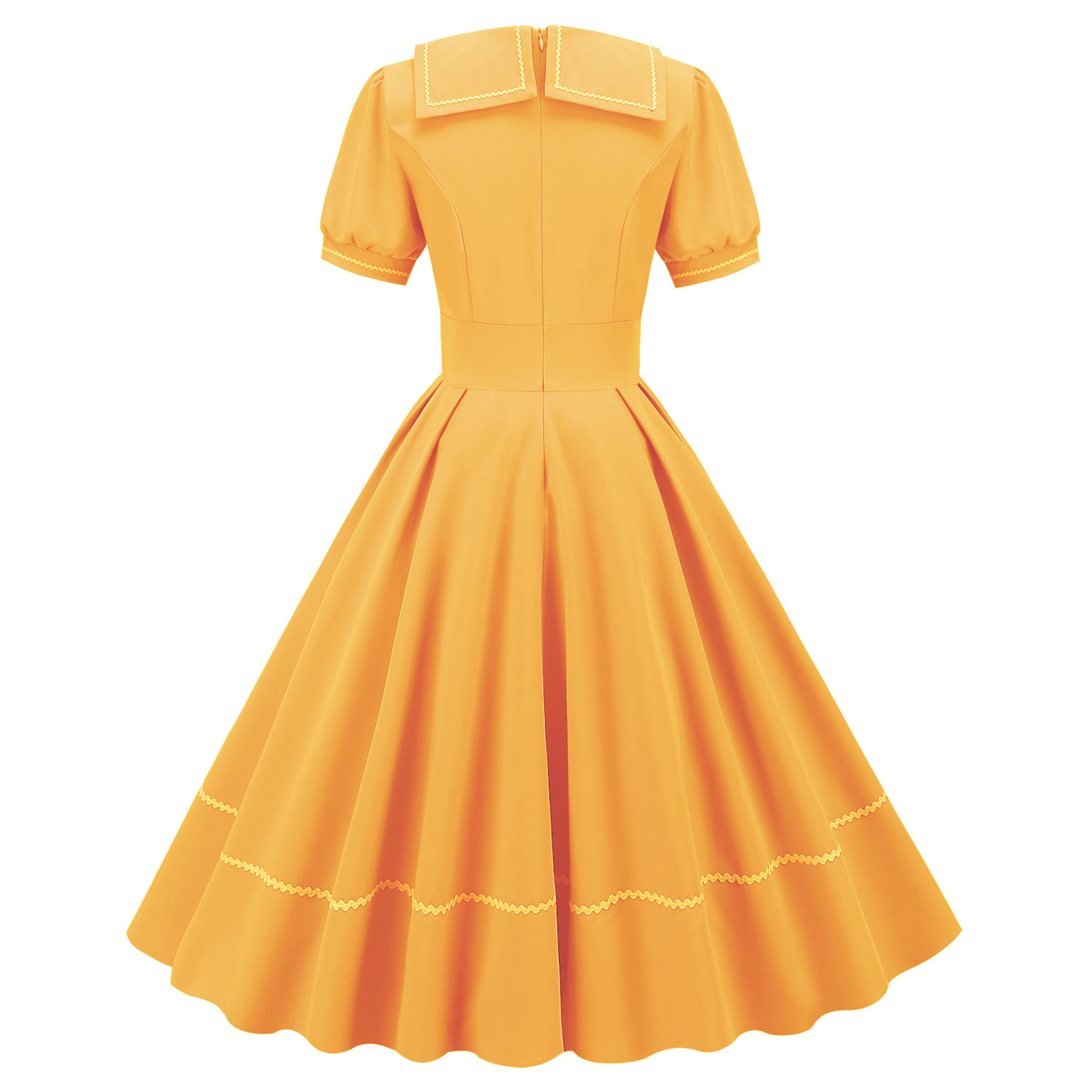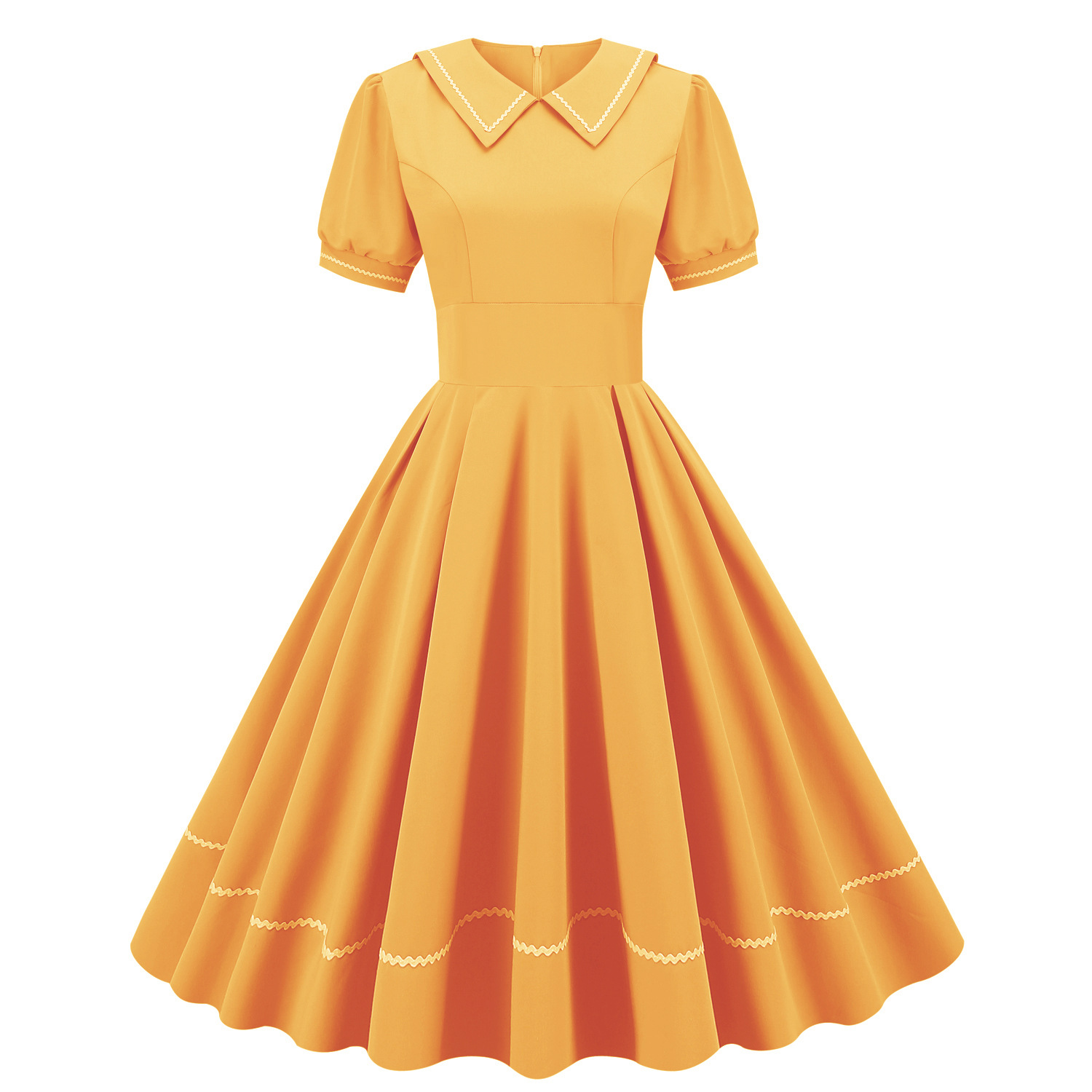 标题:マリンウェーブレース半袖スリムミディアム裾ヘボン風ポンポンスカートレトロワンピース