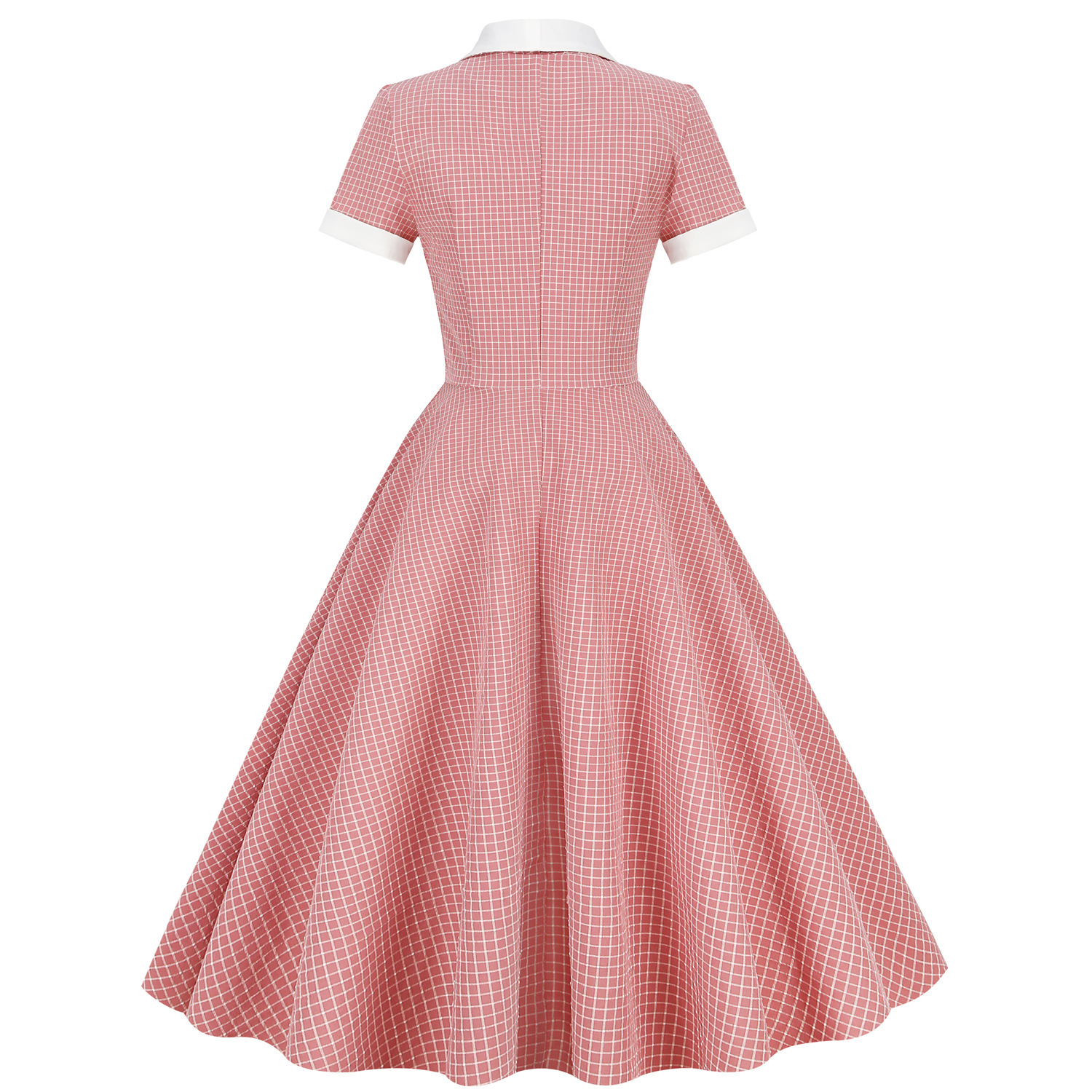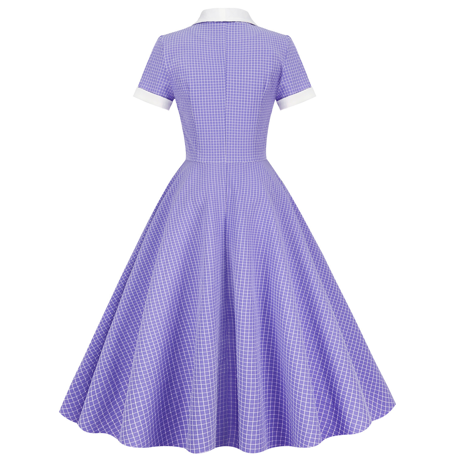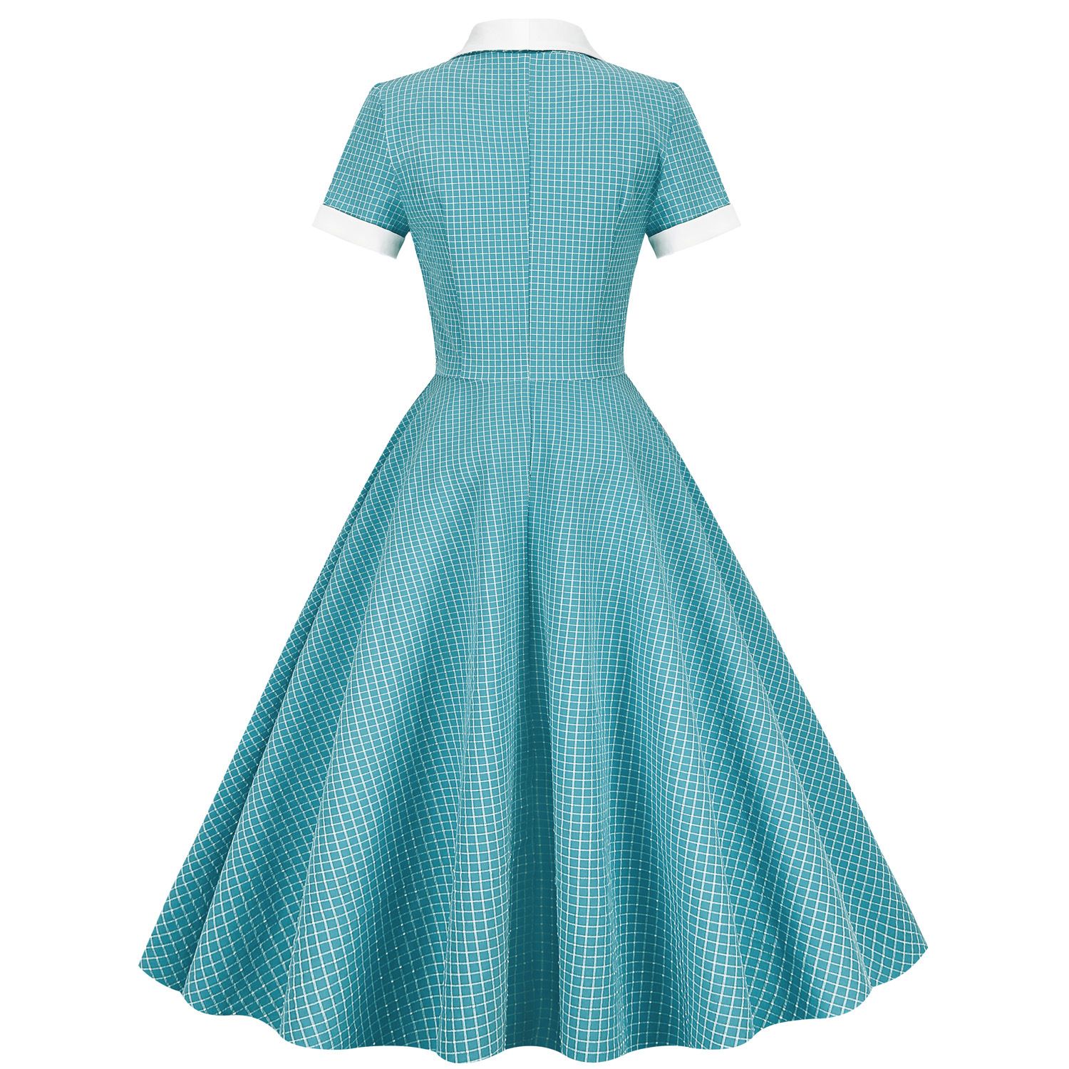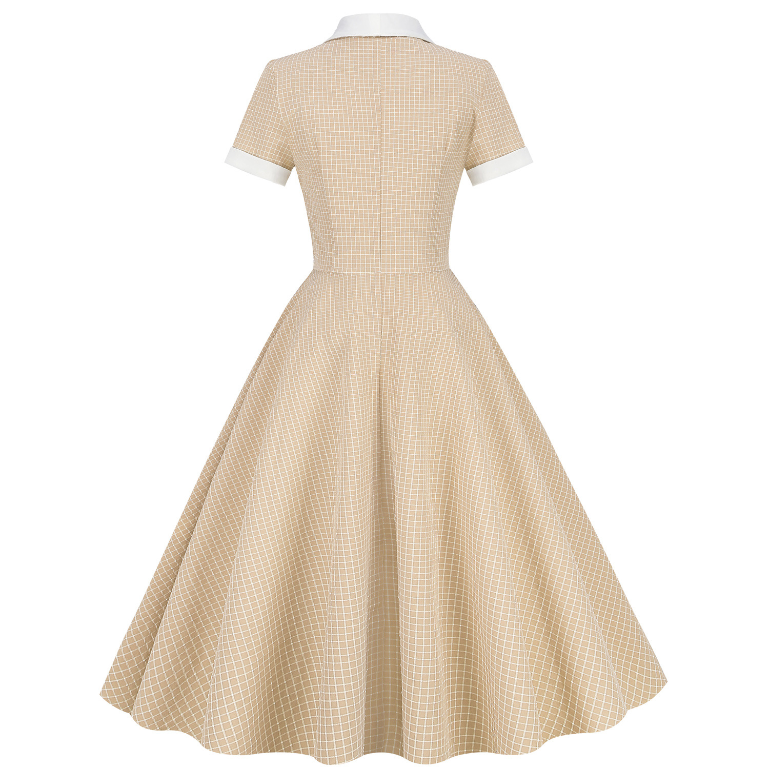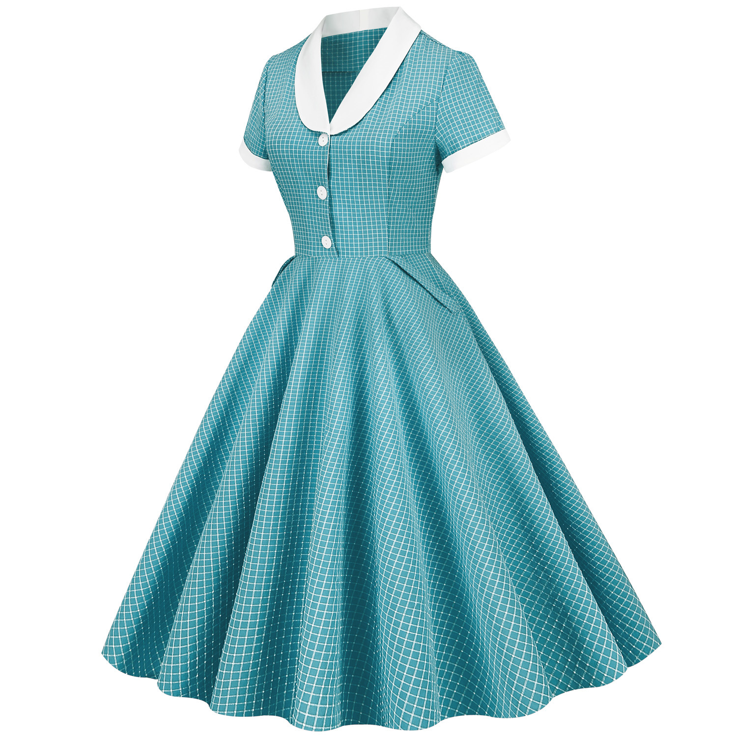 标题:レトロなチェックスカート宮廷収納ウエストライトドレスぶつかり色襟年会演出服大振りミディアムワンピース