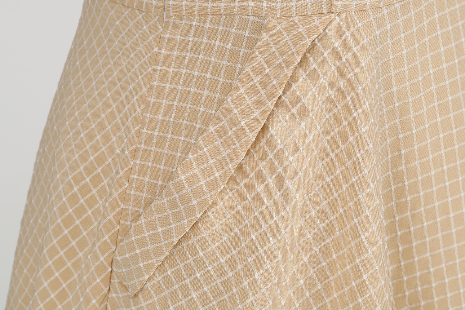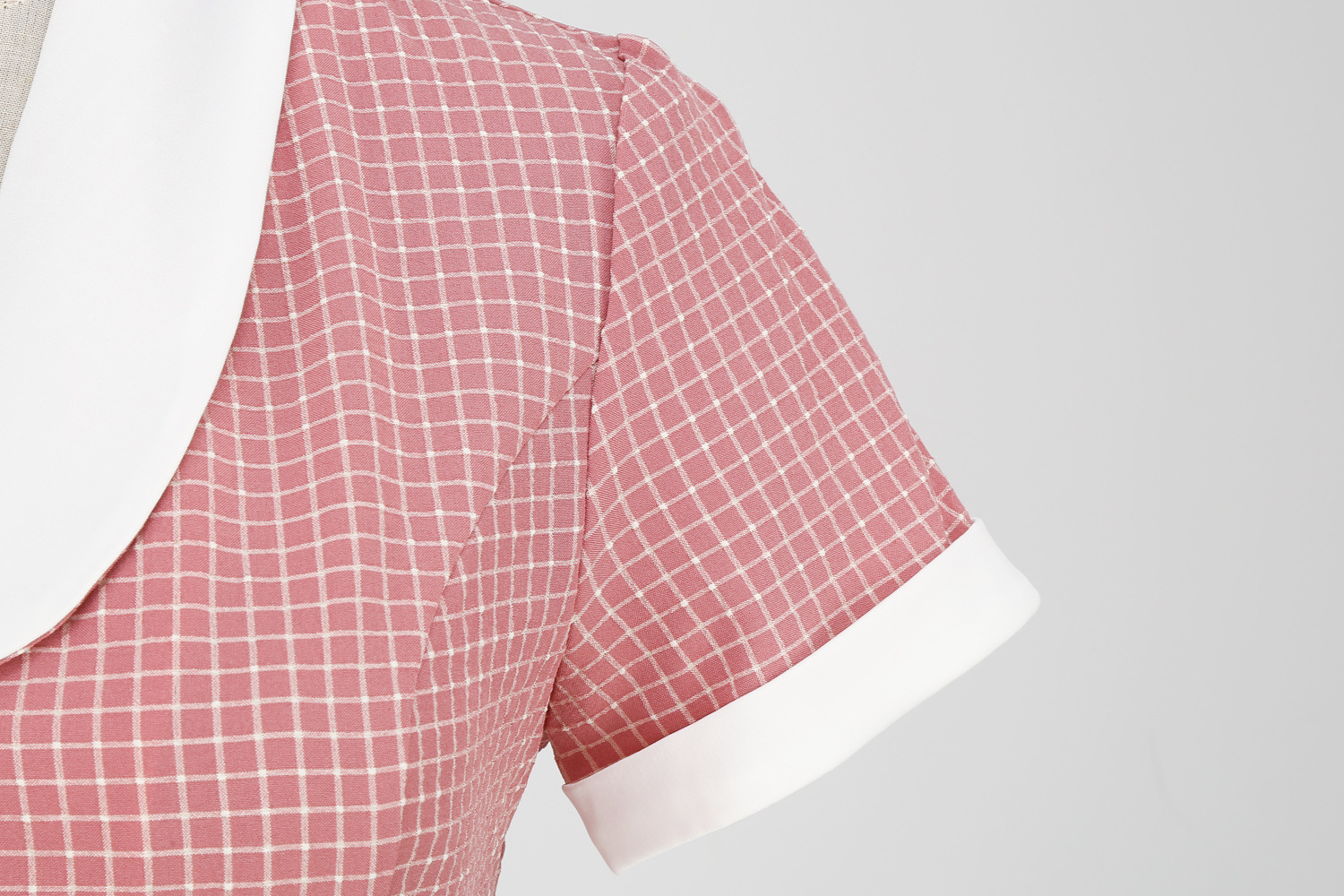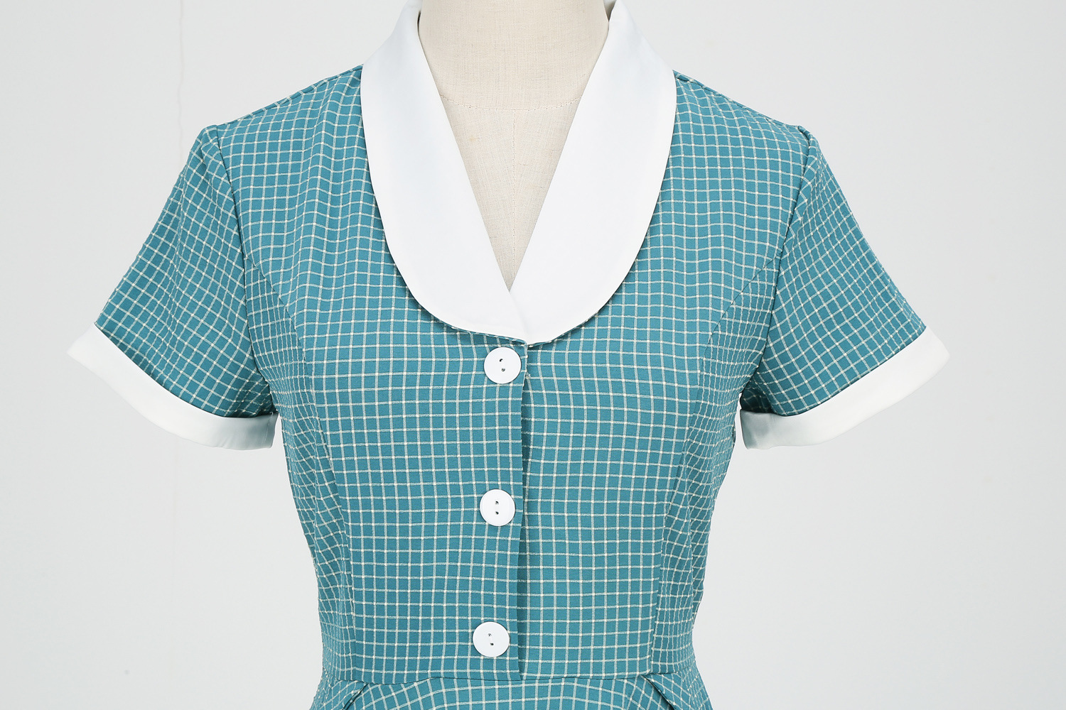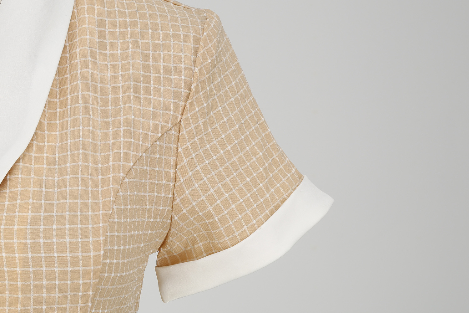 标题:レトロなチェックスカート宮廷収納ウエストライトドレスぶつかり色襟年会演出服大振りミディアムワンピース