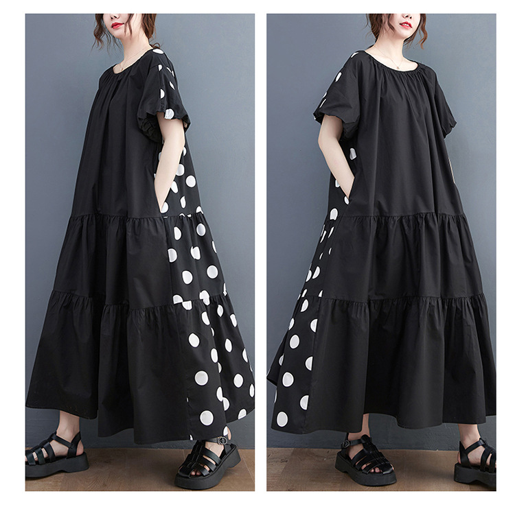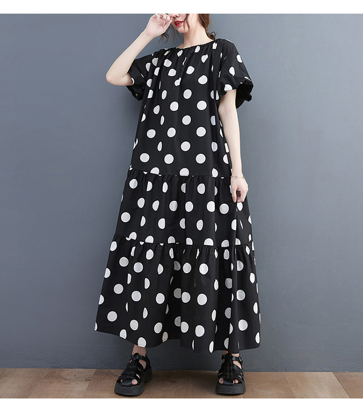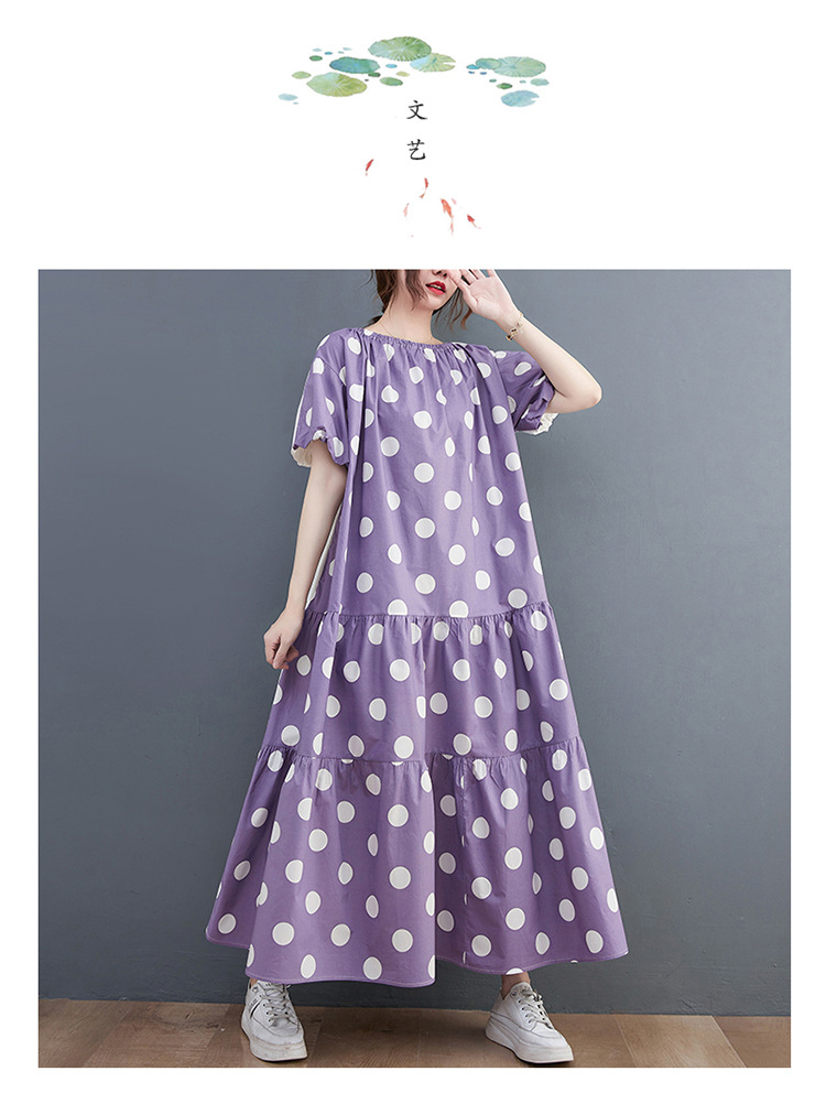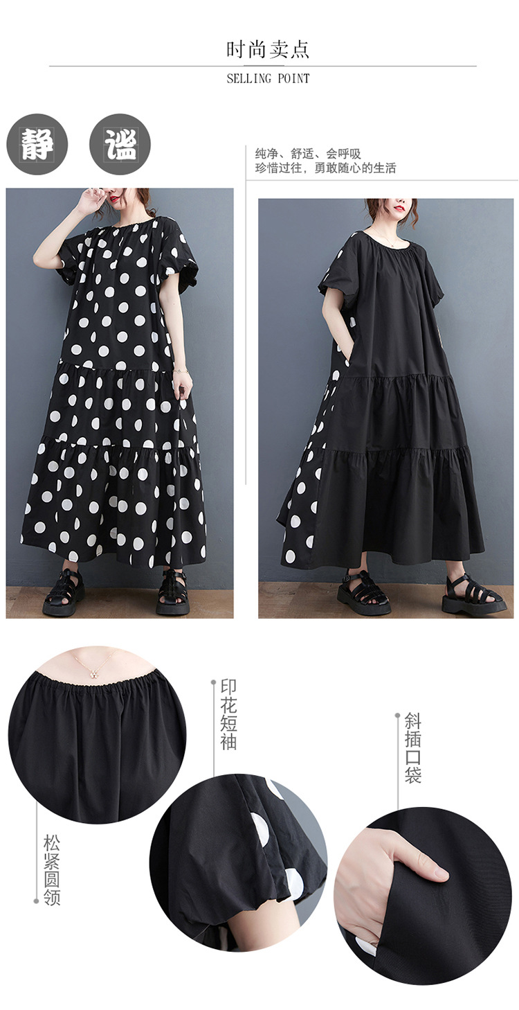 标题:夏の新型波点の二面は中ロングスカートの文芸がゆったりしていて、痩せています。