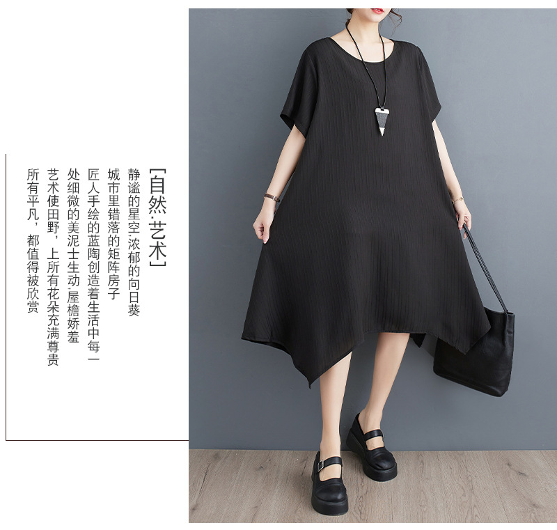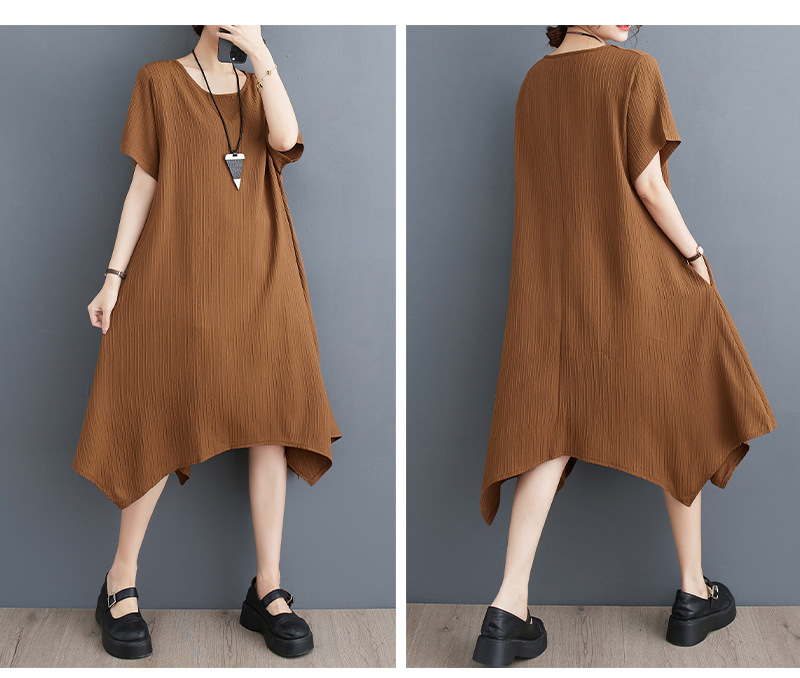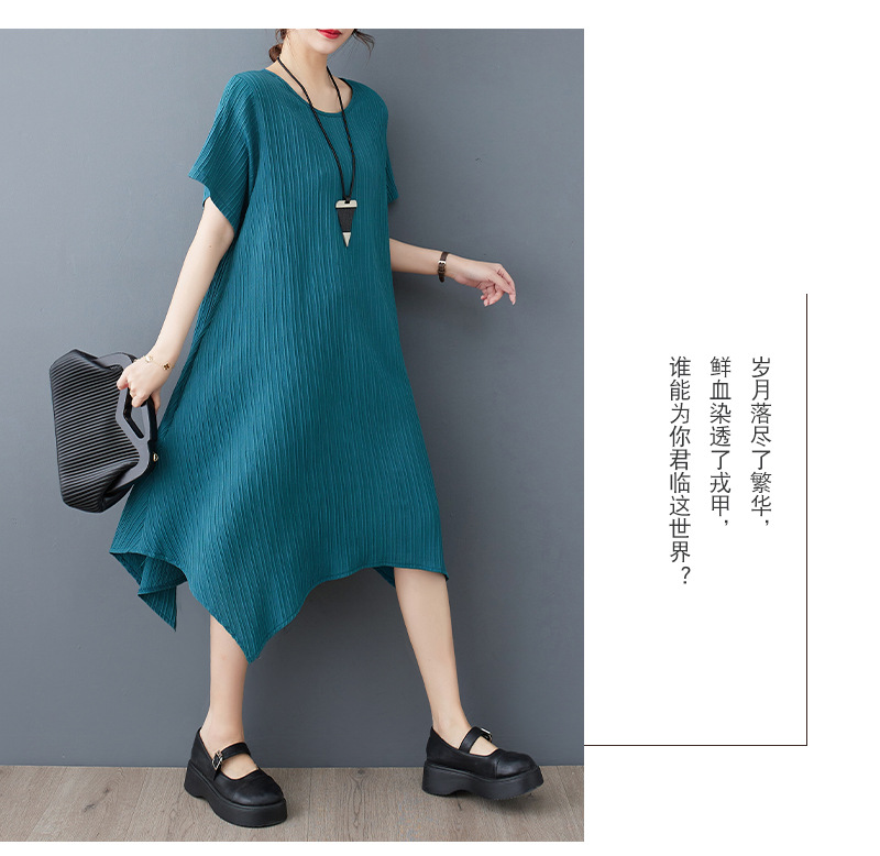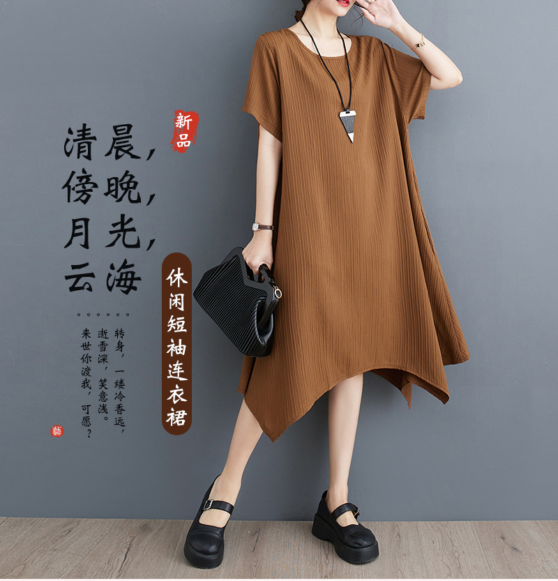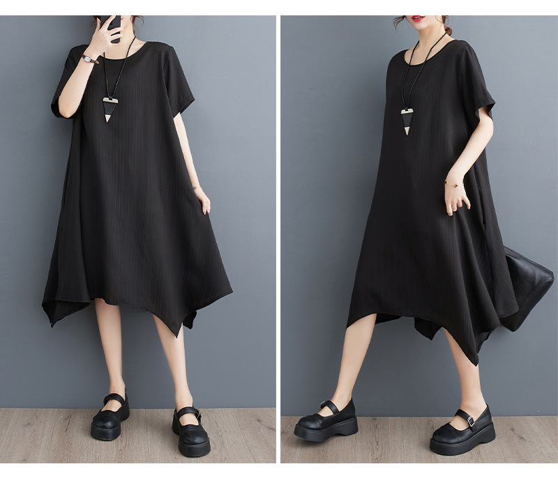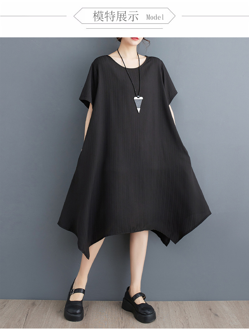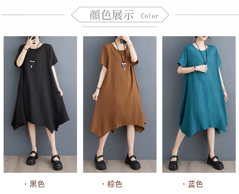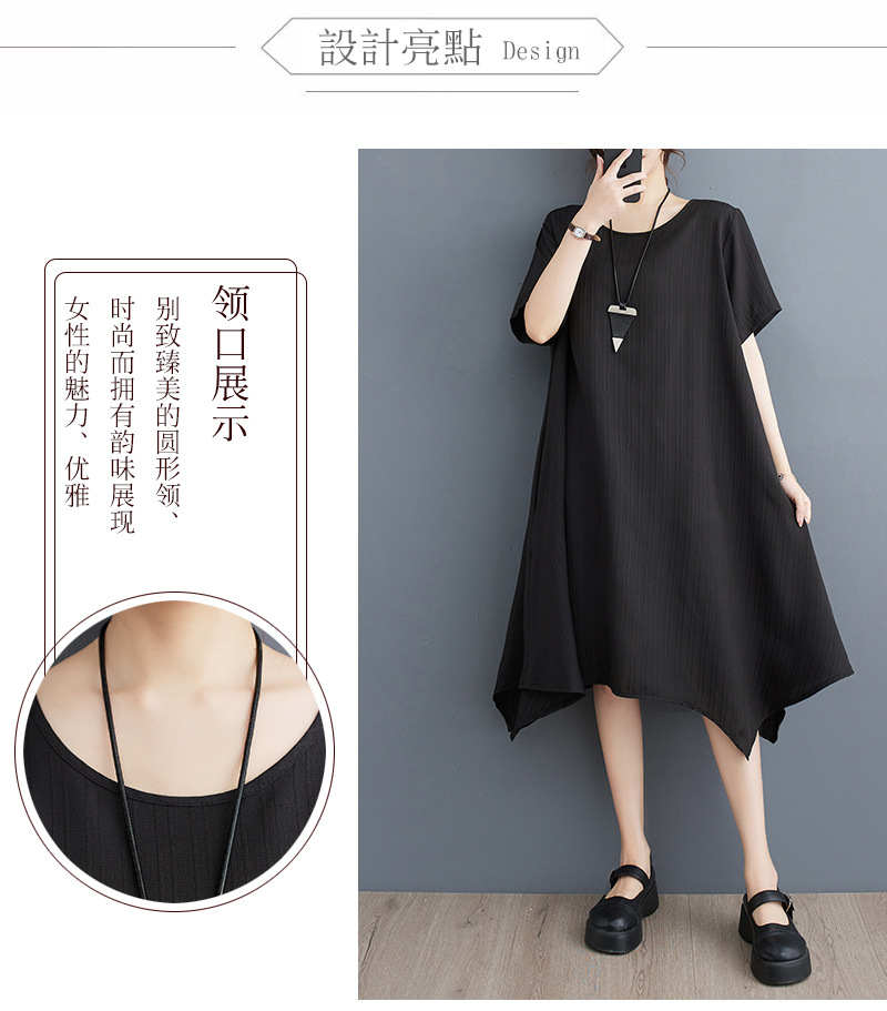 标题:夏の新型の純色の丸首は頭をかぶせて不規則です。